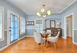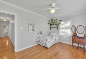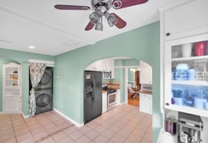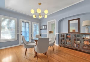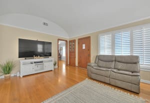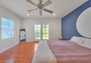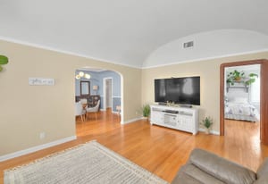 Nestled in the heart of Historic Wilshire Square, this beautifully maintained English Tudor sits on an oversized lot and offers a rare blend of classic charm and thoughtful updates. The curb appeal is immediately inviting, with a manicured front yard, welcoming entry, and a charming front porch that sets the tone for the home. Inside, hardwood floors, graceful archways, and rich vintage details highlight the spacious living room, featuring a distinctive barrel ceiling and an abundance of natural light. The adjacent formal dining room is ideal for both everyday living and entertaining, showcasing upgraded molding, a tray ceiling, generous windows, and French doors that enhance the home’s timeless character. The kitchen offers ample space for cooking and gathering, complete with granite countertops, a gas range, and plenty of storage and prep space. Just beyond, elegant double French doors open to a large covered deck overlooking the lush backyard—an ideal setting for outdoor dining, entertaining, or relaxing year-round. The home features four well-sized bedrooms and two bathrooms, including a private primary suite with a walk-in closet and an upgraded en-suite bathroom with dual sinks and an oversized shower. French doors from the suite lead directly to the expansive backyard, where mature fruit trees—Meyer lemon, navel orange, guava, and a large avocado tree—create a serene, garden-like retreat. Additional upgrades include newer roof and tankless water heater, plantation shutters, a whole-house fan, central HVAC, updated electrical and plumbing as well as fixtures, a newer electrical panel, and a Nest thermostat. Conveniently located near Downtown Santa Ana, the Artist Village, and South Coast Plaza, this home offers both character and comfort in one of the area’s most desirable neighborhoods.