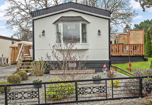 Meticulously maintained 55+ manufactured home located in the month to month since 1978 Twin Oaks Park. Cozy up at your kitchen bar for a morning coffee, or entertain guests on your large patio complete with one of the largest yards in the park. Multiple upgrades throughout the unit include, new windows, new light fixtures and receptacles, nicely remodeled bathroom, new appliances, new laminate floors, redone kitchen and regularly maintained furnace. Boasting a bonus workshop at the end of your long driveway and cute little home for your lawnmower. Find yourself falling in love close to all amenities, bike trails, regional parks and only an 11 minute drive into downtown Victoria.