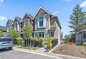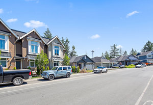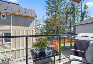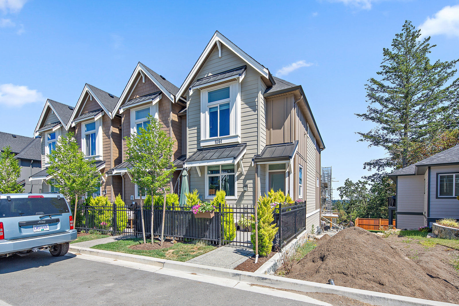 Welcome home to Southpoint Ridge, Bear Mountain's growing neighbourhood on the slopes of South Skirt Mountain. This 2019-built 3 bed 2.5 bath end unit townhome features a gourmet kitchen with quartz counters, soft close drawers, tile backsplash, under cabinet lighting, convenient USB outlet charger and premium stainless steel appliances with gas range for your own in-home gourmet cooking experience. Bonus features are your own double tandem garage, high efficiency heatpump in living room & master bedroom for heating and cooling, custom mantle & natural marble surround for the gas fireplace. This mountain-top home offers sunny outlooks over Southern Vancouver Island, the Juan de Fuca Strait, and towards the snow-capped Olympic Mountains and is conveniently located with easy access up and down the Island. This is a wonderful starter home for families looking to enter the market. Low monthly strata fees and pets and rentals allowed. Don't miss the neighbourhood video and virtual tour!