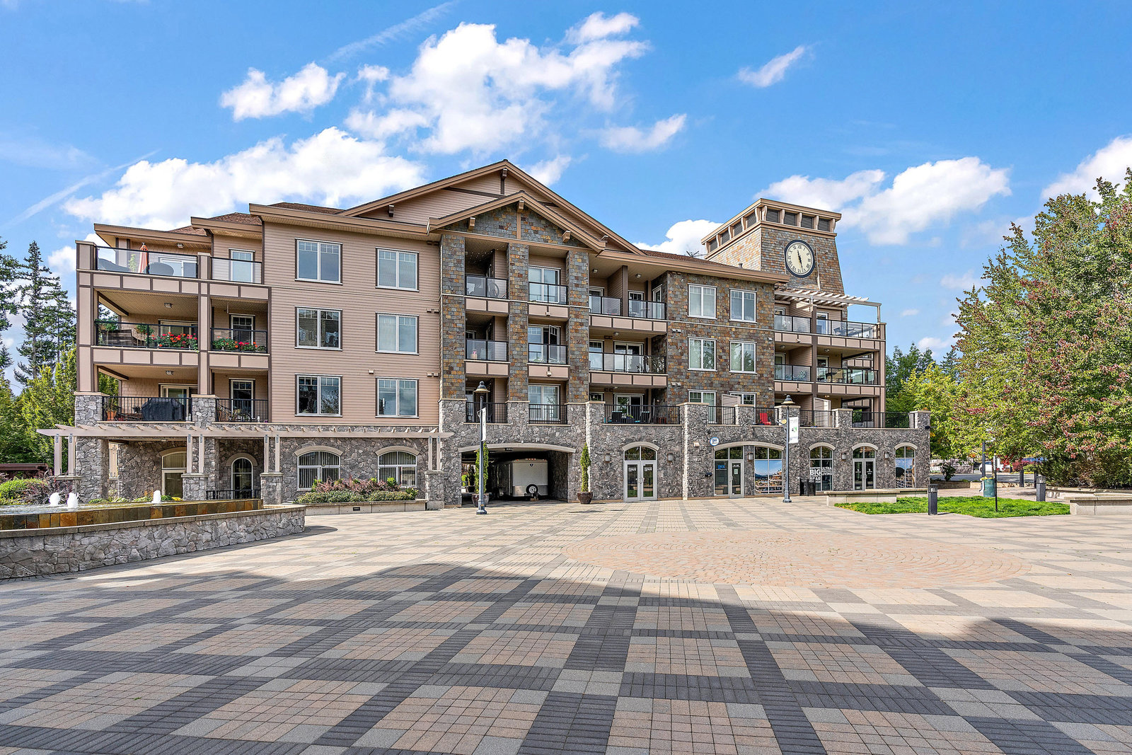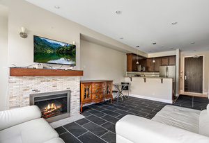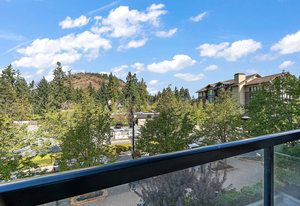 Ponds Landing Exclusive Third-floor open concept condo! This spacious home provides luxurious resort living with all of the resort amenities at your doorstep. Enjoy spectacular views of Mt. Finlayson, and world class hiking trails at your doorstep! Bring your golf clubs, Bear Mountain has 2 Jack Nicklaus designed courses! Features include an electric fireplace and your own private balcony for entertaining. Steps from the Westin Golf Resort and Spa, you have various dining experiences, Jacks Place, spa, coffee shop, clay court tennis facility, gym, Mt. Finlayson hiking, biking trails and all year outdoor pool and hot-tub! Underground secure parking and storage. Rentable, no age restrictions and barbecues welcome. Bring Fido because this building is dog friendly! Recent updates include: non-slip tile flooring, black/grey stainless appliance package and stacking washer/dryer. Quick Possession Possible!