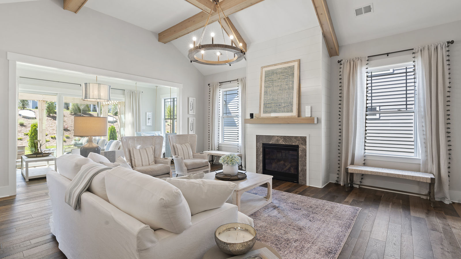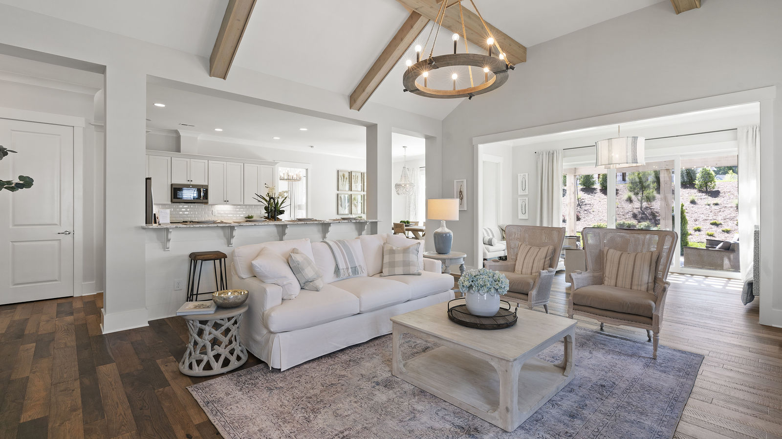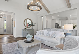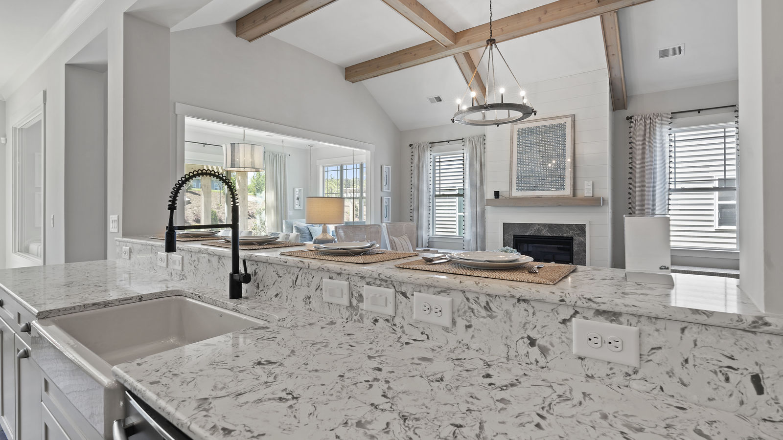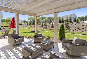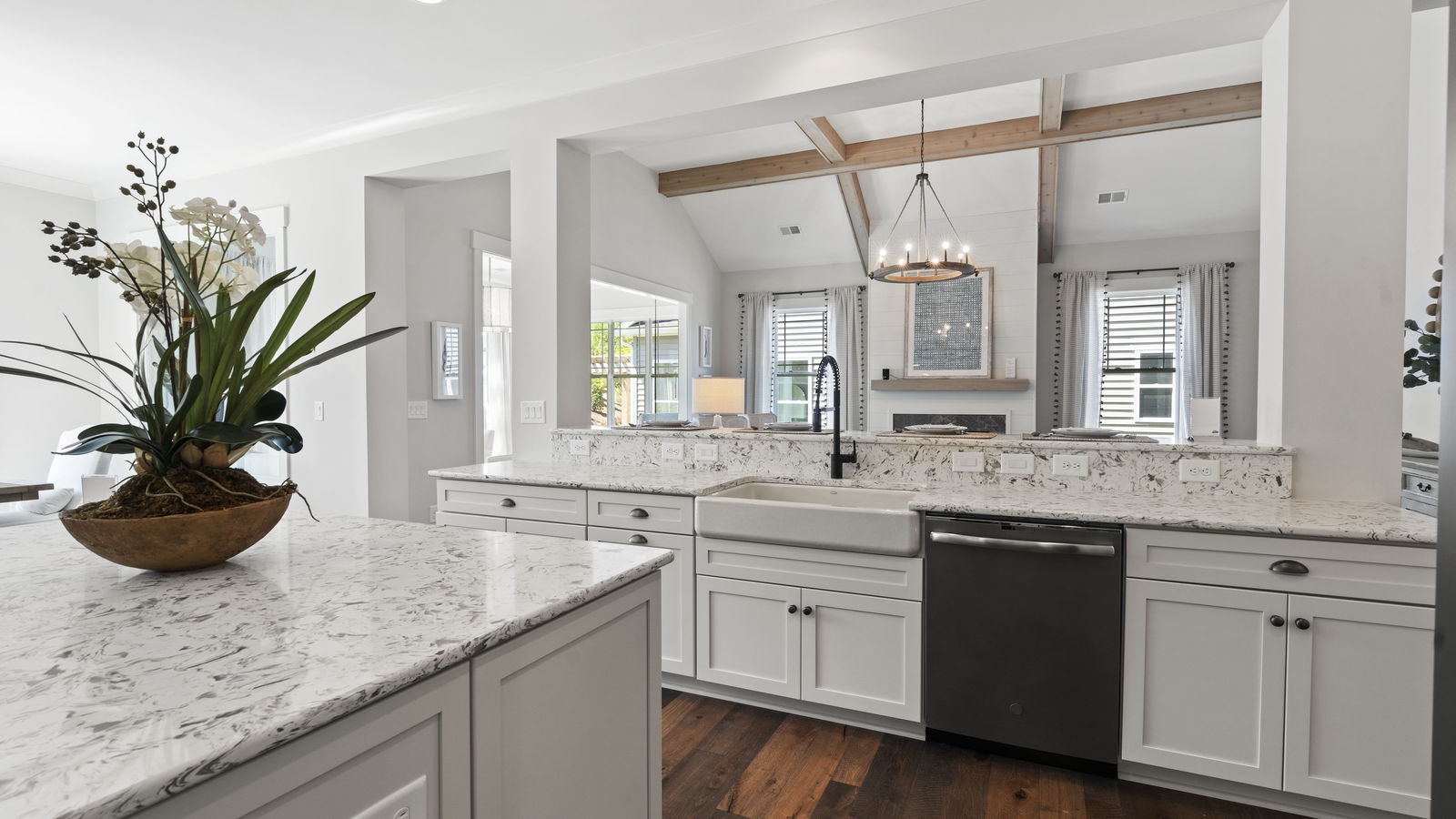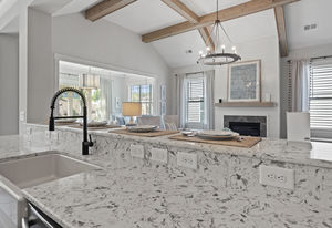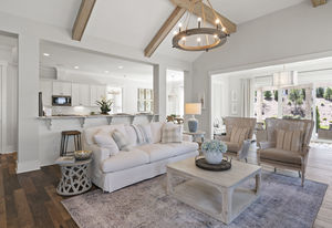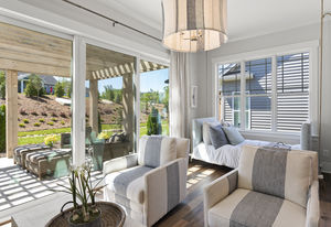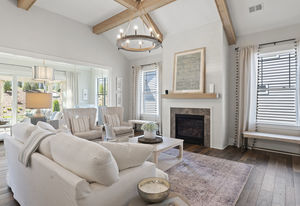Wonderful opportunity to purchase this absolutely stunning model home in Lake Norman's premier active adult community! Beautifully decorated coastal farmhouse design with open floor plan. Charming and spacious covered front porch, vaulted ceilings with wood beams in Great Room, quartz counters in kitchen and baths, huge working island, breakfast bar, farmstyle sink, soft close cabinets/drawers, and slate appliances. Gorgeous wood flooring throughout! Unique deco tile in master bath with full tiled shower, frameless door and storage galore. Hall bath with tiled tub walls and farm style free-standing vanity. Direct access from master bath to large laundry room. 3rd bedroom is set up as study. Gorgeous sun room leads to huge travertine patio and cedar pergola! Stylish ship lap accents, craftsman molding package, beautiful lighting, and wonderful open floor plan! Home is subject to 2 to 3 year builder lease back.