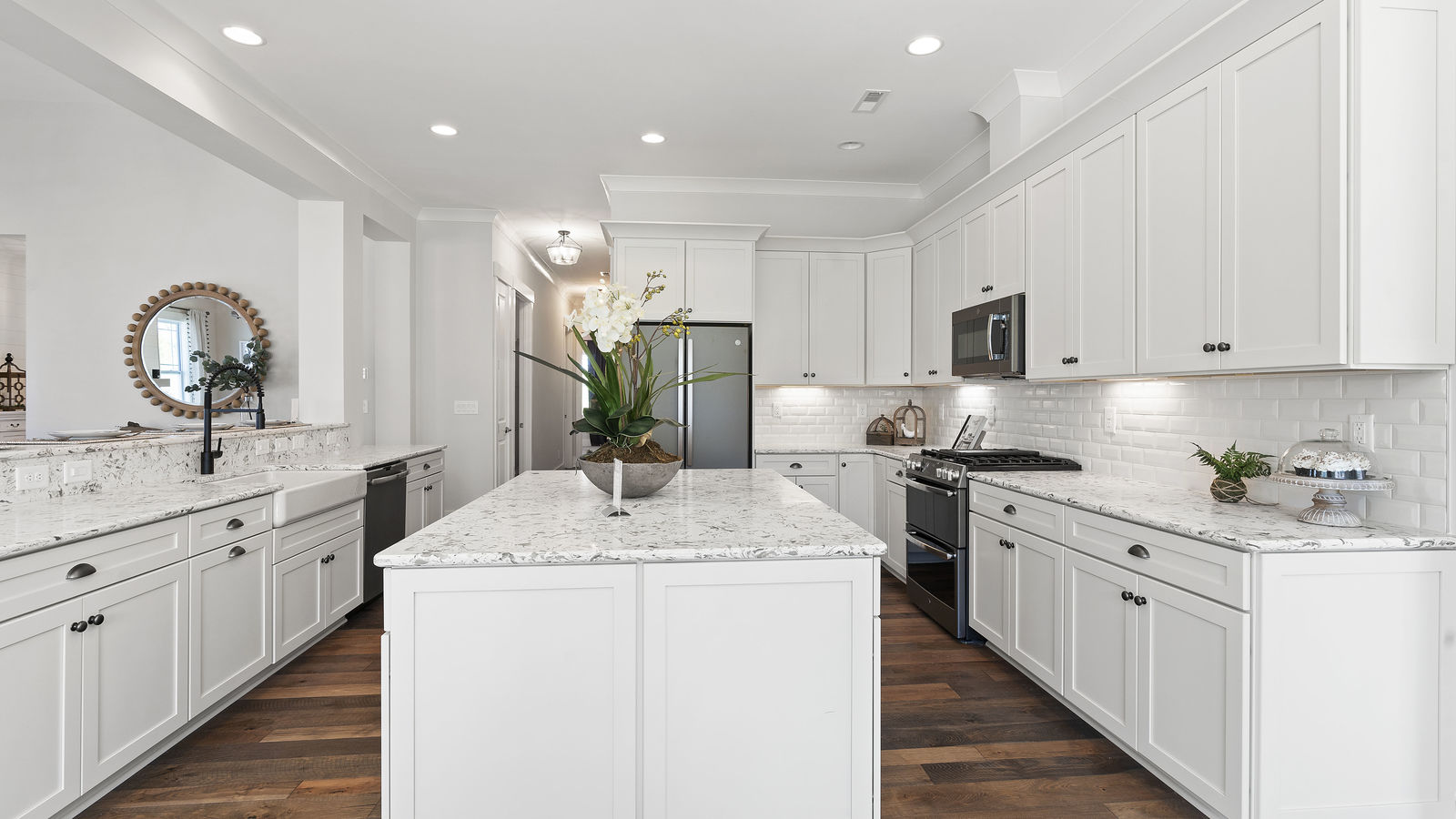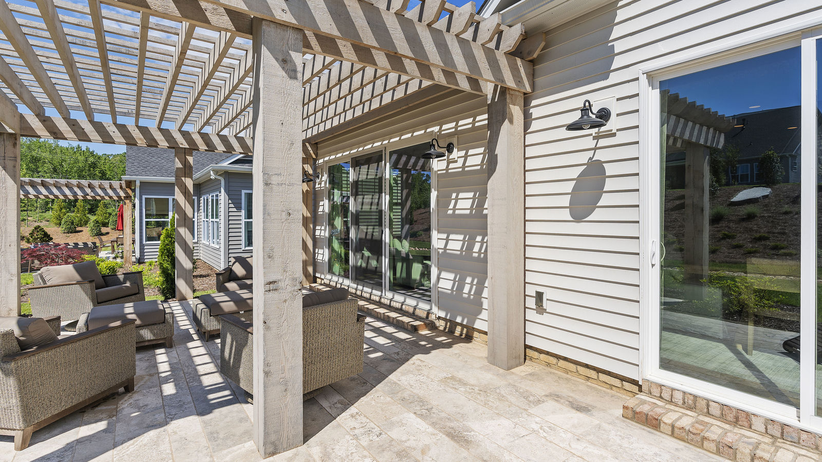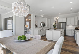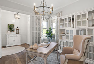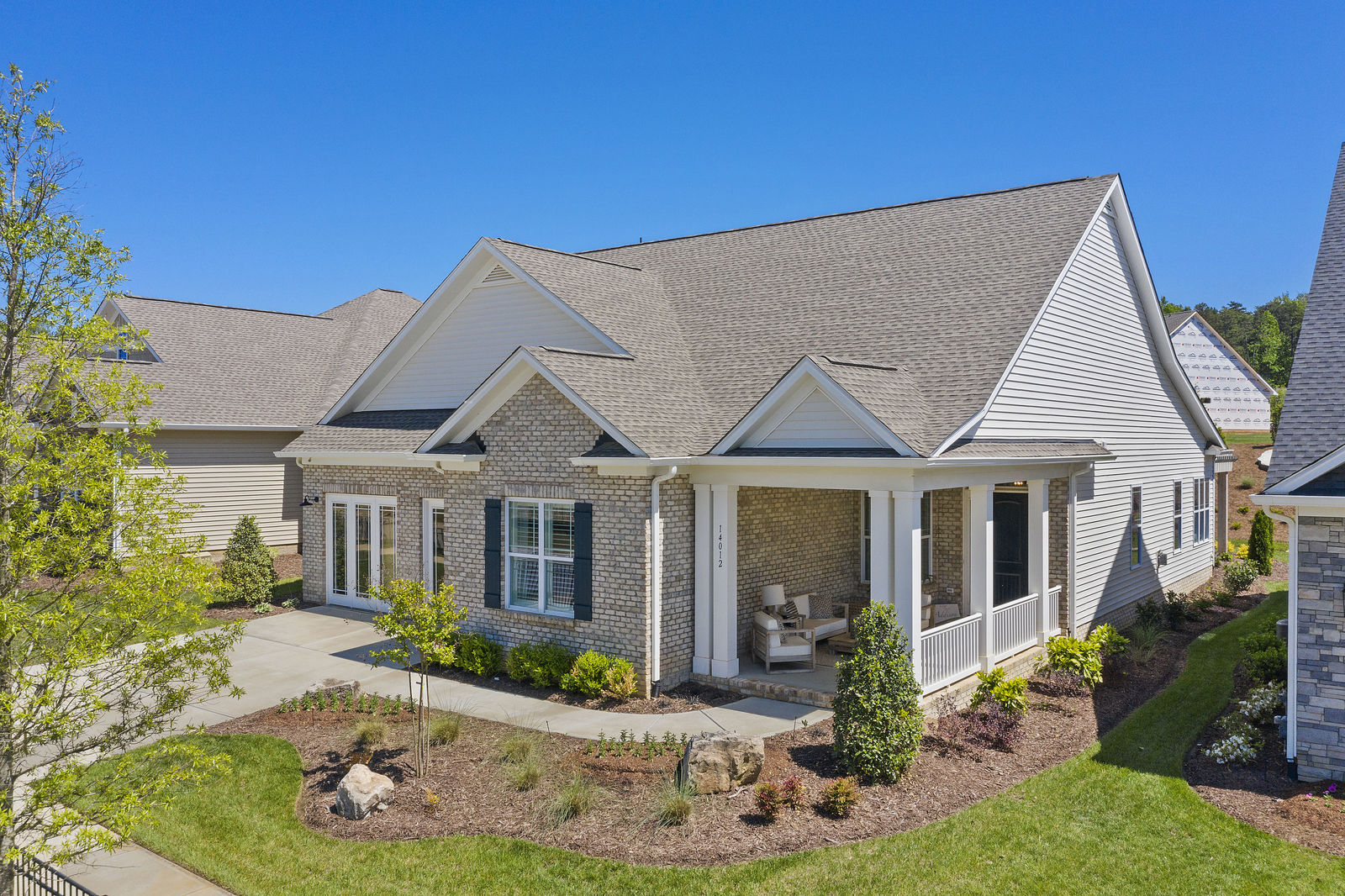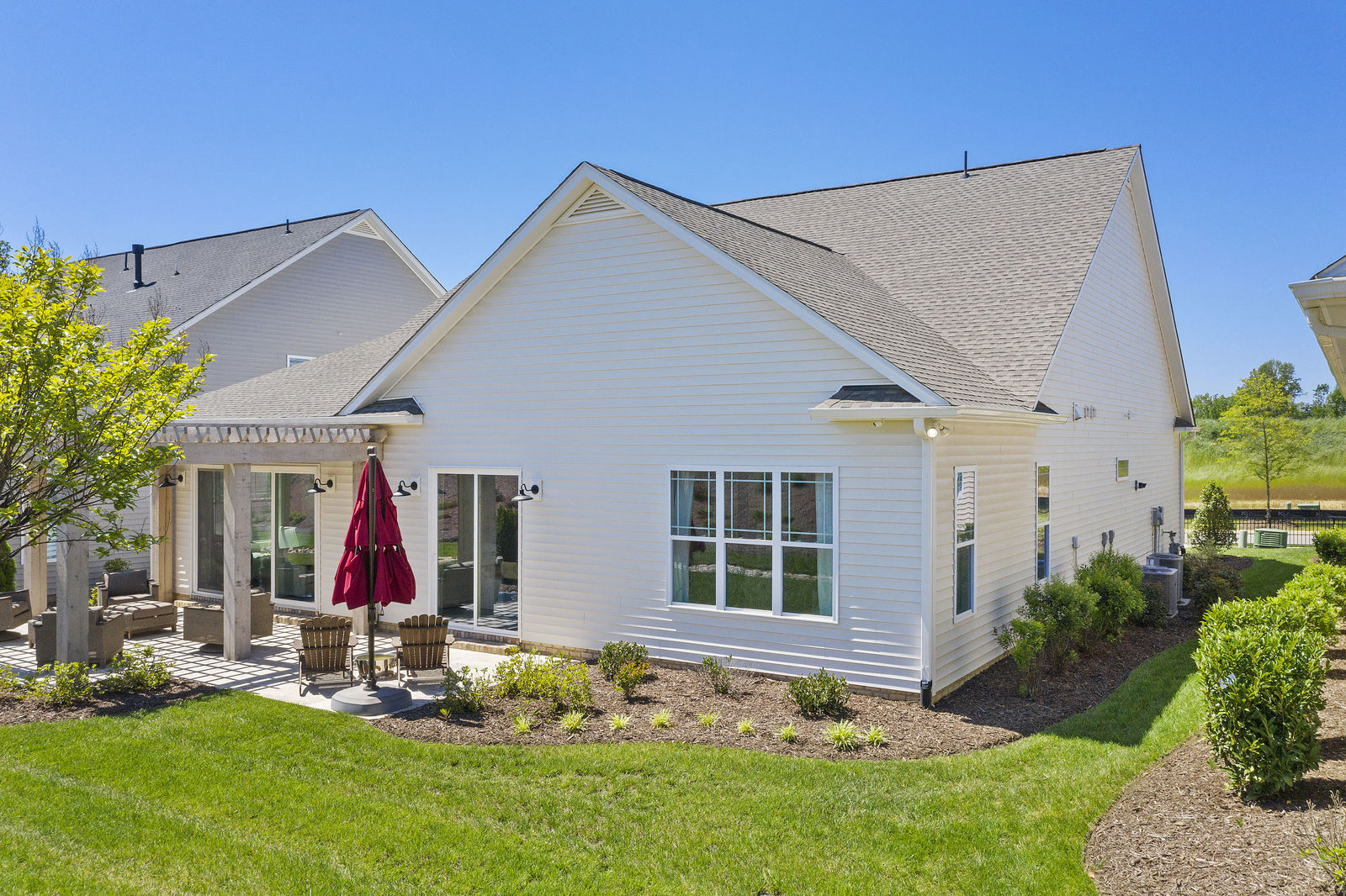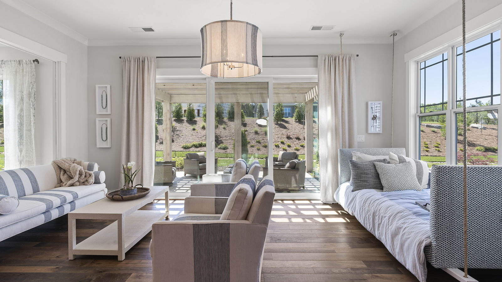 Wonderful opportunity to purchase this absolutely stunning model home in Lake Norman's premier active adult community! Beautifully decorated coastal farmhouse design with open floor plan. Charming and spacious covered front porch, vaulted ceilings with wood beams in Great Room, quartz counters in kitchen and baths, huge working island, breakfast bar, farmstyle sink, soft close cabinets/drawers, and slate appliances. Gorgeous wood flooring throughout! Unique deco tile in master bath with full tiled shower, frameless door and storage galore. Hall bath with tiled tub walls and farm style free-standing vanity. Direct access from master bath to large laundry room. 3rd bedroom is set up as study. Gorgeous sun room leads to huge travertine patio and cedar pergola! Stylish ship lap accents, craftsman molding package, beautiful lighting, and wonderful open floor plan! Home is subject to 2 to 3 year builder lease back.
