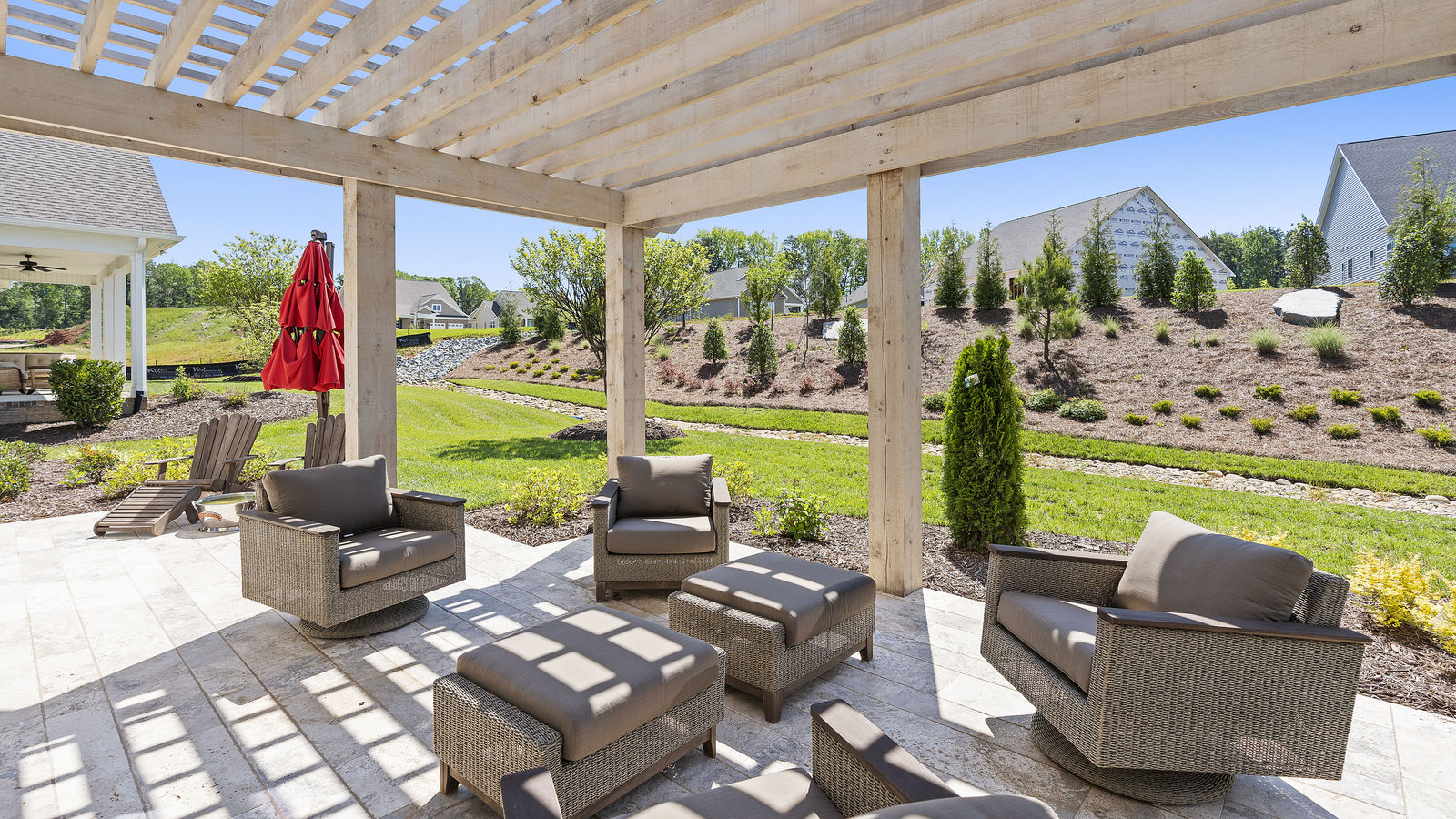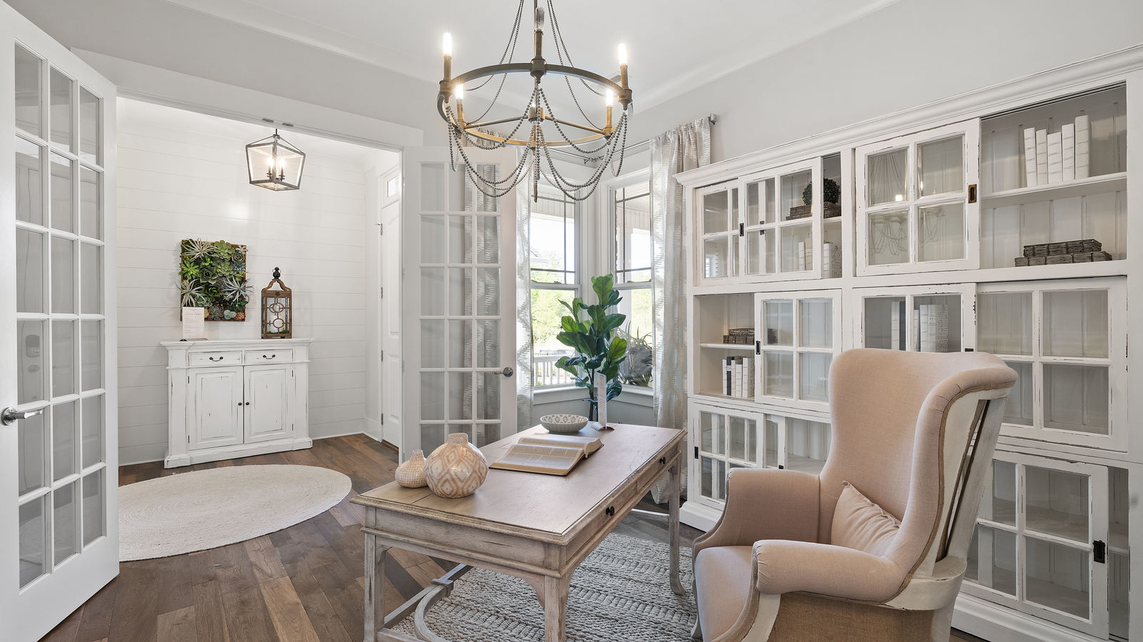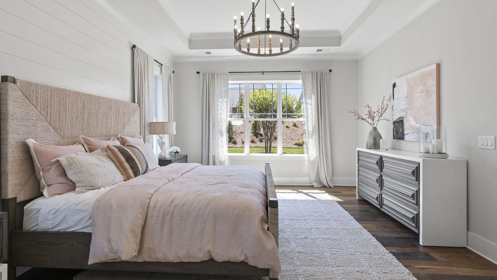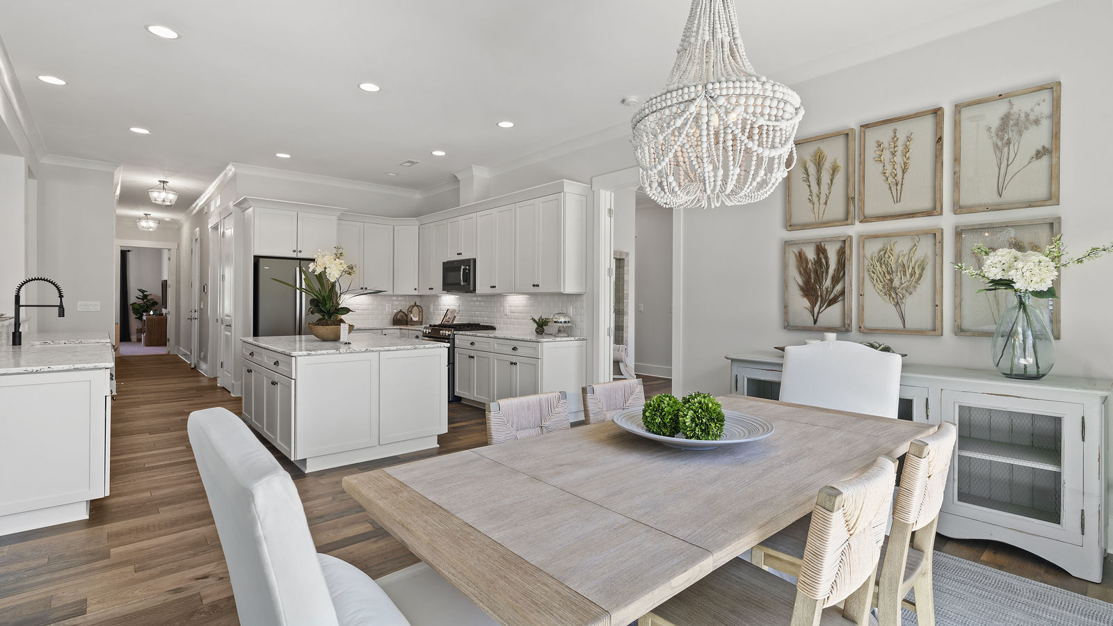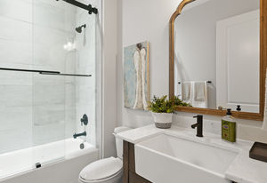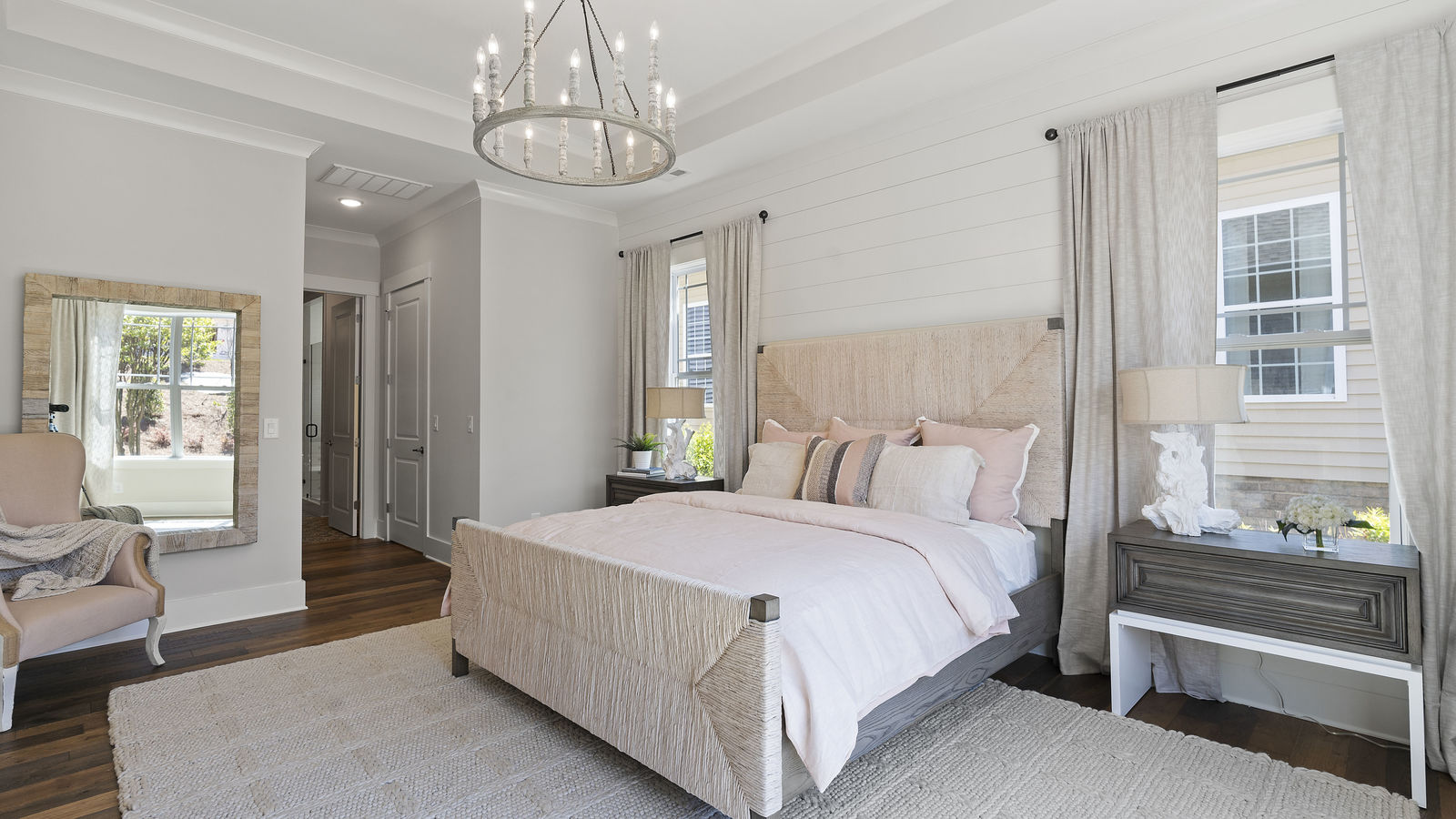 Wonderful opportunity to purchase this absolutely stunning model home in Lake Norman's premier active adult community! Beautifully decorated coastal farmhouse design with open floor plan. Charming and spacious covered front porch, vaulted ceilings with wood beams in Great Room, quartz counters in kitchen and baths, huge working island, breakfast bar, farmstyle sink, soft close cabinets/drawers, and slate appliances. Gorgeous wood flooring throughout! Unique deco tile in master bath with full tiled shower, frameless door and storage galore. Hall bath with tiled tub walls and farm style free-standing vanity. Direct access from master bath to large laundry room. 3rd bedroom is set up as study. Gorgeous sun room leads to huge travertine patio and cedar pergola! Stylish ship lap accents, craftsman molding package, beautiful lighting, and wonderful open floor plan! Home is subject to 2 to 3 year builder lease back.