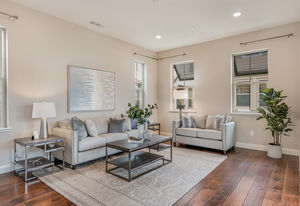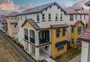 Amazing views from this prime end unit location in this high end Lennar built community with a great commute location and bbq and playground areas. High ceilings, recessed lights, custom window coverings and multi-zone Nest climate control. Security system, solar, electric car charger and an extra designated parking space. Gourmet kitchen with 36” 6 burner gas range, commercial hood, quartz counters, island and soft closing doors. Kitchen great room and separate living room. Balcony with views of the foothills. 2 en-suite bedrooms, one on the ground floor. Spacious master with 2 closets, double vanity, soaking tub and frameless glass shower. Top rated schools.