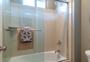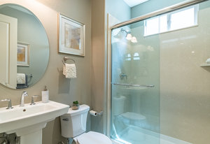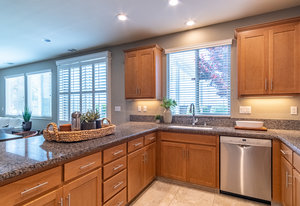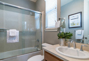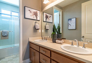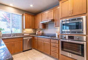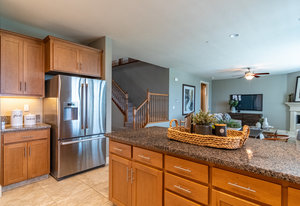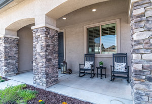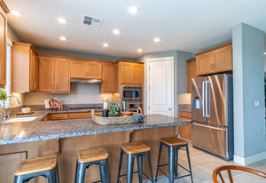 Better than new. Established neighborhood will lure you to buy this two story home located on a 6400 square foot lot. The front porch is very inviting as you go through the front door. The large living/dining room combo is easy to entertain in and flows directly into the large kitchen, family room combination. Granite counter tops, breakfast bar, and lots of storage makes anyone want to cook! The downstairs bedroom and bathroom is a great bonus! Upstairs there are two bedrooms with their own bathrooms. The larger suite features a walk in closet, and spacious bathroom area. Exceptional, unobstructed views from the Master Bedroom Bathroom. The back yard has mature landscape and enjoy the afternoon or mornings sitting on the large patio with the custom trellis. This home is only missing you!