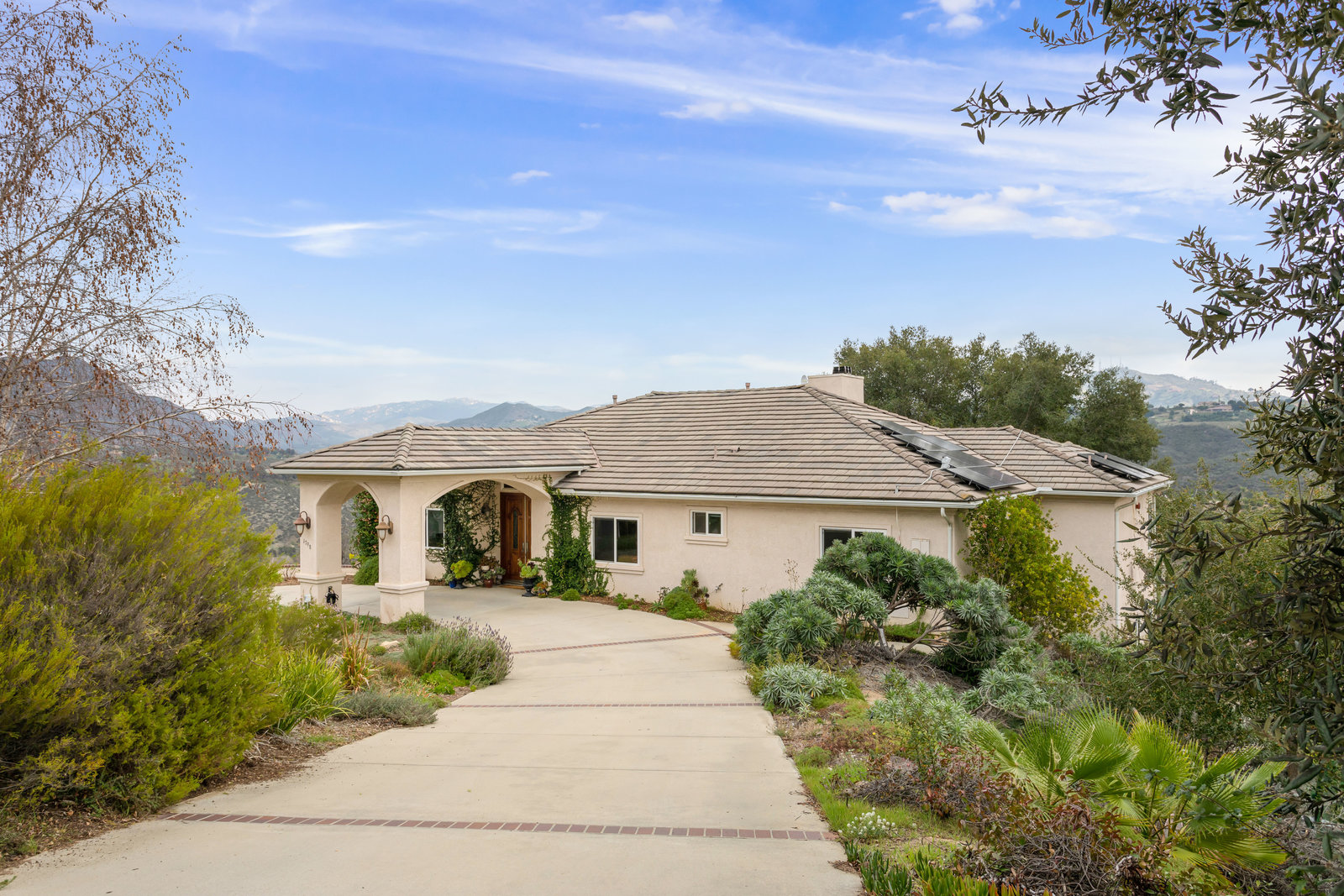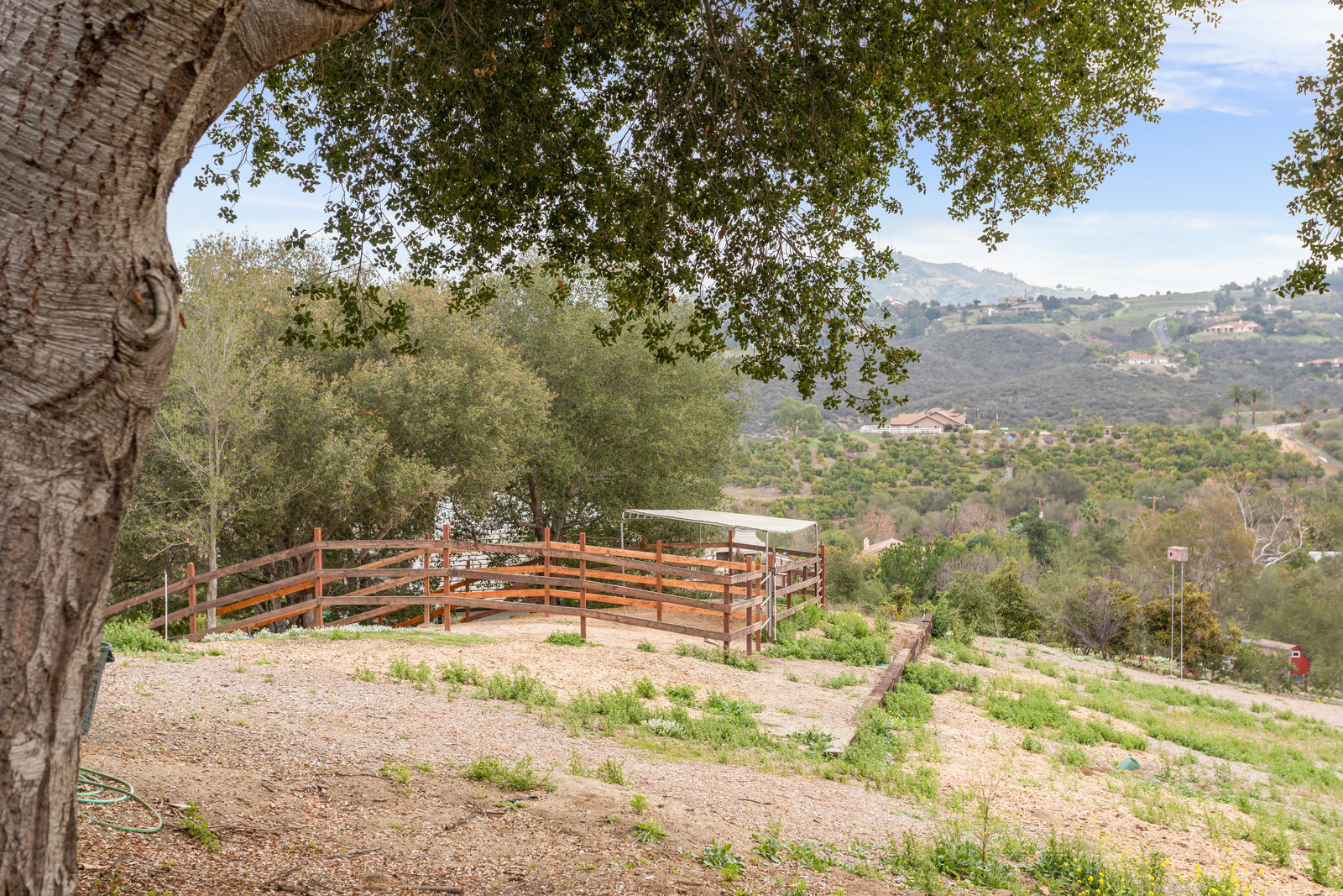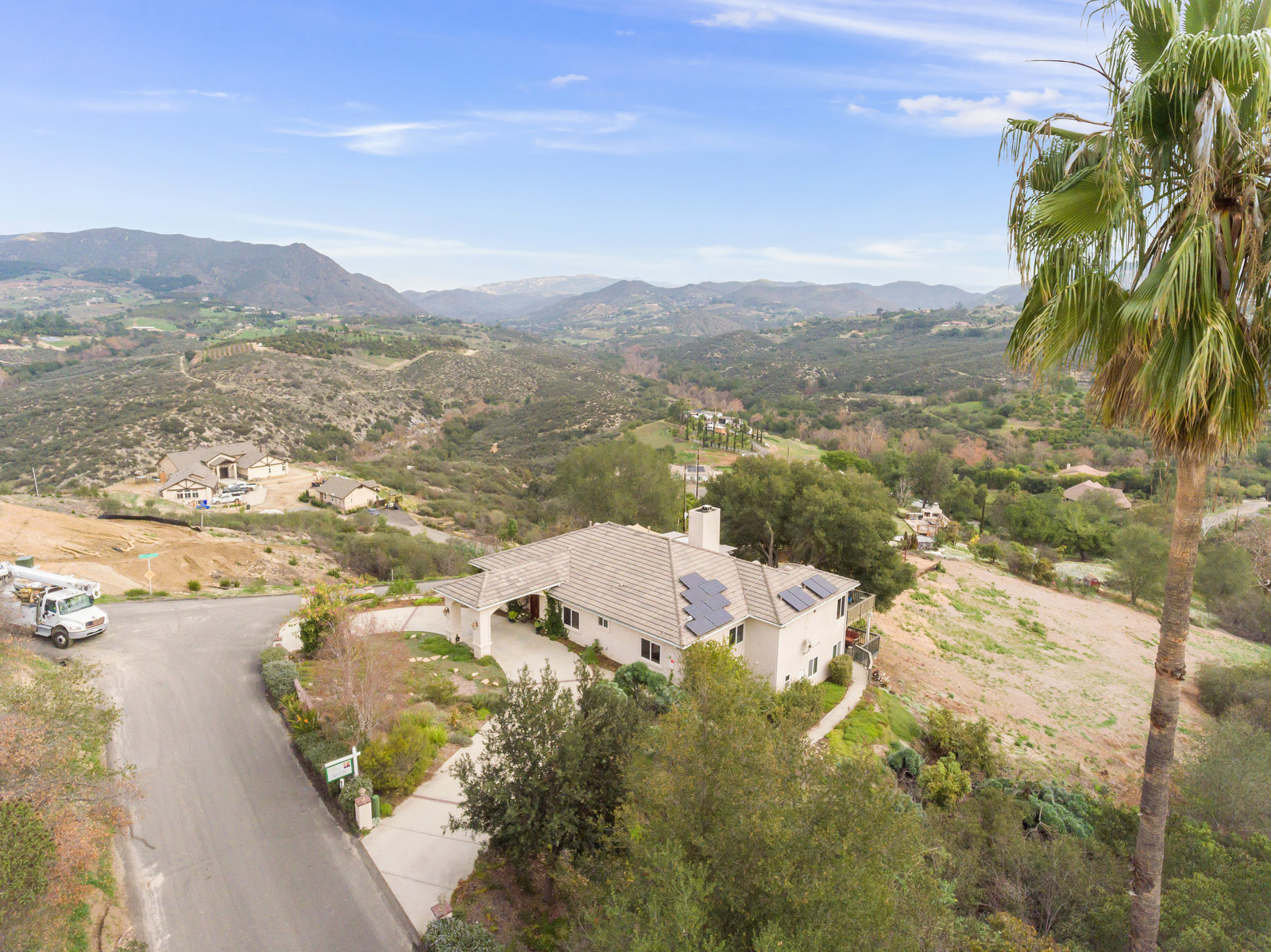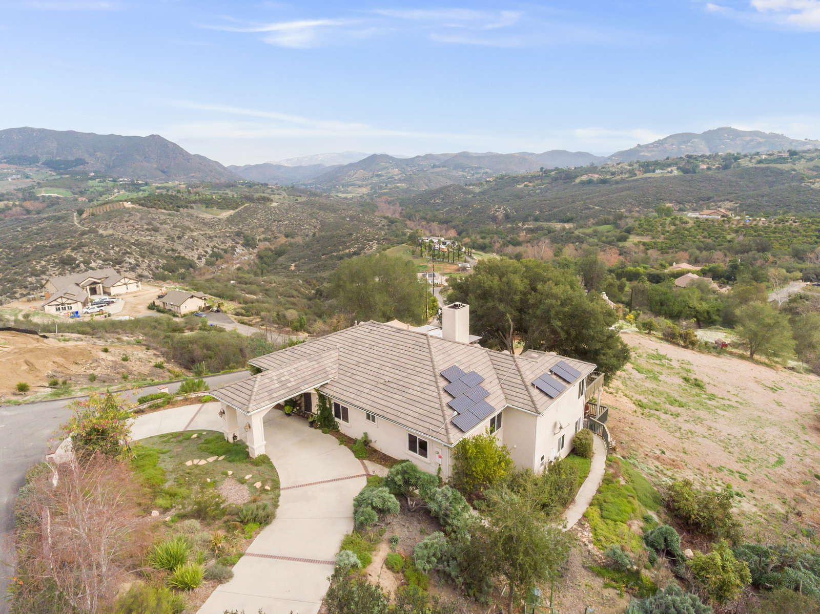 Custom home with panoramic, incredible views. Front entrance level - the main home operates as a single level 3 beds, 2 baths, large open floorplan. Downstairs flex space can be 4th bedroom/3rd bath or rented out. It has separate entrance and kitchenette. It also has an outdoor view deck. It is currently rented for $1500/mth and tenant would love to stay. Exceptional views of the Santa Margarita River Canyon from the main living area. Approx 1000 sq ft of outdoor view entertainment decking. Extra large chef's kitchen with granite, stainless, island AND breakfast bar. Refrigerator is built in. Wine fridge, wine rack and ice maker. Commercial espresso machine is available for purchase. Separate formal dining room. There are so many opportunities for this Gentleman's Farm/Ranch. Horse property with two existing corrals and space for additional growth - or plant your own vineyard. You can ride your horses directly from the property to over 18 miles of trails on the Santa Margarita River Trail. Includes 12x12 shed/tack room with loft. Solar is owned. Home has agricultural water meter and rate. Main irrigation is in from previous avocado grove, so planting your vineyard is one step ahead. Radio-smart bluetooth environmental intuitive sprinkler clock. Low maintenance, water-wise landscaping. New tankless water heater. New Quiet Cool Trident Pro whole house fan. Energy efficient window coverings. All appliances professionally maintained. Master bath has a soaking tub with views! Two sinks, separate shower and walk in closet. Lower level 4-car tandem garage makes the perfect workshop. Covered carport next to garage.