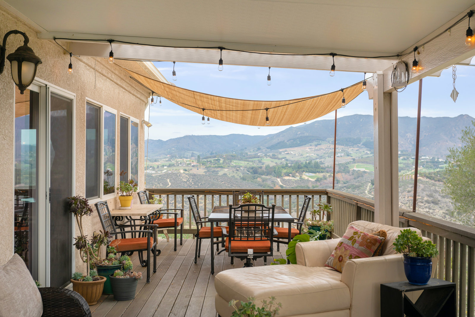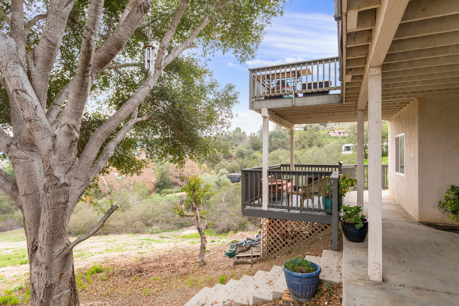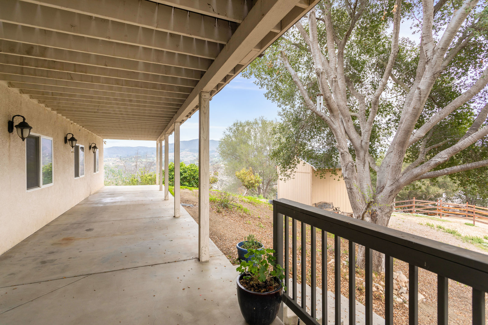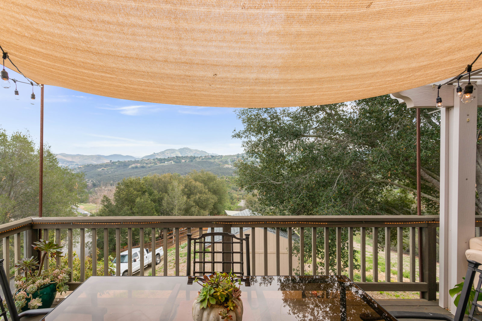 Custom home with panoramic, incredible views. Front entrance level - the main home operates as a single level 3 beds, 2 baths, large open floorplan. Downstairs flex space can be 4th bedroom/3rd bath or rented out. It has separate entrance and kitchenette. It also has an outdoor view deck. It is currently rented for $1500/mth and tenant would love to stay. Exceptional views of the Santa Margarita River Canyon from the main living area. Approx 1000 sq ft of outdoor view entertainment decking. Extra large chef's kitchen with granite, stainless, island AND breakfast bar. Refrigerator is built in. Wine fridge, wine rack and ice maker. Commercial espresso machine is available for purchase. Separate formal dining room. There are so many opportunities for this Gentleman's Farm/Ranch. Horse property with two existing corrals and space for additional growth - or plant your own vineyard. You can ride your horses directly from the property to over 18 miles of trails on the Santa Margarita River Trail. Includes 12x12 shed/tack room with loft. Solar is owned. Home has agricultural water meter and rate. Main irrigation is in from previous avocado grove, so planting your vineyard is one step ahead. Radio-smart bluetooth environmental intuitive sprinkler clock. Low maintenance, water-wise landscaping. New tankless water heater. New Quiet Cool Trident Pro whole house fan. Energy efficient window coverings. All appliances professionally maintained. Master bath has a soaking tub with views! Two sinks, separate shower and walk in closet. Lower level 4-car tandem garage makes the perfect workshop. Covered carport next to garage.
