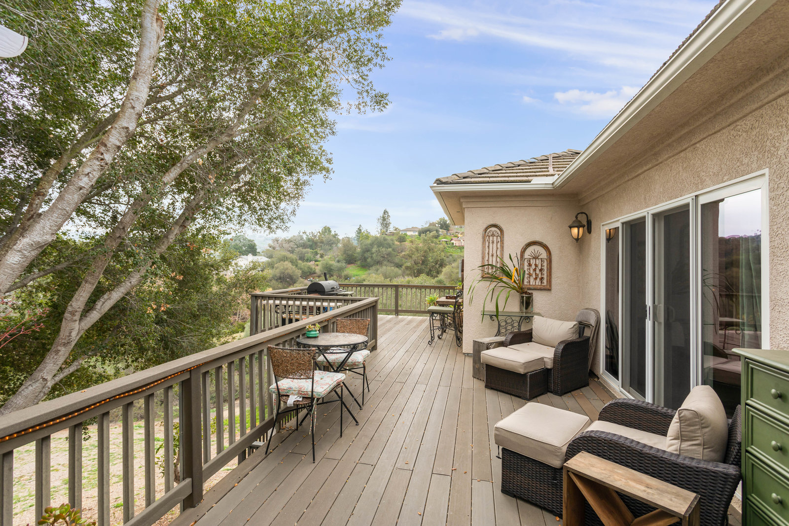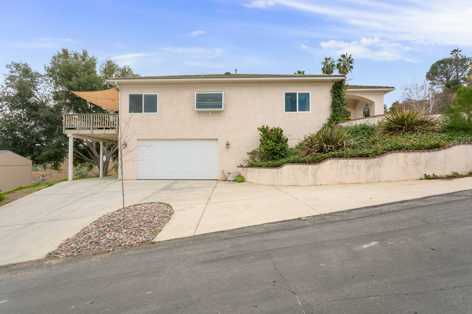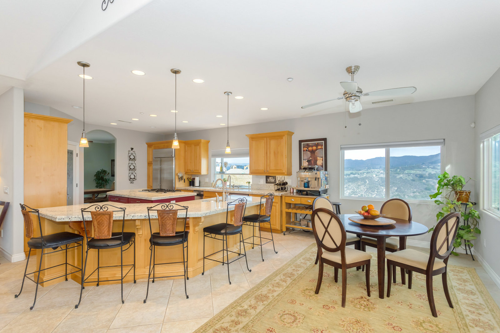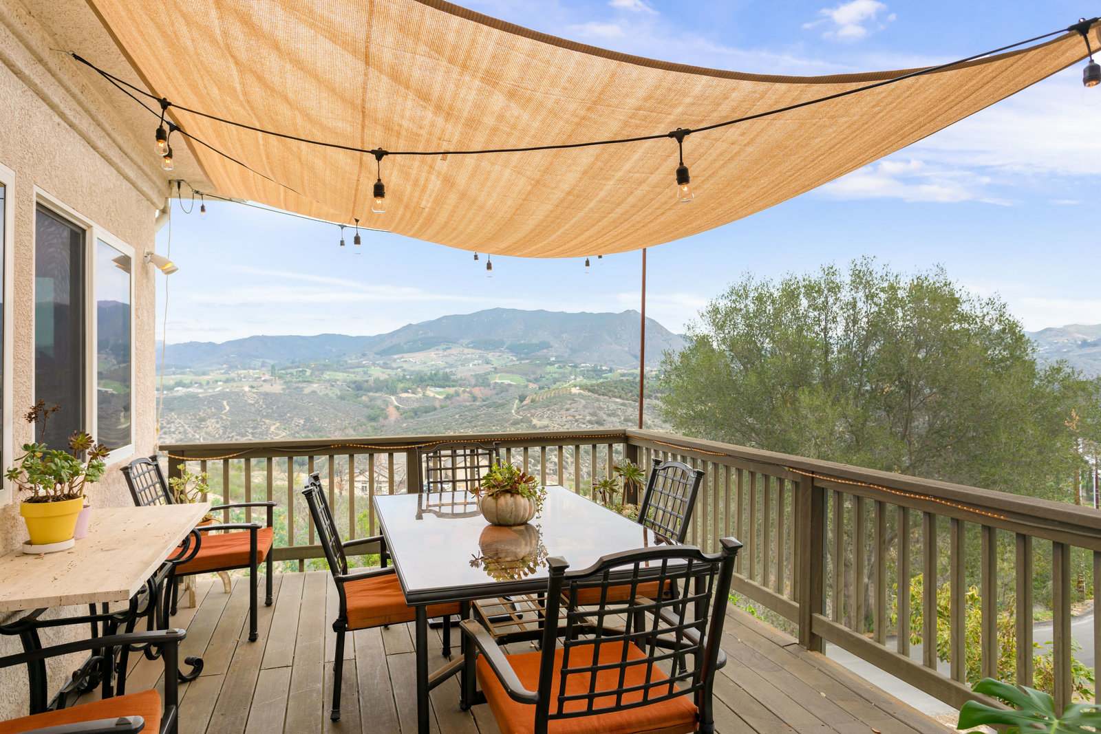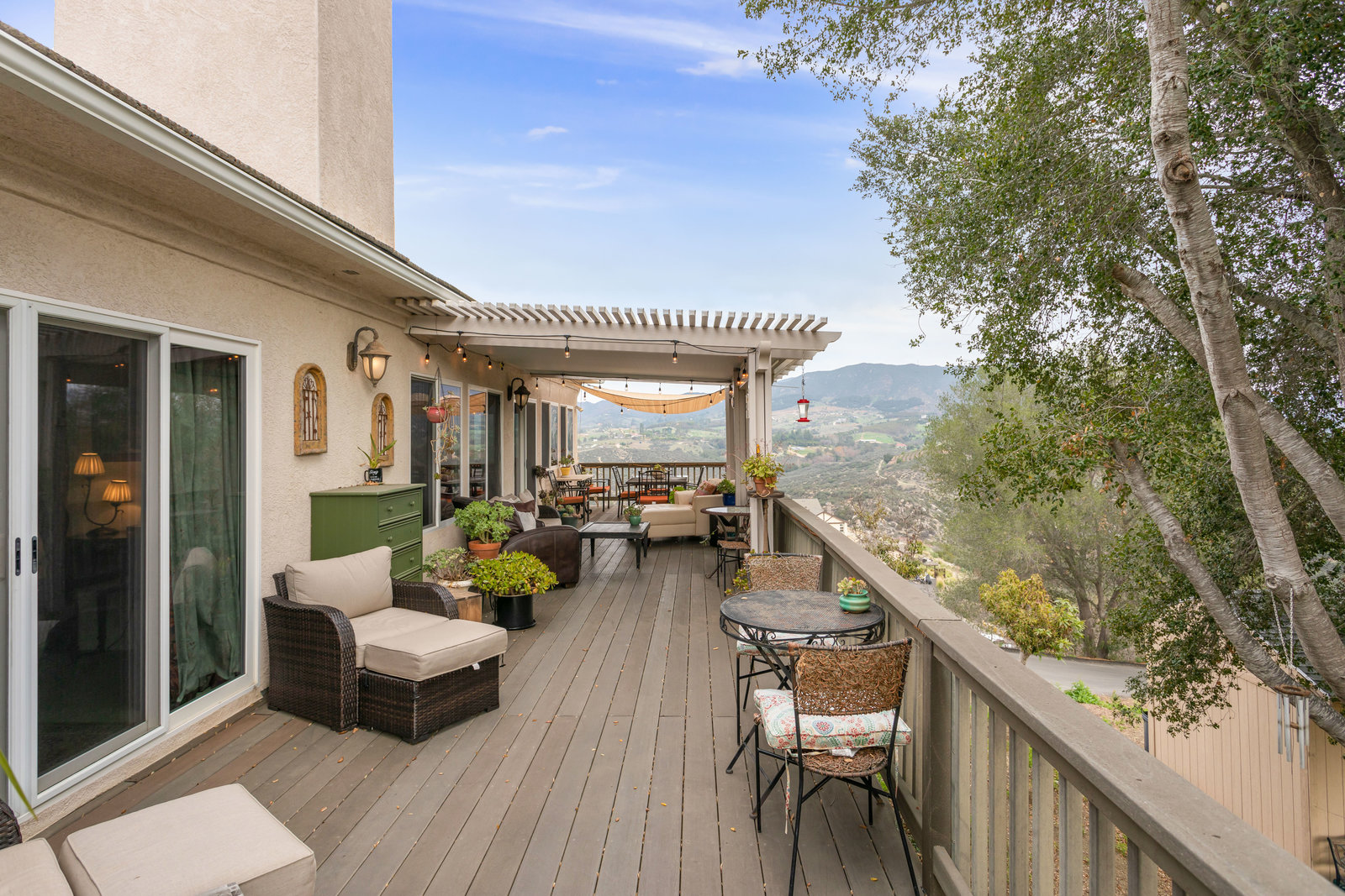 Custom home with panoramic, incredible views. Front entrance level - the main home operates as a single level 3 beds, 2 baths, large open floorplan. Downstairs flex space can be 4th bedroom/3rd bath or rented out. It has separate entrance and kitchenette. It also has an outdoor view deck. It is currently rented for $1500/mth and tenant would love to stay. Exceptional views of the Santa Margarita River Canyon from the main living area. Approx 1000 sq ft of outdoor view entertainment decking. Extra large chef's kitchen with granite, stainless, island AND breakfast bar. Refrigerator is built in. Wine fridge, wine rack and ice maker. Commercial espresso machine is available for purchase. Separate formal dining room. There are so many opportunities for this Gentleman's Farm/Ranch. Horse property with two existing corrals and space for additional growth - or plant your own vineyard. You can ride your horses directly from the property to over 18 miles of trails on the Santa Margarita River Trail. Includes 12x12 shed/tack room with loft. Solar is owned. Home has agricultural water meter and rate. Main irrigation is in from previous avocado grove, so planting your vineyard is one step ahead. Radio-smart bluetooth environmental intuitive sprinkler clock. Low maintenance, water-wise landscaping. New tankless water heater. New Quiet Cool Trident Pro whole house fan. Energy efficient window coverings. All appliances professionally maintained. Master bath has a soaking tub with views! Two sinks, separate shower and walk in closet. Lower level 4-car tandem garage makes the perfect workshop. Covered carport next to garage.