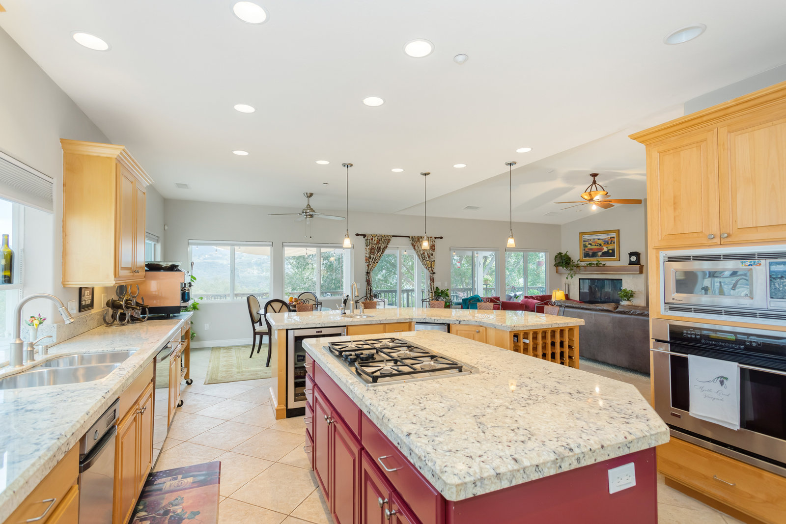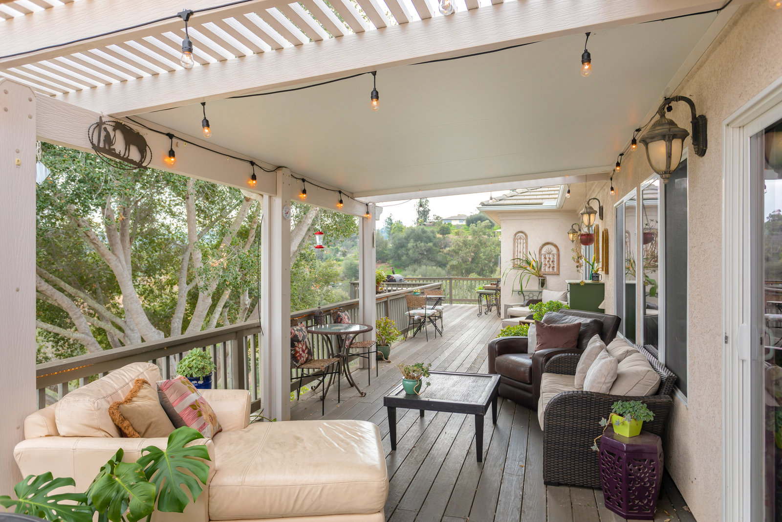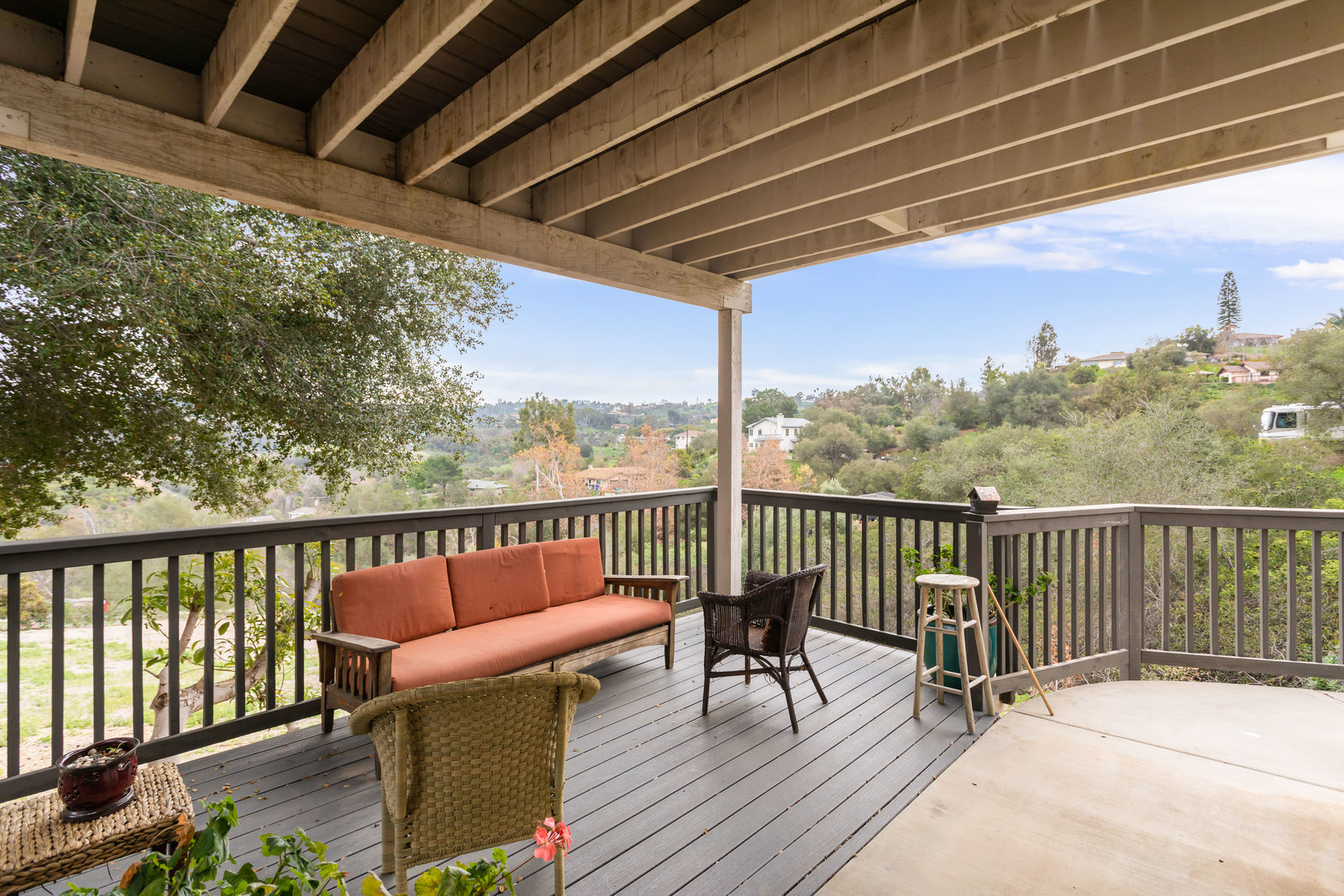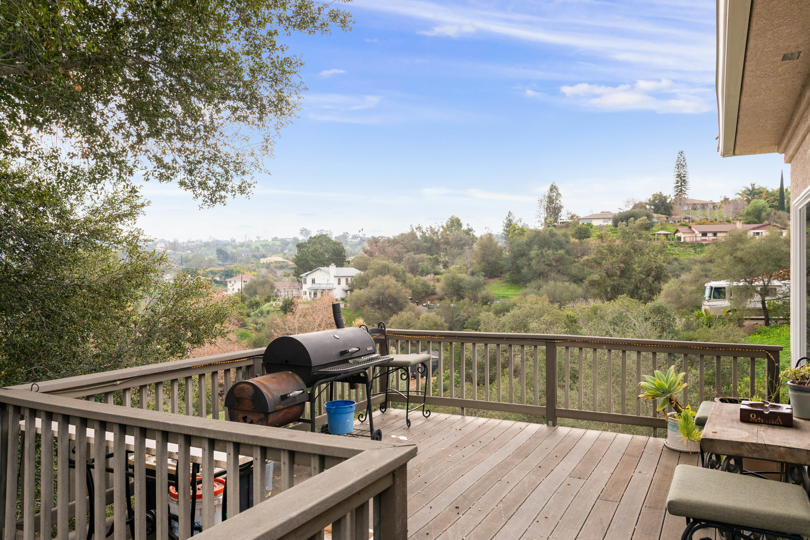 Custom home with panoramic, incredible views. Front entrance level - the main home operates as a single level 3 beds, 2 baths, large open floorplan. Downstairs flex space can be 4th bedroom/3rd bath or rented out. It has separate entrance and kitchenette. It also has an outdoor view deck. It is currently rented for $1500/mth and tenant would love to stay. Exceptional views of the Santa Margarita River Canyon from the main living area. Approx 1000 sq ft of outdoor view entertainment decking. Extra large chef's kitchen with granite, stainless, island AND breakfast bar. Refrigerator is built in. Wine fridge, wine rack and ice maker. Commercial espresso machine is available for purchase. Separate formal dining room. There are so many opportunities for this Gentleman's Farm/Ranch. Horse property with two existing corrals and space for additional growth - or plant your own vineyard. You can ride your horses directly from the property to over 18 miles of trails on the Santa Margarita River Trail. Includes 12x12 shed/tack room with loft. Solar is owned. Home has agricultural water meter and rate. Main irrigation is in from previous avocado grove, so planting your vineyard is one step ahead. Radio-smart bluetooth environmental intuitive sprinkler clock. Low maintenance, water-wise landscaping. New tankless water heater. New Quiet Cool Trident Pro whole house fan. Energy efficient window coverings. All appliances professionally maintained. Master bath has a soaking tub with views! Two sinks, separate shower and walk in closet. Lower level 4-car tandem garage makes the perfect workshop. Covered carport next to garage.