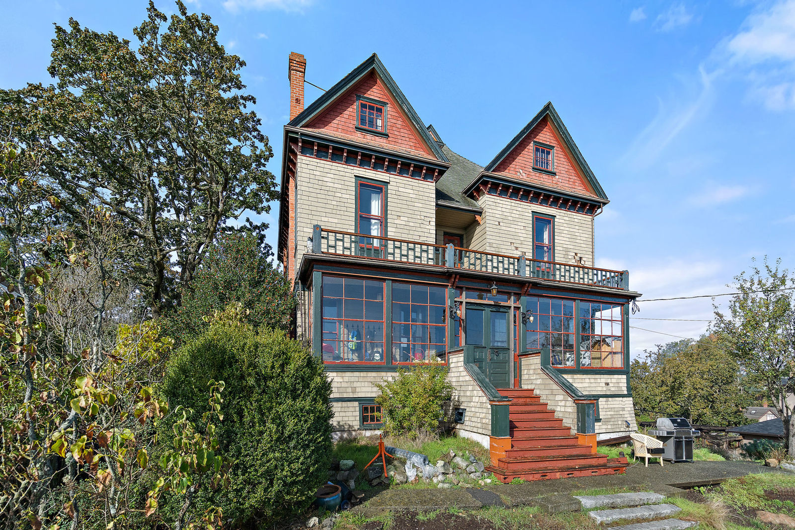 Welcome to the ‘Jolimont’, a true piece of Oak Bay history! This unique heritage home is the 4th oldest home in Oak Bay. Incredible ocean and mountain views as this home sits high up off the street! Coming through the enclosed front porch, the main floor consists of a large den/sitting room, spacious dining room, kitchen, laundry, sun room and large living room which can be separated into two rooms if desired. The second floor consists of the primary suite with walkthrough closet and 4 pc ensuite, 3 more bedrooms and another 4 pc bath. The third floor has 4 more bedrooms and a family/games room. Some other features of this home are the gorgeous stained glass windows, high ceilings, large detached garage, updated kitchen, radiant in floor heat and 6 beautifully tiled fireplaces, each different from the other! This is a must see! Rarely can a piece of history such as this be purchased, now is your chance!