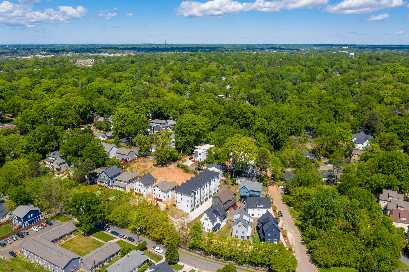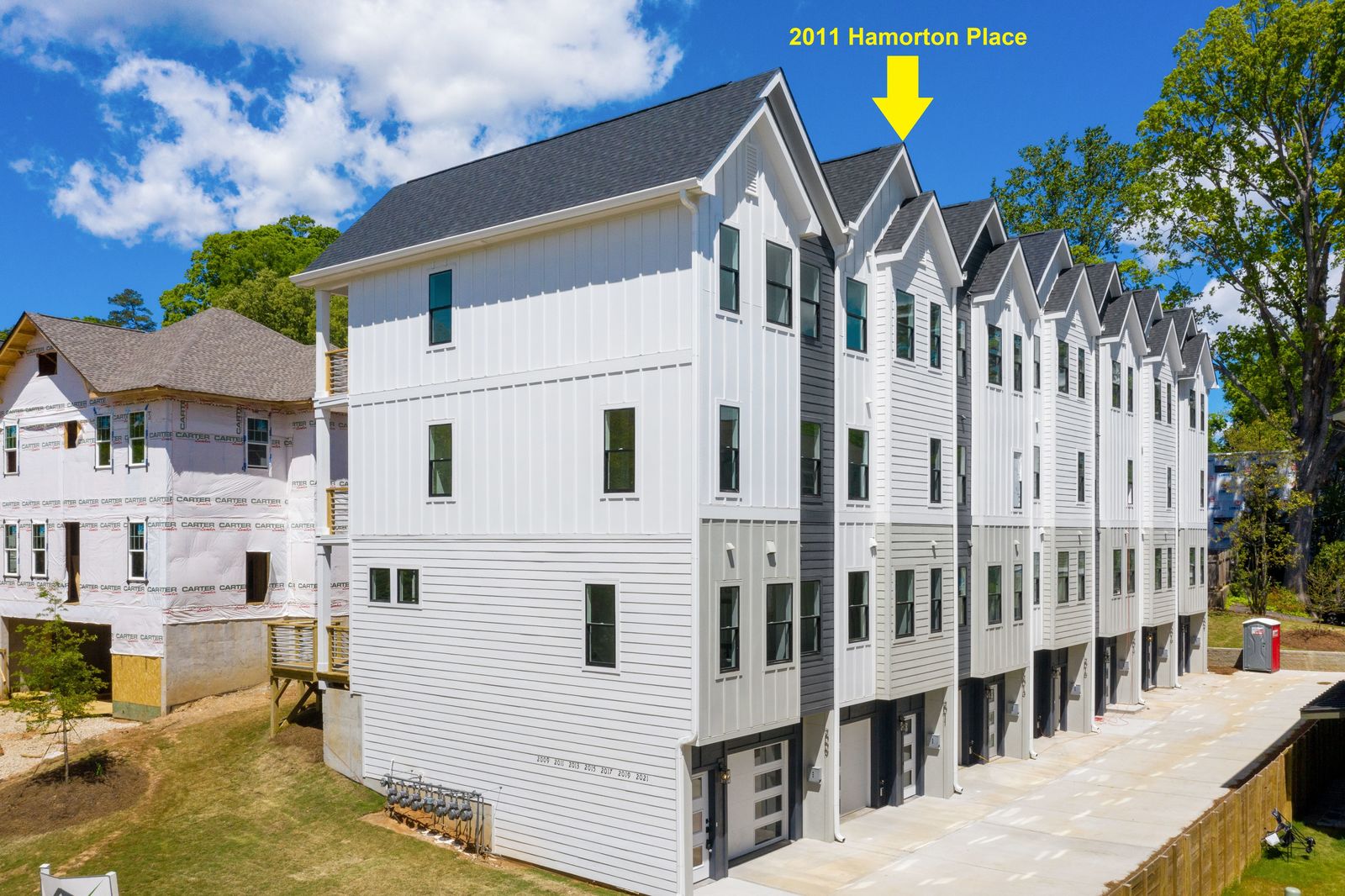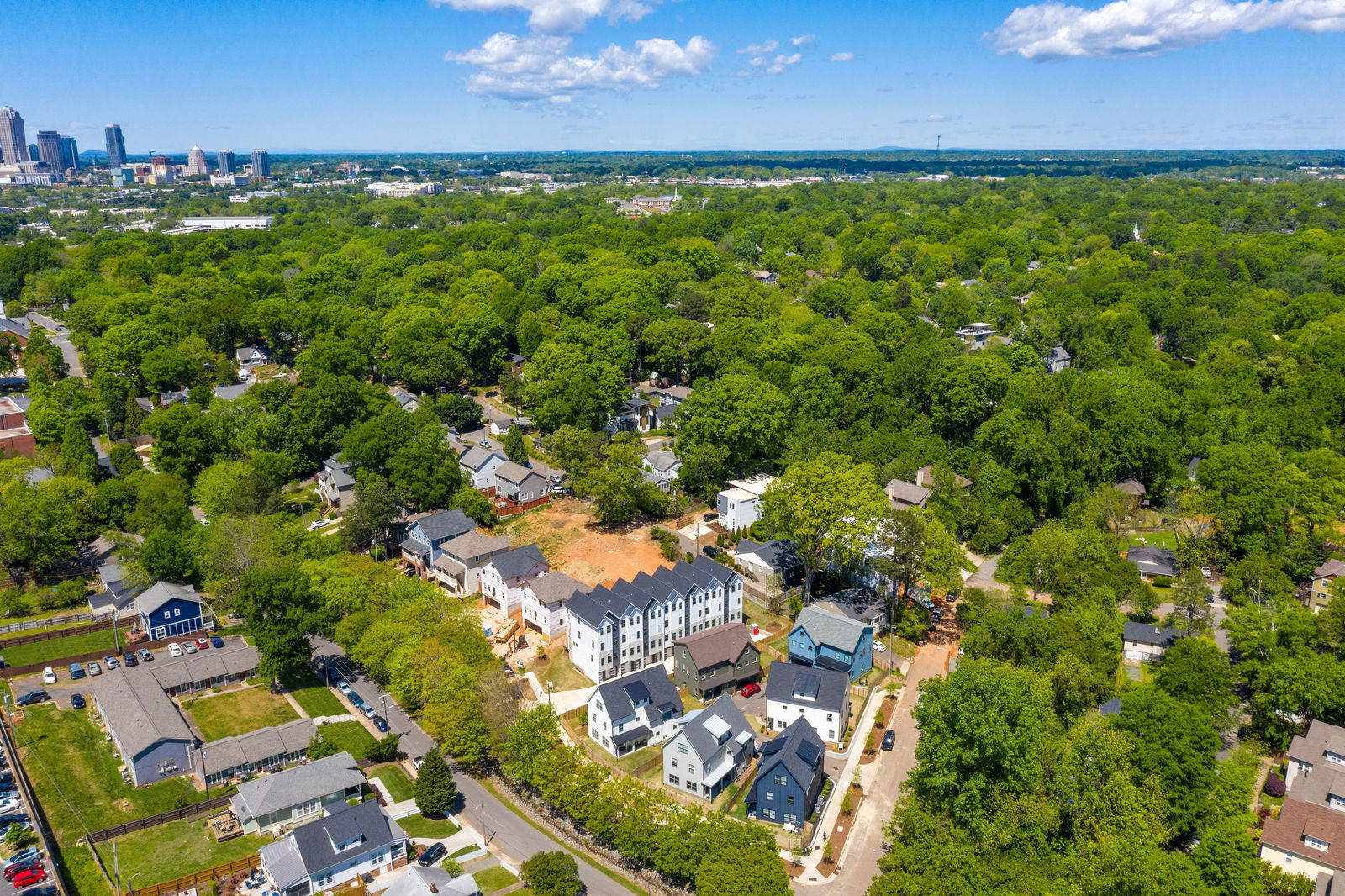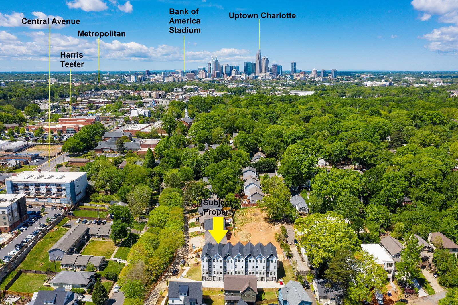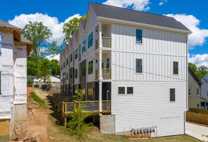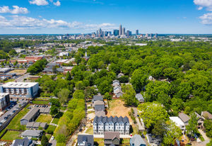 Step into home ownership in this exclusive collection of 7 modern farmhouse townhomes located a stone's throw from Plaza Midwood's main street bustle and Veterans Park. Untethered, low maintenance living with a full-floor owners retreat, walk-in closet, desk nook, & full-size laundry PLUS two secondary bedrooms & bath on the top floor. Designer-selected lighting & finishes, including quartz kitchen and bath countertops, classic subway tile backsplash & shower surround, and shaker style cabinetry. Open living level with eat-at kitchen island, stainless gas range and kitchen appliances, plus full-size dining area & front porch. Technology Upgrade Package with NEST thermostat, security cameras, video doorbell; plus, touchpad entry.
