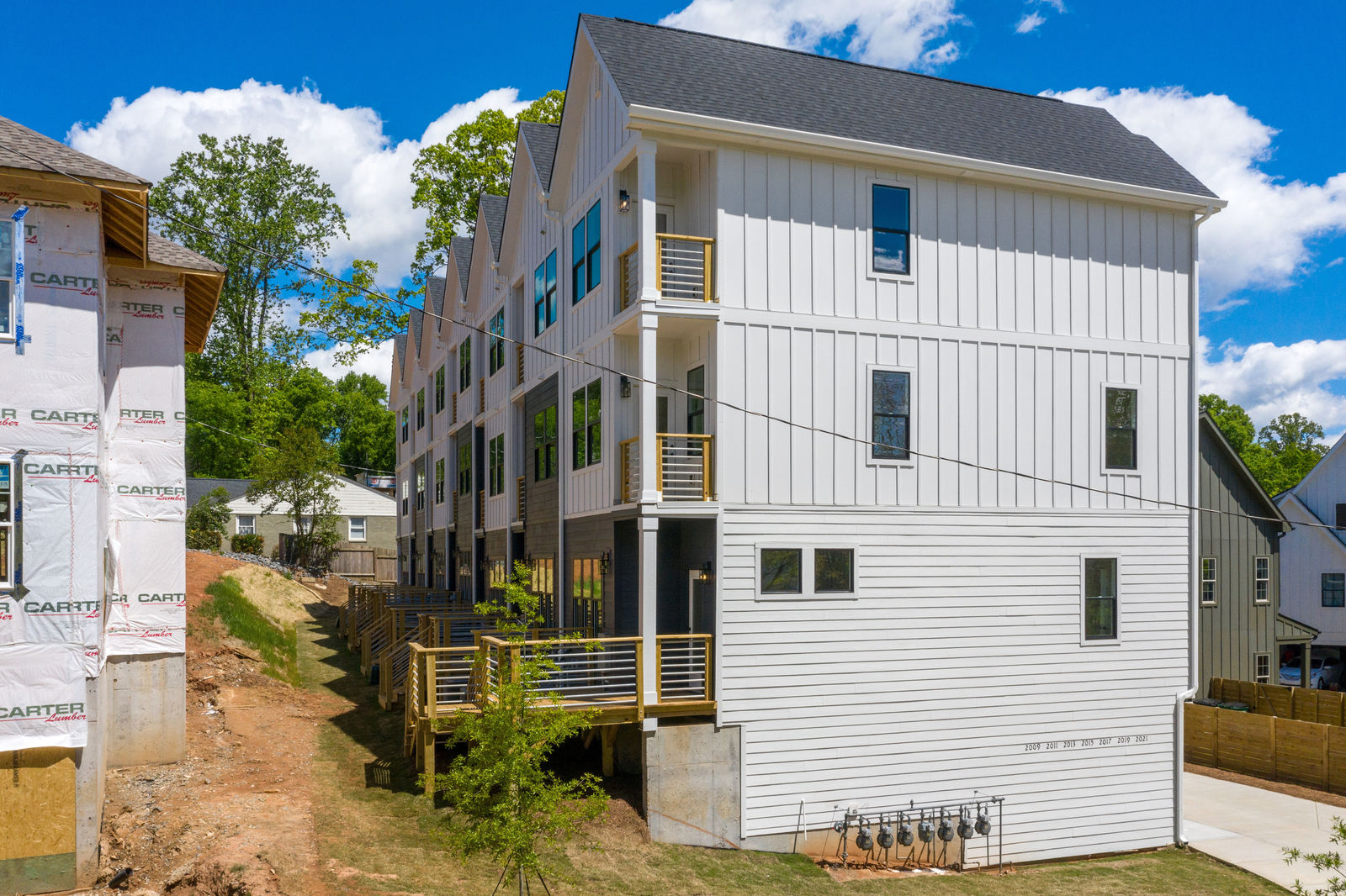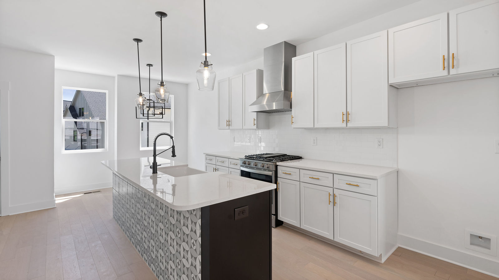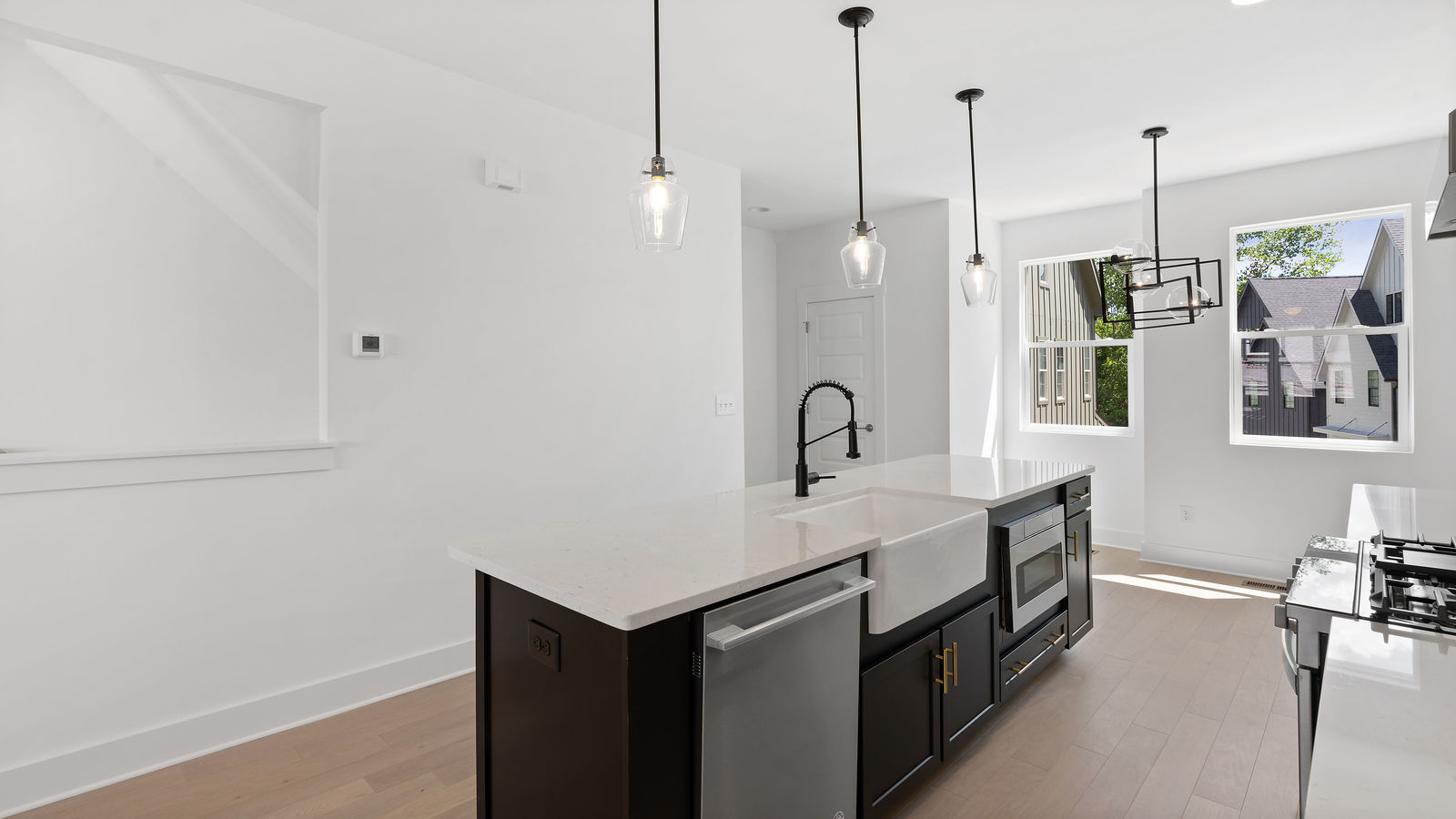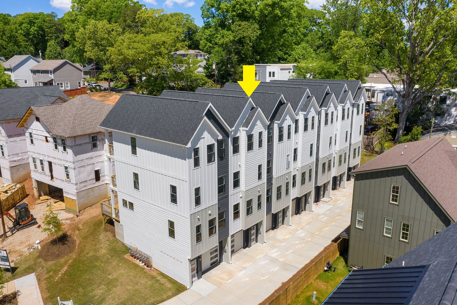 Step into home ownership in this exclusive collection of 7 modern farmhouse townhomes located a stone's throw from Plaza Midwood's main street bustle and Veterans Park. Untethered, low maintenance living with a full-floor owners retreat, walk-in closet, desk nook, & full-size laundry PLUS two secondary bedrooms & bath on the top floor. Designer-selected lighting & finishes, including quartz kitchen and bath countertops, classic subway tile backsplash & shower surround, and shaker style cabinetry. Open living level with eat-at kitchen island, stainless gas range and kitchen appliances, plus full-size dining area & front porch. Technology Upgrade Package with NEST thermostat, security cameras, video doorbell; plus, touchpad entry.