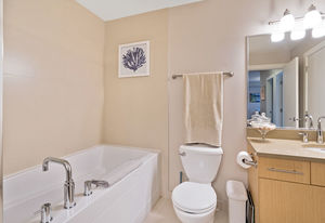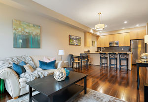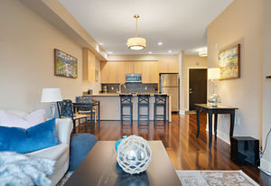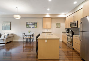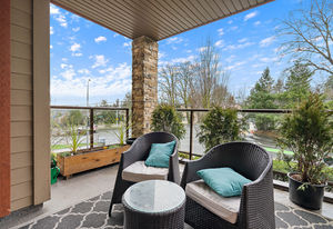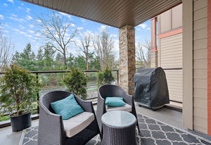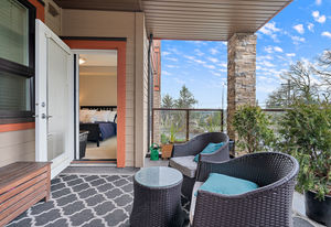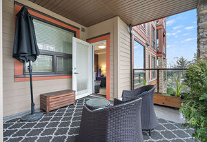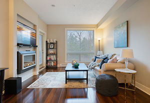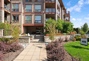 The Duval; 2 Bedroom condo in like-new condition! Open concept living space, and an efficient layout in this fabulous unit. Cozy up to the electric fireplace in the living room, or enjoy the Spa-like ensuite bath with heated floors and soaker tub. The contemporary kitchen has stainless steel appliances, pretty mosaic backsplash, and Ceaserstone counters. This wonderful open plan is great for entertaining. There is also a spacious deck where you can spend time with friends. Centrally located and just a short hop over to the bus exchange, or stroll over to the fabulous restaurants, shopping or coffee at the Royal Oak & Broadmead Villages. the Commonwealth Recreation Centre and golf clubs are just down the street. Underground parking and extra storage lockers are in this building. This is a bright and open unit waiting for you to call it home. Check out the virtual tour and video link.