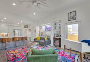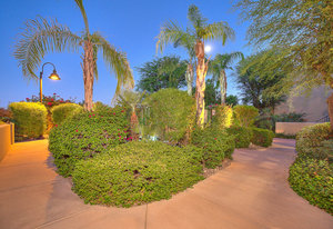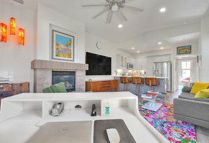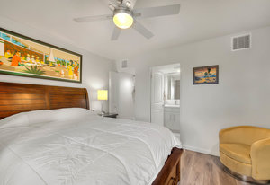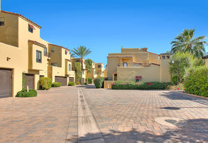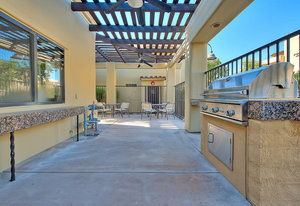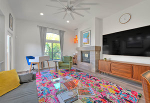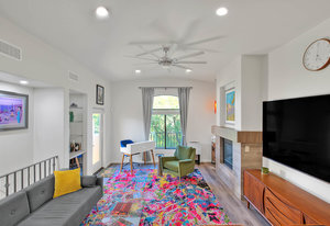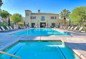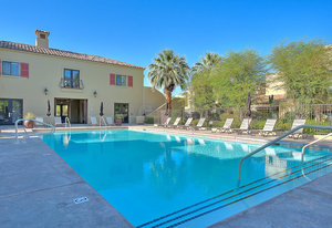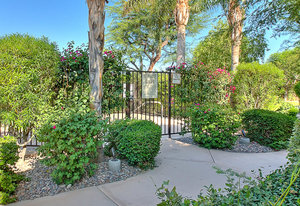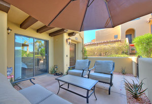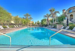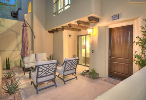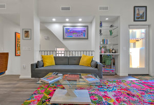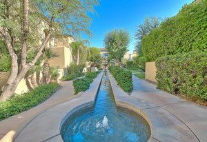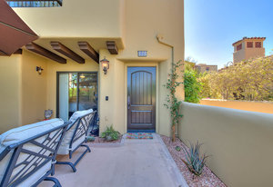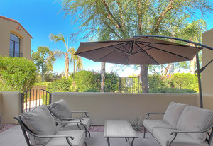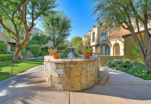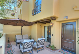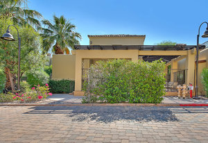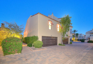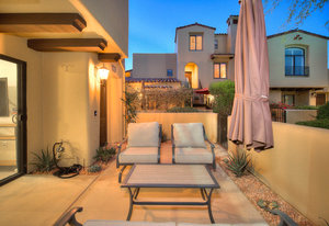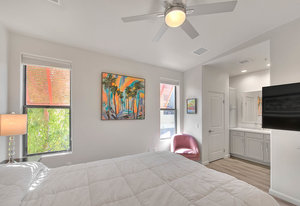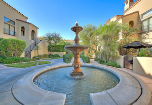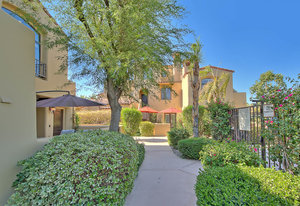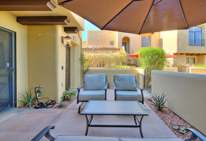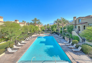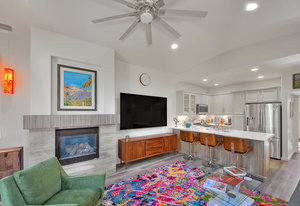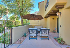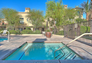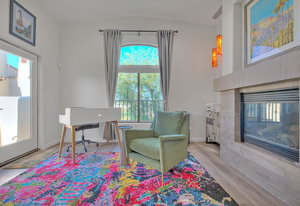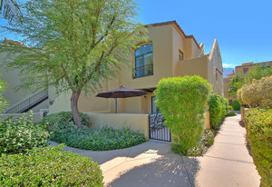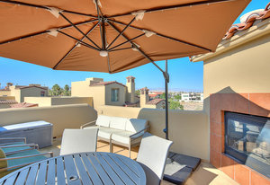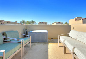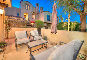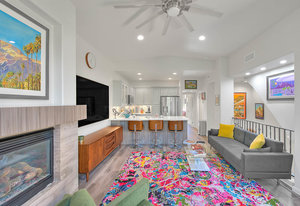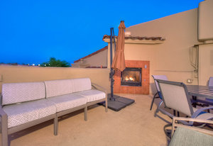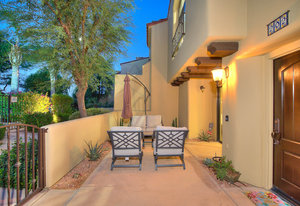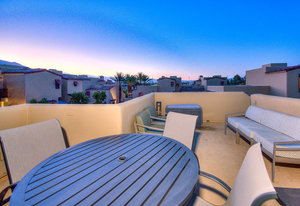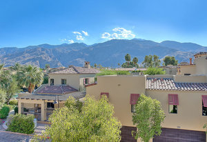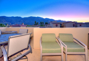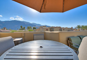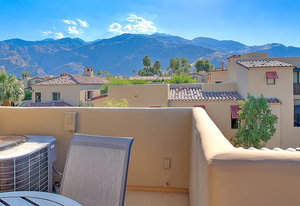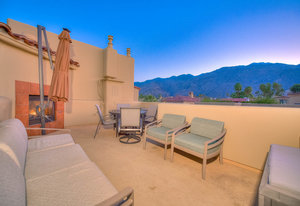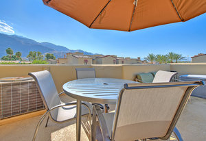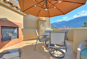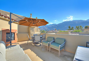 Welcome to Villorrio, an enchanting Tuscan-style luxury living condo community in the desirable Central Palm Springs. Enjoy the beautifully landscaped paths on your way to the east facing private patio. Located directly across from a spa, this recently remodeled 3-level condo features an open-concept living space filled with lots of light, a gas fireplace, and a vaulted ceiling, and it includes two en suite bedrooms, each with a Westin Hotels Heavenly Bed. The chef’s kitchen features a full suite of appliances, gorgeous quartz countertops and a breakfast bar. On the side of the living room, a door leads to a private exterior staircase, which takes you to a large sky deck with stunning full mountain views, and an exterior fireplace. A two-car garage and ample guest parking is also included. This prestigious gated community is centrally located in Palm Springs, only a short 8-minute walk, about a half a mile, to reach all of the trappings that downtown Palm Springs has to offer, including a nightlife scene with something for everyone, restaurants, shopping, art galleries, museums, groceries, and parks. The complex features a community pool and 3 spas, a fitness center, a clubhouse with a kitchen and BBQ, cobblestone streets that are well maintained, and the grounds are beautifully landscaped as well.