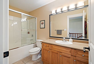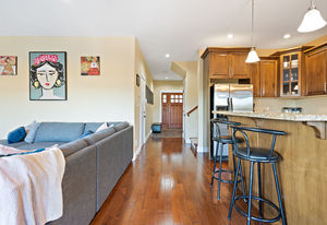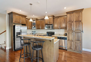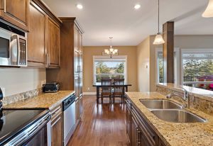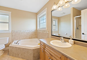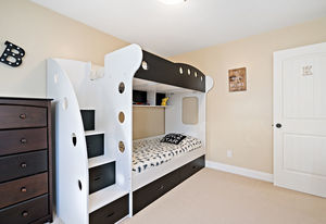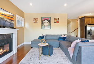 This 4-bedroom, 4-bathroom family home is perfectly situated on the back of Bear Mountain and just minutes away from shopping, restaurants, lakes, trails, as well as French and English schools! This home offers an ideal layout with a lovely large open kitchen that offers stainless steel appliances, granite counters, a raised eating bar for the kids and opens to the dining room, large living room and big, sunny deck. Upstairs you will find 3 bedrooms including a beautiful master bedroom with vaulted ceilings leading to your 4-pce ensuite bathroom with soaker tub, as well as walk in closet, 2 large additional bedrooms, a family bathroom and laundry. The lower level includes a media room, another bedroom, bathroom, large storage area and a bonus recreational room that is currently being used as a gym. The lower level could easily be converted into a 1-bedroom suite while keeping the media room for the main home. From the hardwood floors and garage to the fully fenced yard, fabulous price point, and neighbourhood, this one is truly the perfect family home!