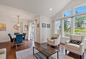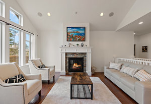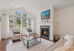 Located in a fantastic Bear Mountain neighborhood right across from Alton Park this 2900 sq/ft Luxury Home features 4 bedrooms + den, 3 full baths & a unique floorplan with tons of space for the family. The main level features a fabulous family room & bar, plus you’ll enjoy the added flexibility of a bedroom, full bath & office on the ground level. French doors give easy access to the huge 33x21 west facing patio-ideal for outdoor entertaining. Beside the patio there is a fenced, irrigated yard. Follow either of the 2 staircases up to the bright main living level & enjoy life in your spacious formal living room with vaulted ceiling, huge stunning kitchen with granite counters & forest/park view, new appliances & 3 more bedrooms (all with new carpet). Primary suite with double-sink ensuite & free-standing soaker tub. Double garage & EV charger, tons of storage with crawl space. Steps to world class golf, trails & restaurants. Check out the media link for video, floor plan & virtual tour.