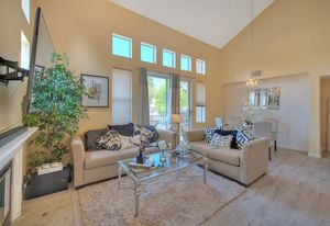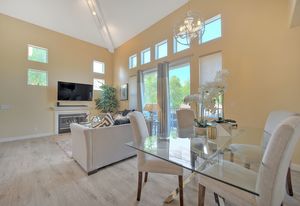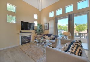 2 Bed + 2 Bath plus loft. Master bedroom & loft upstairs. One bedroom downstairs. Loft can be used as an office. Largest model end unit. Vaulted ceilings. Wood laminate flooring. Remodeled ...