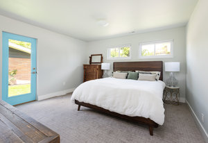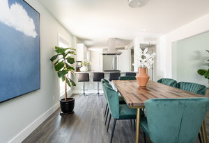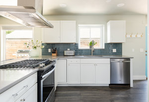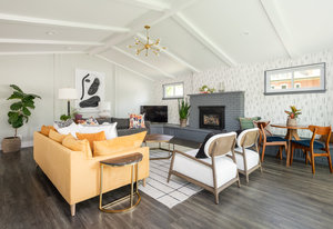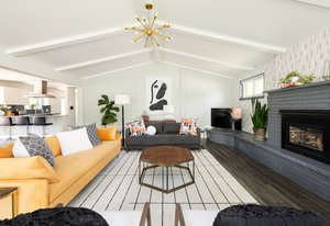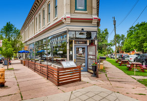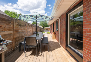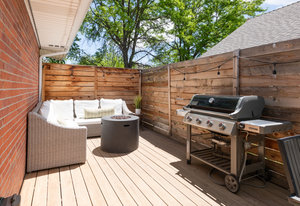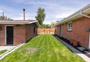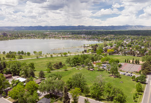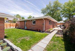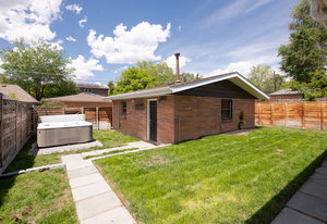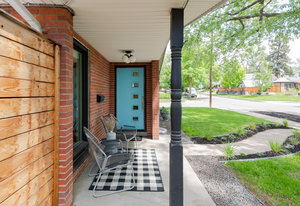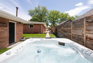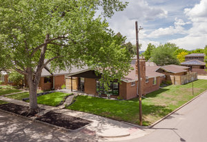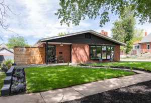 Incredibly sleek and cool brick mid-century modern on a large corner lot just blocks to Sloan’s Lake, walkable to the shops at Highlands and an easy bike ride to Edgewater, Jefferson Park, and the restaurants and shops on Tennyson. Literally in the heart of everything you love about living in Northwest Denver. The style and architecture of this home is highly sought after but rarely found. The minute you walk in the front door you are captured by the open floor plan with vaulted open beam ceilings, a brick hearth with gas fireplace, and a wall of windows that floods the room with natural light. Tasteful and contemporary plank flooring throughout the front rooms. Amazing dining room that is perfect for large parties and entertaining. Open style kitchen with modern finishes like quartz countertops, glass tile backsplash, and gas stove with stylish range hood suspended over the expansive bar stool seating area. Plentiful cabinetry, including pantry cabinet. Step outside from the kitchen for convenient outdoor BBQs with extended seating areas for both dining and casual lounging. The primary bedroom suite features a walk-in closet, double vanity sink, and shower. Fresh paint throughout the interior. Inviting covered front porch perfect for morning coffee. Everything from the front door to the back is a pleasure to view. Enjoy evenings in the 6-person hot tub with lighting and a waterfall feature.
