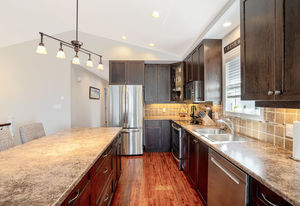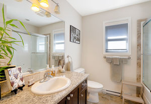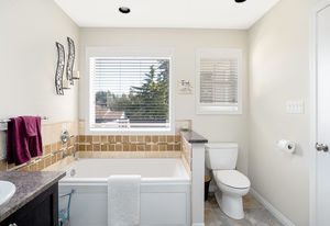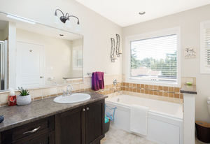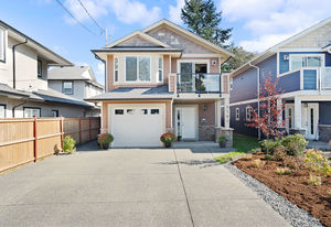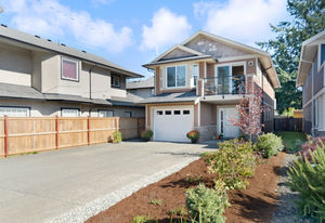 Welcome home to this fantastic, flexible property in the heart of Langford. The main floor offers vaulted ceilings in the living area and a skylight for an abundance of natural light in the open concept living, dining, and kitchen. Warm wood cabinets and stainless-steel appliances will make this an enjoyable place to prep dinners for friends and family. Easy access to the BBQ is just outside the patio door on the upper deck for all year cooking. This floor also holds 2 beds and 2 full baths. Your master bedroom offers a huge sunny private deck, a large walk in closet and the ensuite bath has an air-jetted soaker tub, separate shower, and a double sink vanity, all with heated tiled flooring! On the lower level, use it as a bonus 1 bedroom in-law suite or as a spare bedroom and media/rec room. On this level, you will also find laundry, access to the back yard with a covered patio and a garage. Steps to all amenities including yoga, restaurants, coffee shops, groceries, school, buses, and the Galloping Goose trail. Check out the video and virtual tour link for more info.