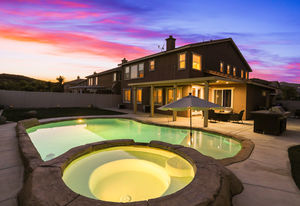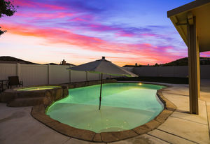 Welcome to this fabulous 5 bed, 3 bath beautiful pool and spa home in Murrieta Oaks. Walking distance to Antelope Hills Elementary, and easy access to the 215, 15, and new Clinton Keith extension, you are in a great location. There is a bed and bath downstairs, along with two flex rooms. Upstairs, you will find an additional four bedrooms, two bathrooms, and a spacious loft. This home was painted in 2015, has newer garage doors, a remodeled kitchen and master bath, vinyl fencing, a brand new water heater, and the pool was resurfaced this year. With this amazing floor plan, gorgeous pool, grass play area, and so many nearby amenities, it won't last long!