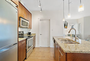 Welcome to your 2 bedroom, 2 bathroom top floor unit just minutes from schools, shopping, Vic General Hospital, the newly implemented Eagle Creek Shopping Center and YMCA Fitness Center in this up and coming neighbourhood! This well cared for strata is just steps from The Galloping Goose Trail, Portage Inlet, & Helmcken Centennial Park, perfect for a stroll, run, or bike ride with the kids or pup. This pet friendly home offers granite kitchen countertops, hardwood flooring, stainless steel appliances, plenty of natural light, open concept living; dining room, all while quietly nestled at the back of the building. The master suite is generously sized offering a walk-in closet, 4pce bathroom, and large balcony that invites the outdoors in. In addition, this suite includes parking, storage, in-floor heating, window treatments, and custom sound proofing between floors. This condo is perfect for a family starter, single individual, or couple, looking for a practical neighbourhood to call home!