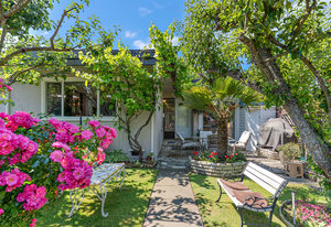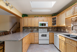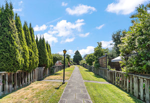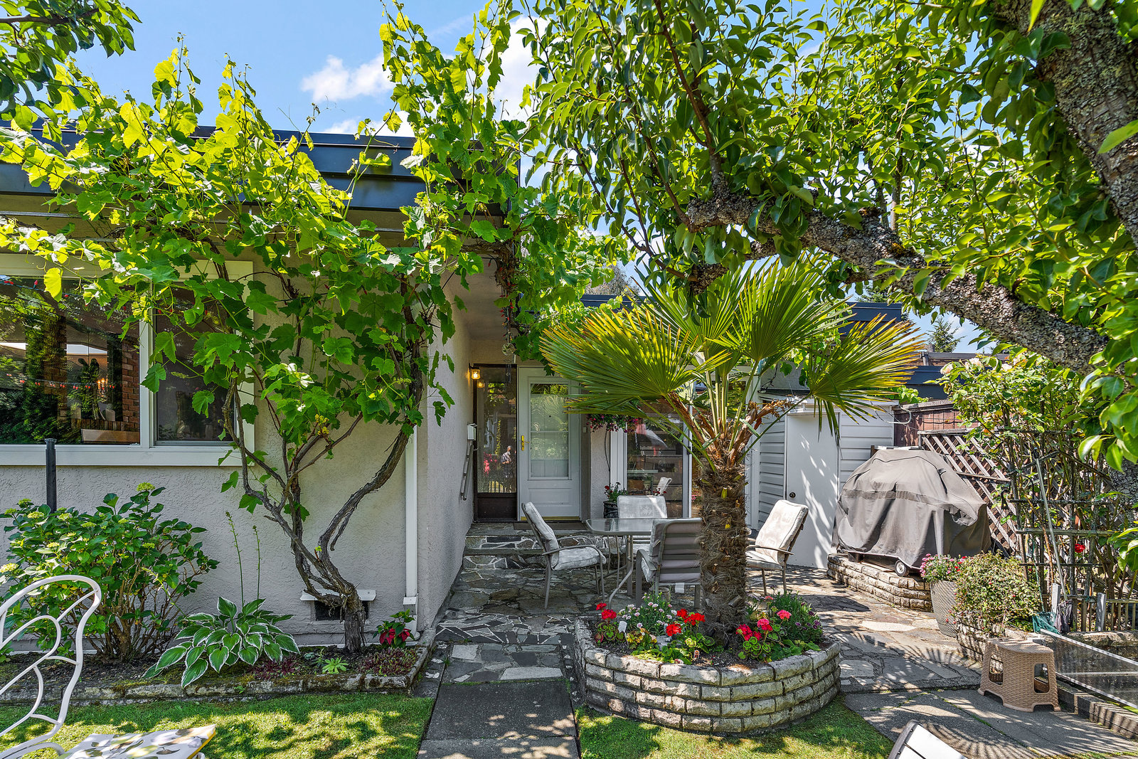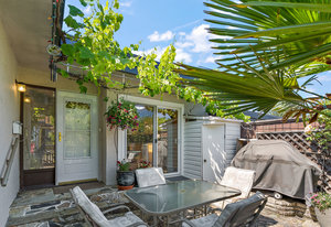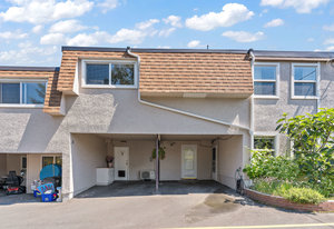 Welcome home to this well maintained 4 bedroom 3 bathroom townhome with a stunning garden oasis! This fabulous home features a new kitchen, tons of storage, and lots of space for kids to play. The open concept main level boasts a spacious living room with wood burning fireplace which is open to the dining room with skylight for added light. They are both open to the new kitchen (with skylight!) which features walk out access to your private garden oasis. Upstairs you'll find the primary bedroom with convenient 2 pc ensuite and 2 more spacious bedrooms with a 4 pc bath to share. Downstairs you'll find a bonus 4th bedroom with its own 3 pc bathroom and ample crawl space storage. Located steps to the Gorge, schools, buses and Tillicum Mall. 2 car carport with extra storage connected. Well managed self run strata! Check out the media link for more photos, virtual tour, floor plans and neighbourhood video.