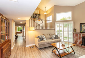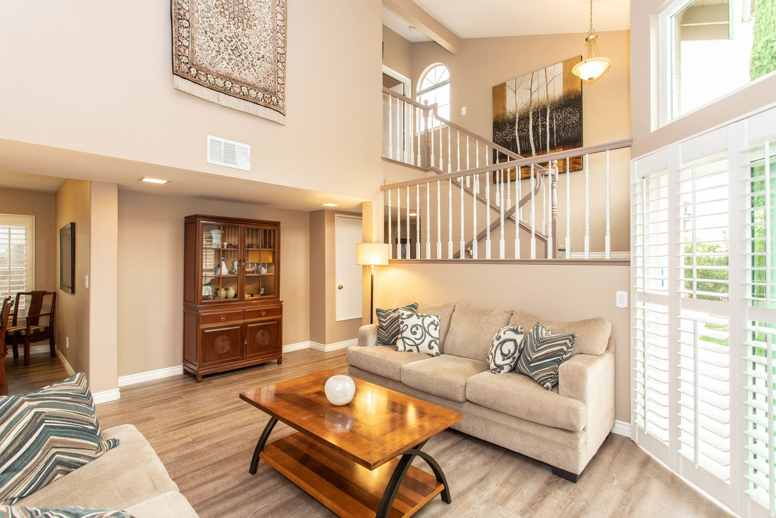 This is your opportunity to own a beautiful 4 bedroom home in Temecula less than a mile from the Temecula Wine Country! Three of the bedrooms are downstairs. With a large bathroom with double sinks, bathtub and shower! There are 2 family room areas! A formal dinning room! Dinning room, kitchen and one of the secondary bedrooms all share a private atrium view! Huge master suite with vaulted ceilings! This gorgeous home has been cosmetically remodeled from top to bottom in 2017. New flooring, new ceiling fans, new base boards, new carpet upstairs, new sliders, new faucets Beautiful Cambria quartz counter tops and white cabinets in the kitchen and bathrooms. Backyard has fruit trees and tons of privacy! This sought after community has parks, green belts and several common areas! Close to shopping, restaurants and wineries! Walking distance to schools. Hurry before its too late!!