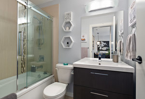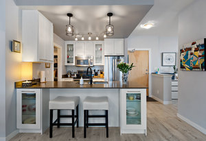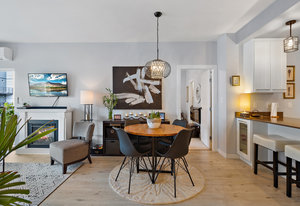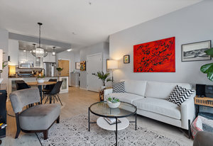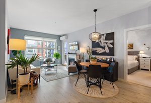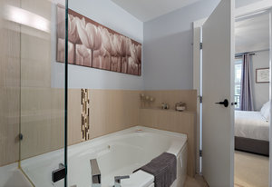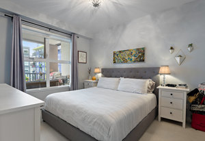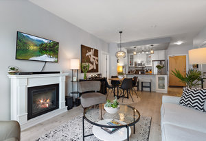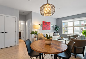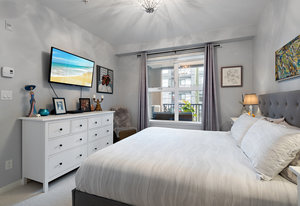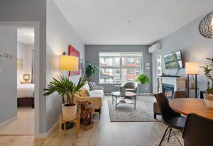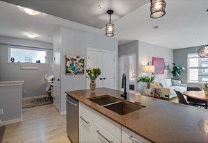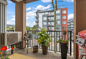 Welcome home to Utopia! This sought-after, corner 2 bedroom plus den/office with 2 bathroom configuration is one of the buildings' most desirable. This remarkable home offers 9' ceilings, air conditioning, custom light fixtures, wide-plank laminate flooring, light-filtering blinds, stainless steel appliances, large walk-in pantry, in-suite laundry, quartz countertops and a generous patio for entertaining. The primary bedroom features a walk-in closet with 5 piece ensuite bathroom including separate shower, soaker tub & double vanity. The 2nd bedroom is on the opposite side of the home and has an adjacent 4 piece bathroom which is also great when guests visit! 1 parking stall and storage locker included, BBQ's allowed, no rental restrictions and no weight restrictions for pets! Located in the vibrant heart of Langford & within walking distance to schools, shopping, dining, entertainment and Langford Lake. Don't delay, book your showing today!