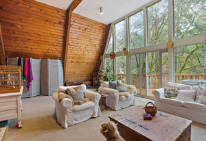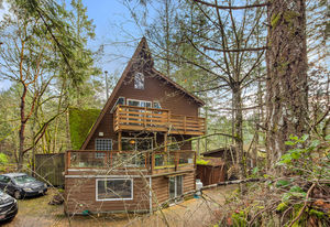 Don't miss this unique and rare property in the Highlands on 27,000+ sq ft lot! This incredible property features a main house with 3 beds and 2 baths, a newly renovated basement suite with 1 bed and 1 bath PLUS a separate cottage with 2 beds and 1 bath, a workshop and lots of parking. The 1970-built house features incredible architecture with an A-frame style structure, beautiful exposed 3 story-high vaulted ceilings and beams, large windows, stone fireplace and expansive decks, all nestled amongst deciduous trees for privacy. The spacious basement suite has full height ceilings, large windows and its own laundry. The separate cottage is cozy yet spacious with vaulted ceilings, full kitchen, open concept living/dining room, 2 large bedrooms, a full bath, office area, its own laundry and private deck. Close to lakes and walking trails, this home is the perfect private oasis just out of the City! Don't miss the virtual 3D Tour and neighbourhood video.