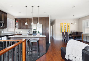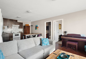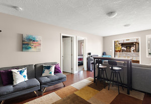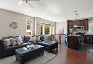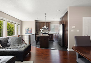 Welcome home to this fabulous 4 bed 3 bath home with 1 bed suite in Happy Valley. Upstairs you'll enjoy the open concept main living space with laminate flooring, gas F/P and garden-filled views, dedicated dining area and well-appointed kitchen with Italian stone tiles & plenty of cabinetry, S/S appliances & island seating. The spacious primary bedroom features walk in closet & 5 pc ensuite with double sinks, full tub & shower. The 2nd bed is bright with a large closet & enjoys its own 4 piece bath. Downstairs you'll find a 3rd bedroom plus 556 sq ft self-contained 1 bedroom suite with 4 pc bath and laminate hardwood throughout. Separate laundry for each unit. Keep the suite for the in-laws or convert back to single family living. Fully fenced low maintenance yard, attached single car garage and lots of driveway parking. Wonderful family neighbourhood steps to Happy Valley Elementary, baseball fields and parks. Click the media to view the neighbourhood video and 3D virtual tour.