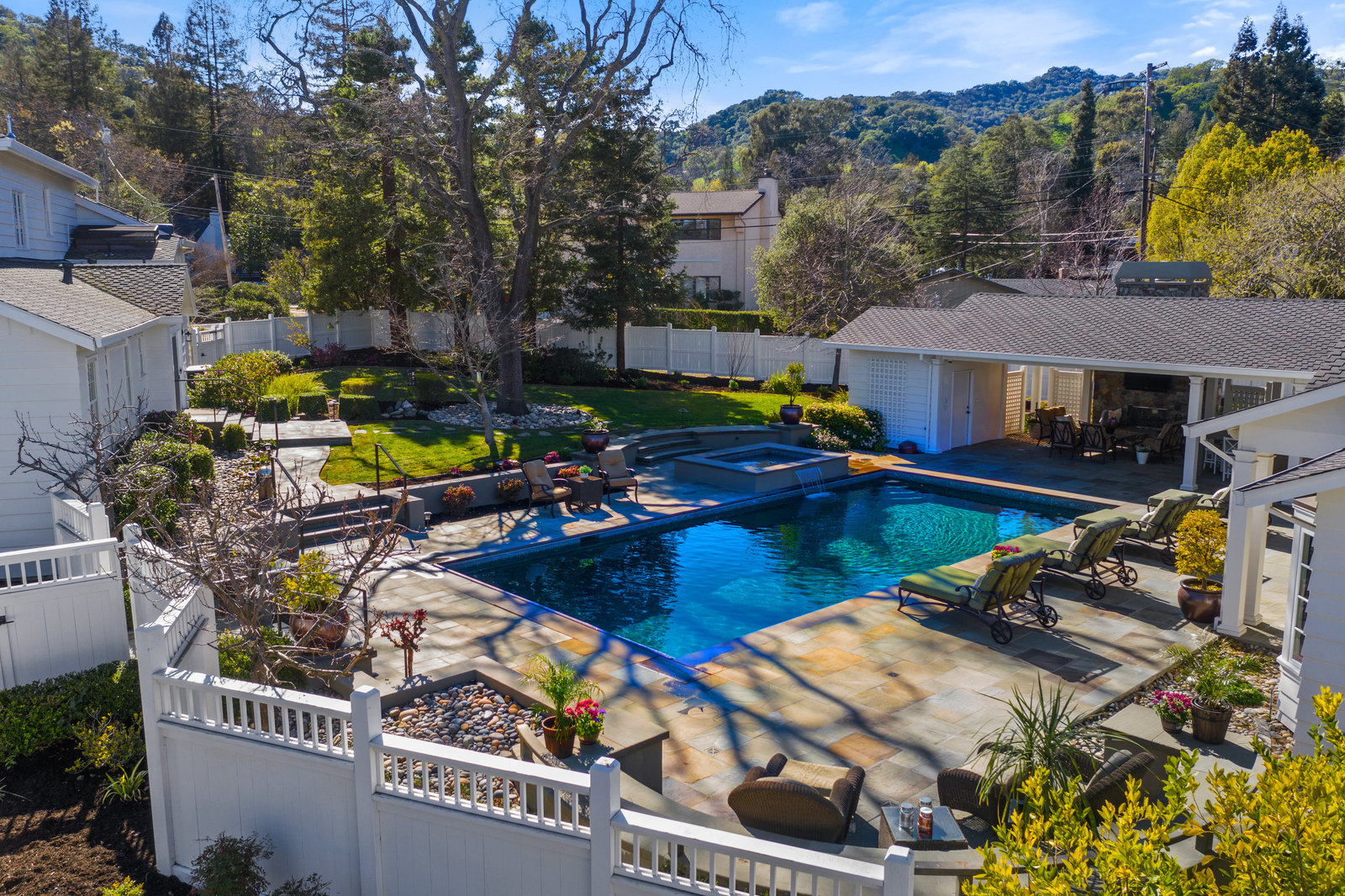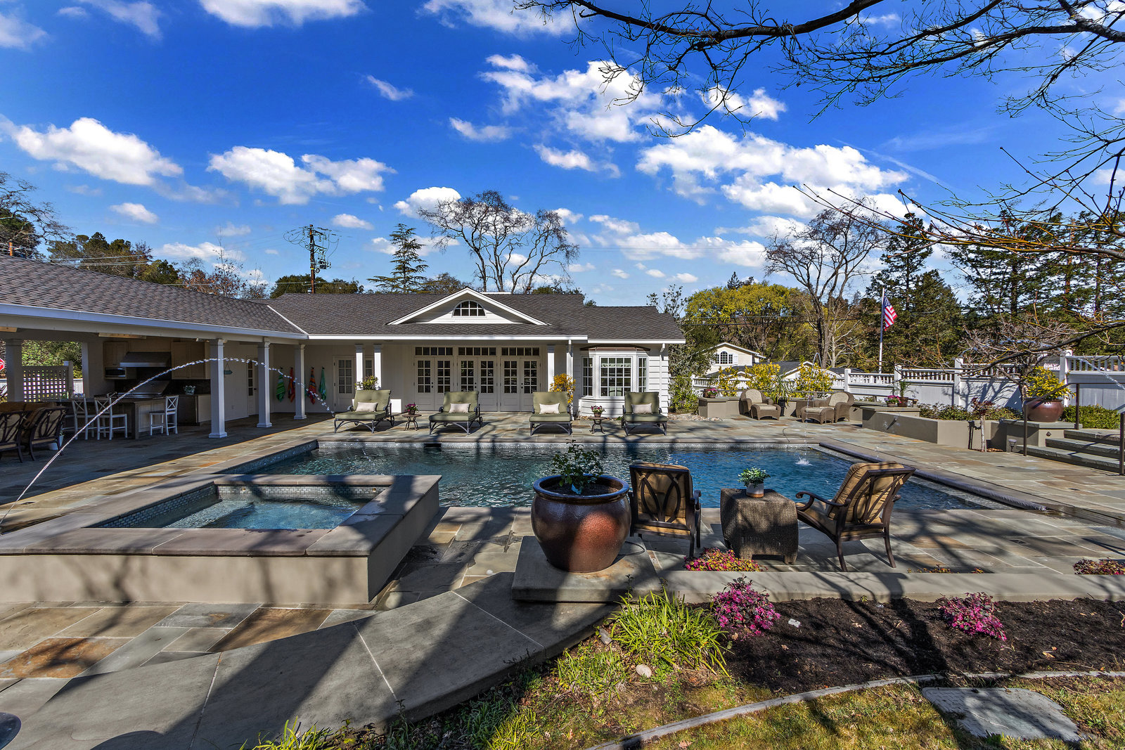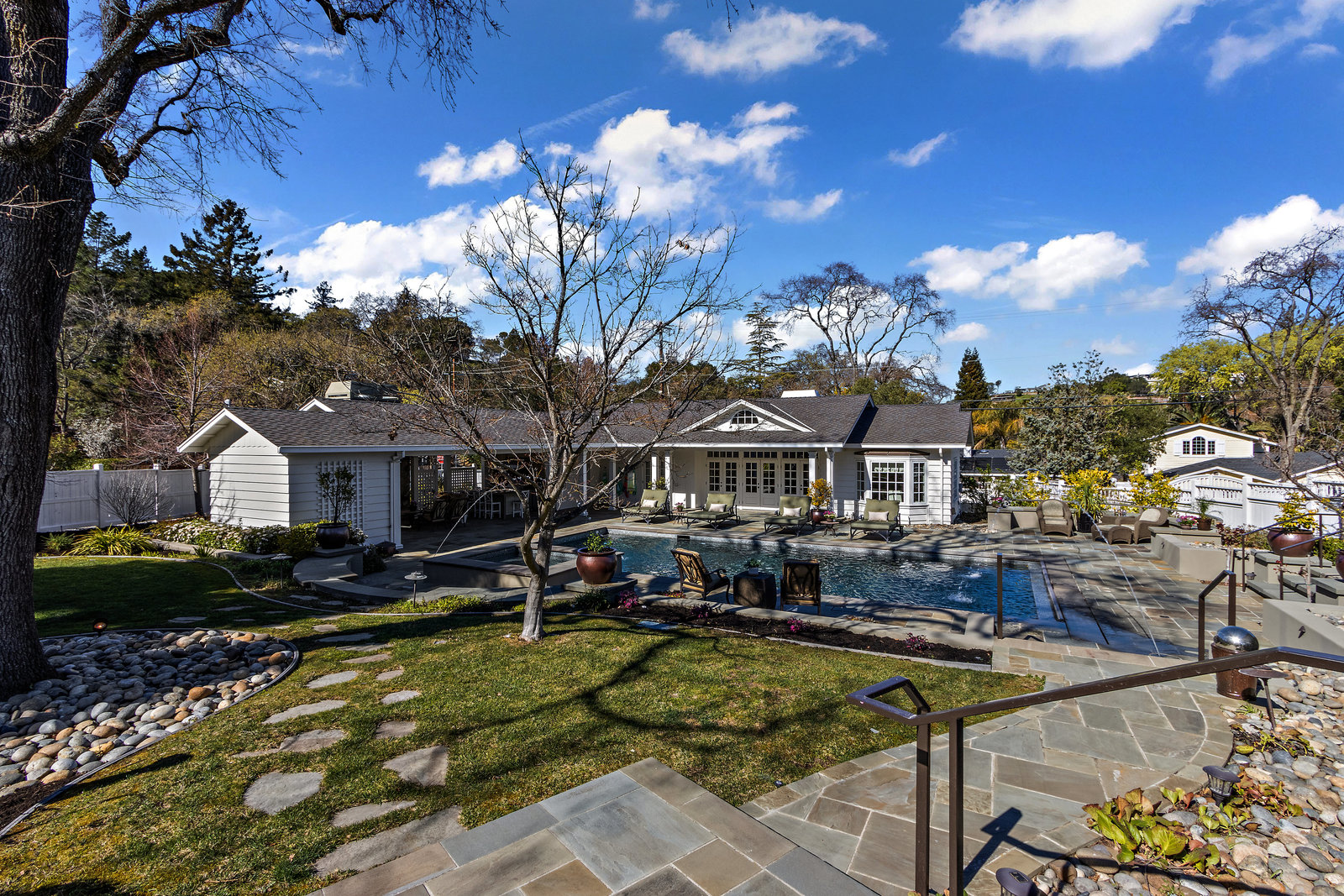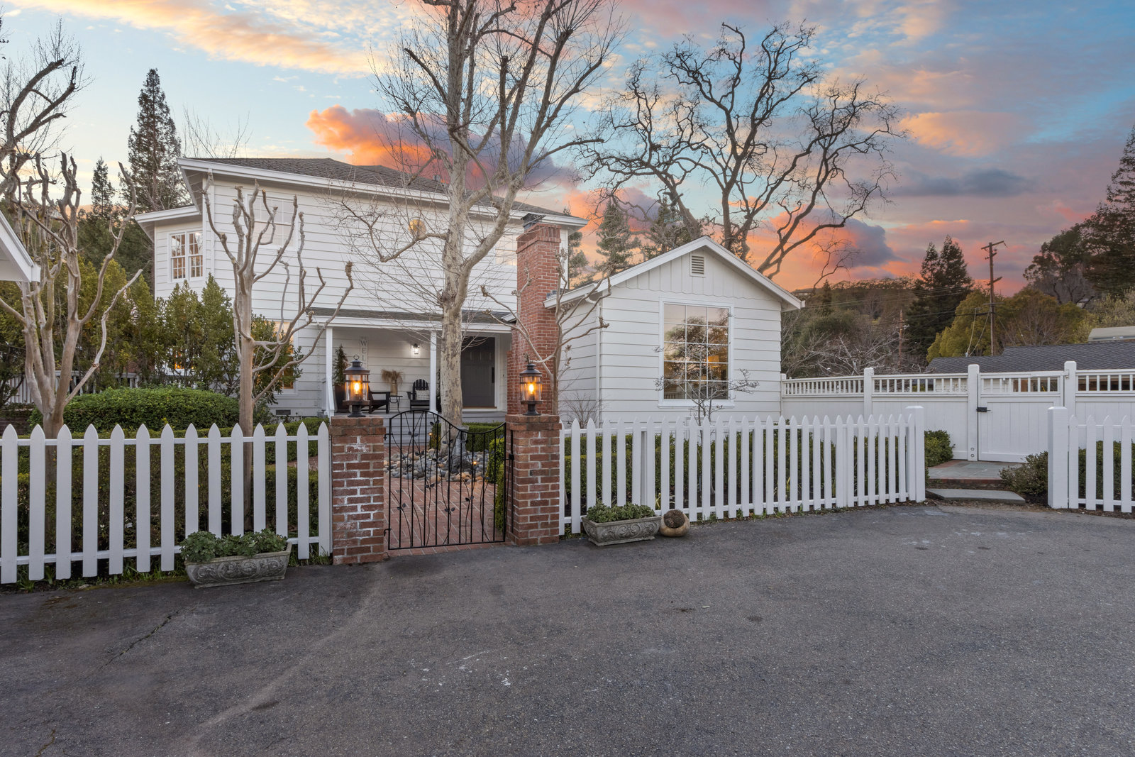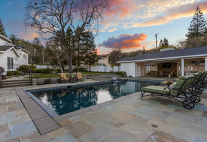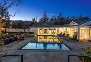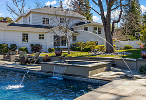 Extraordinary circa-1935 farmhouse estate situated on a picturesque flat .83 acre lot. This gated and fenced luxury compound is surrounded by breathtaking gardens, an outdoor oasis with pool and incredible outdoor kitchen and living room. This home has been meticulously updated throughout - a perfect fusion of modern features with old world charm and craftsmanship. Highlights include the 3726 sq ft main house, a sprawling pool pavilion outfitted with every imaginable amenity, and a 2 bed 1433 sq ft self-contained guest house. An incredible and rare opportunity in Lamorinda!