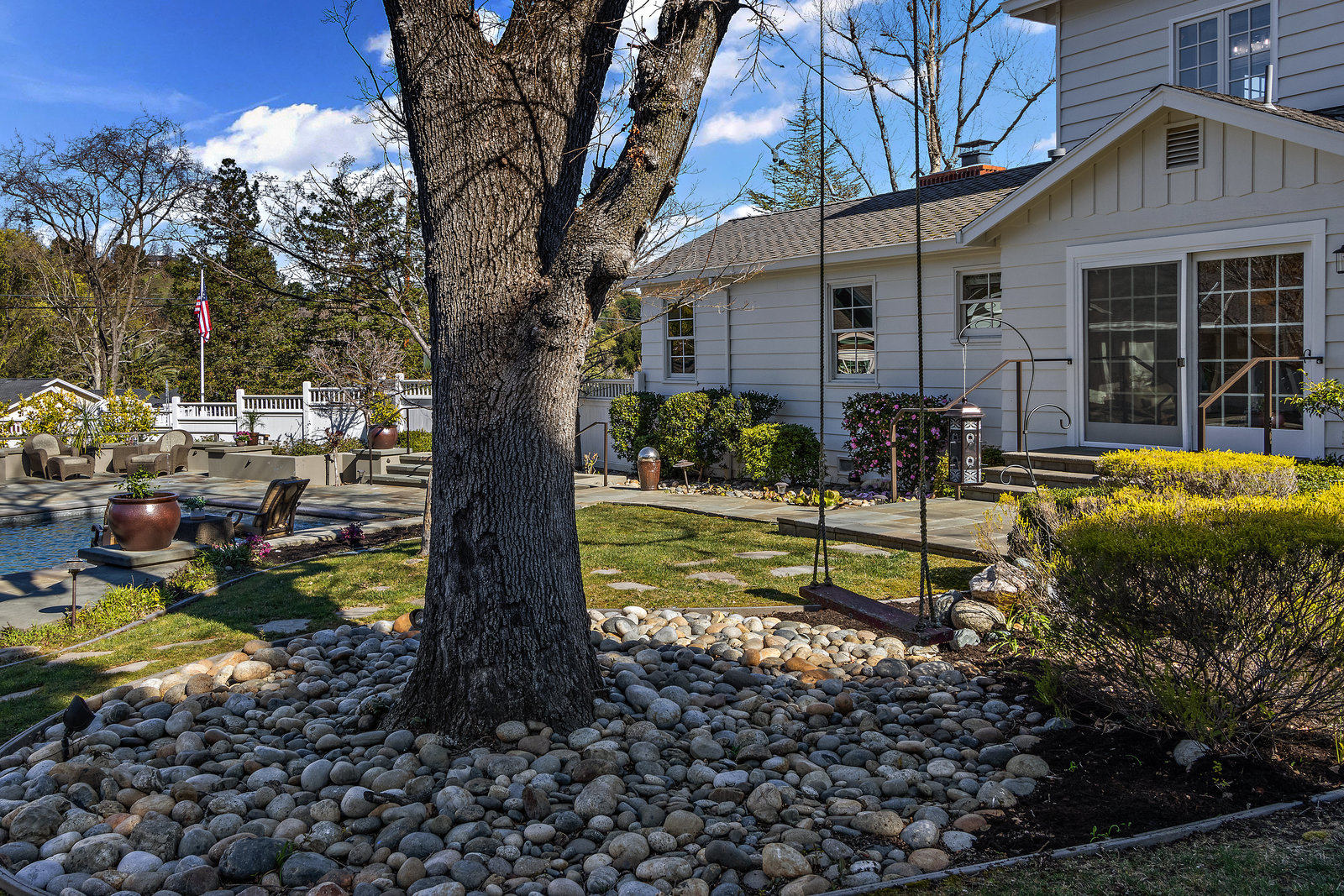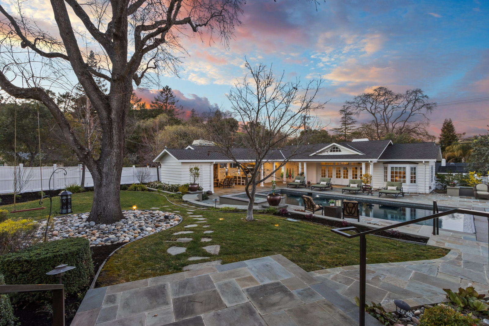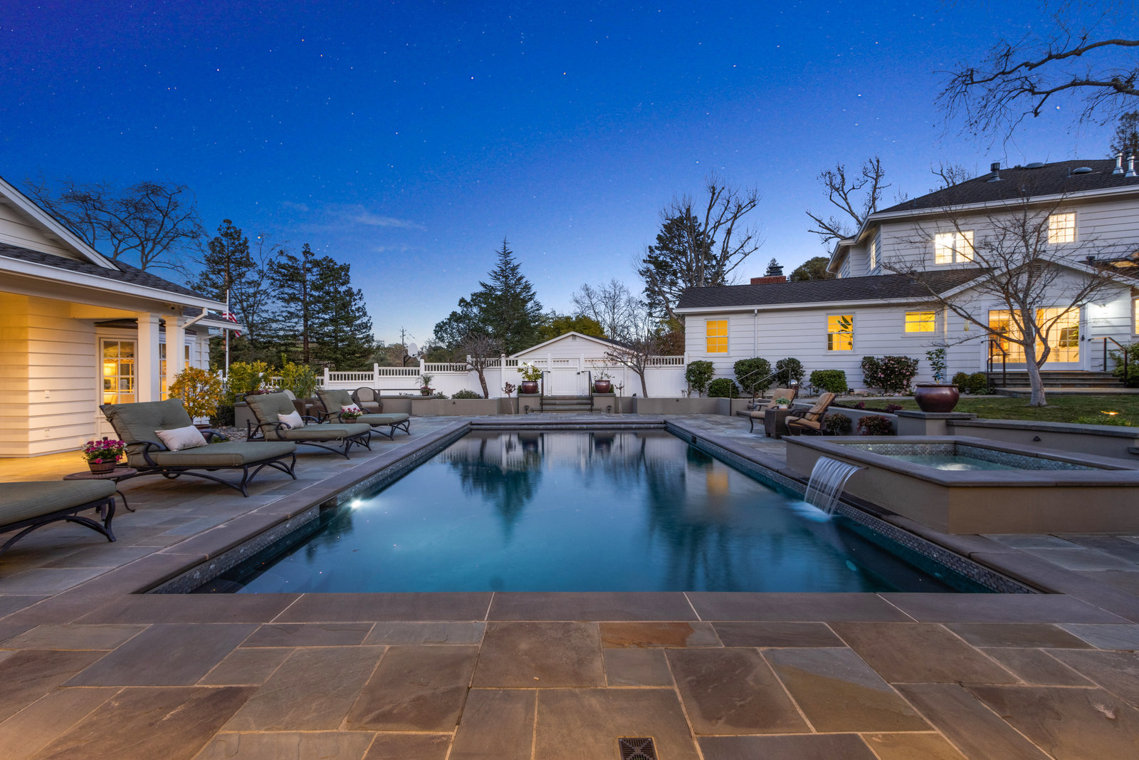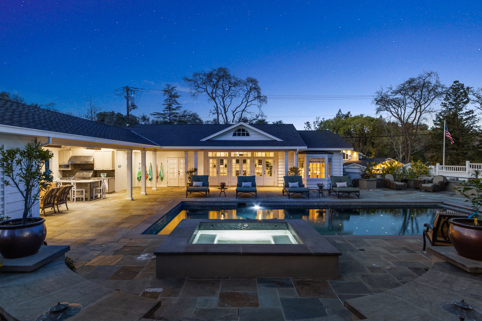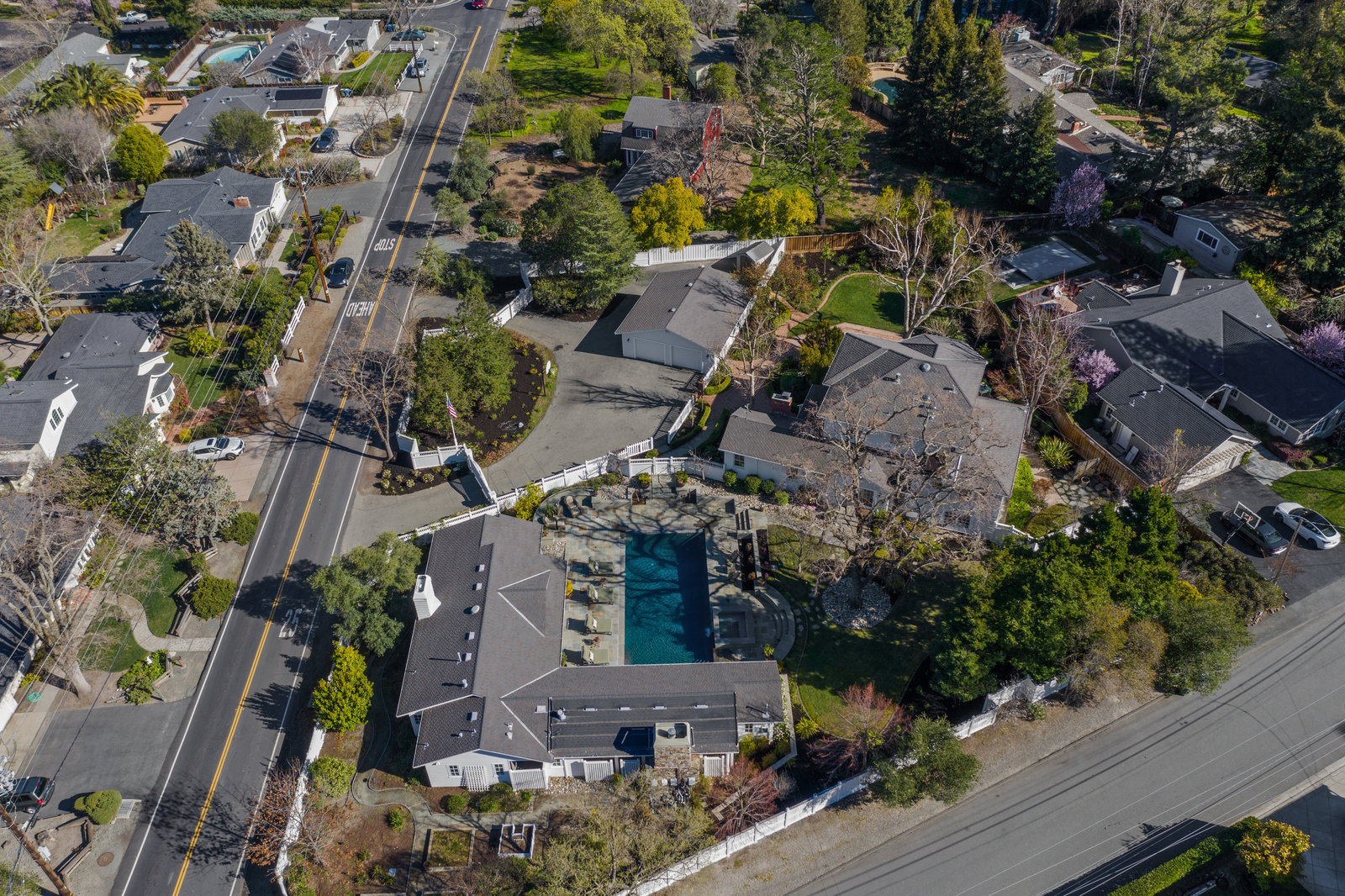 Extraordinary circa-1935 farmhouse estate situated on a picturesque flat .83 acre lot. This gated and fenced luxury compound is surrounded by breathtaking gardens, an outdoor oasis with pool and incredible outdoor kitchen and living room. This home has been meticulously updated throughout - a perfect fusion of modern features with old world charm and craftsmanship. Highlights include the 3726 sq ft main house, a sprawling pool pavilion outfitted with every imaginable amenity, and a 2 bed 1433 sq ft self-contained guest house. An incredible and rare opportunity in Lamorinda!