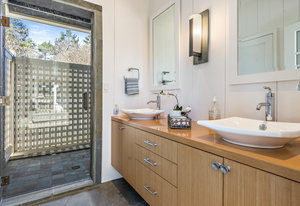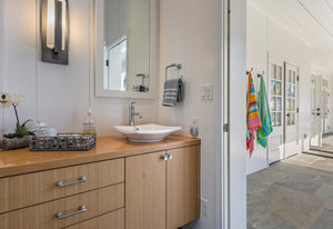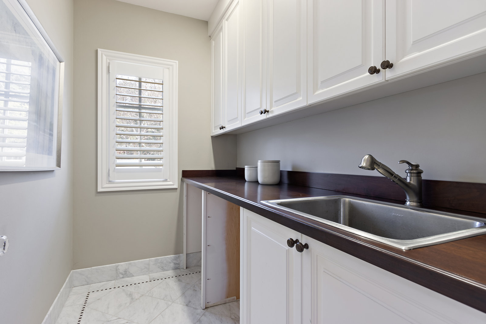 This guest house suite is complete with its own laundry room with sink and built in cabinetry.
