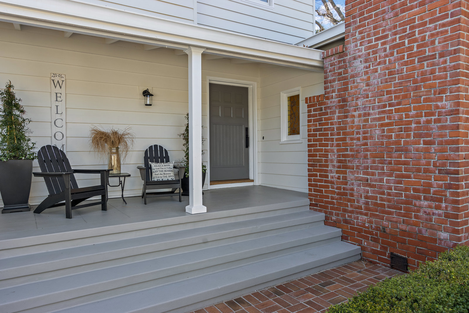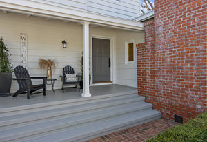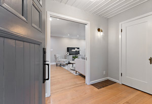Behind the white picket fence is the farmhouse with its large covered porch. Enter into the formal entry with the original doorbell and guest closet.