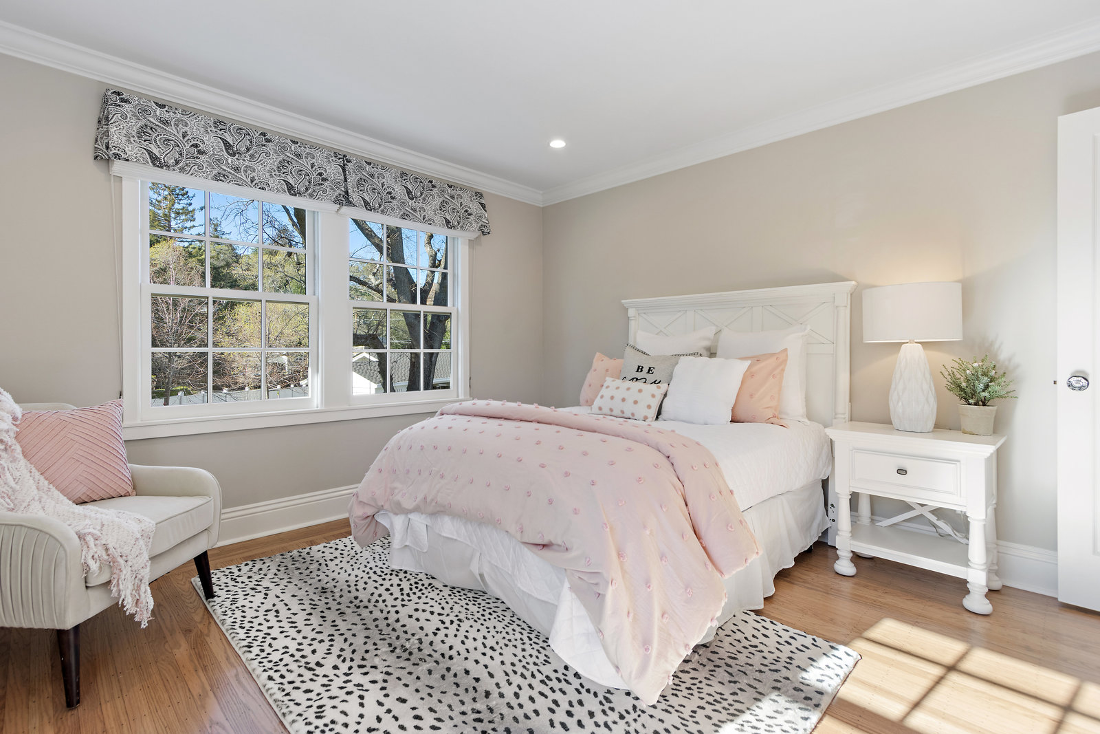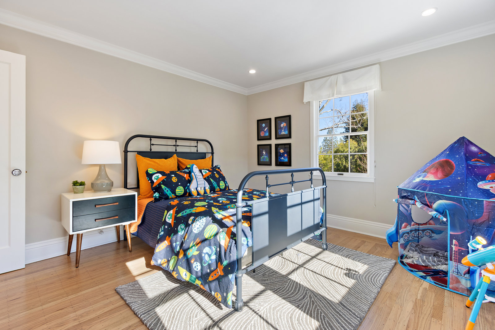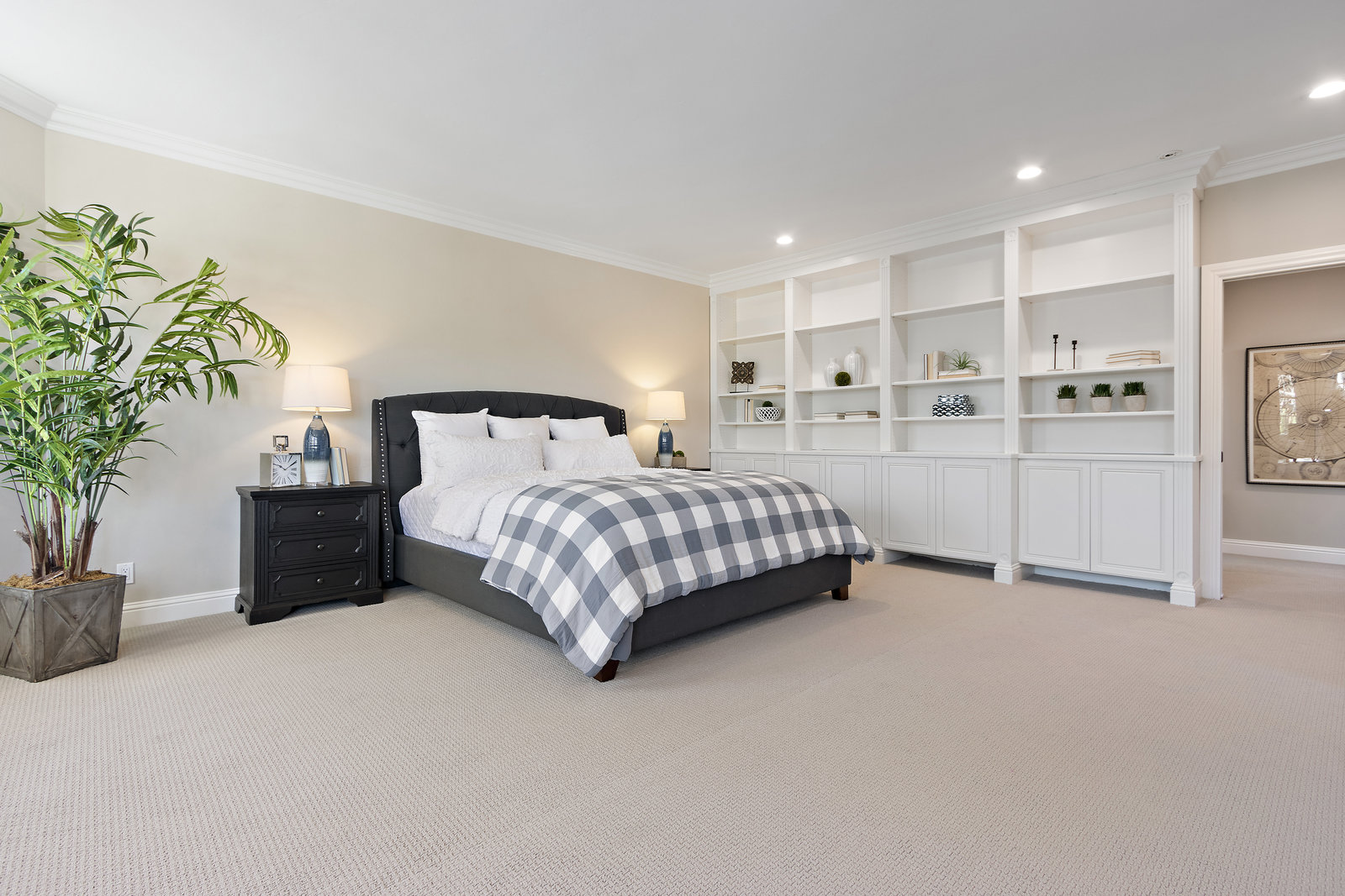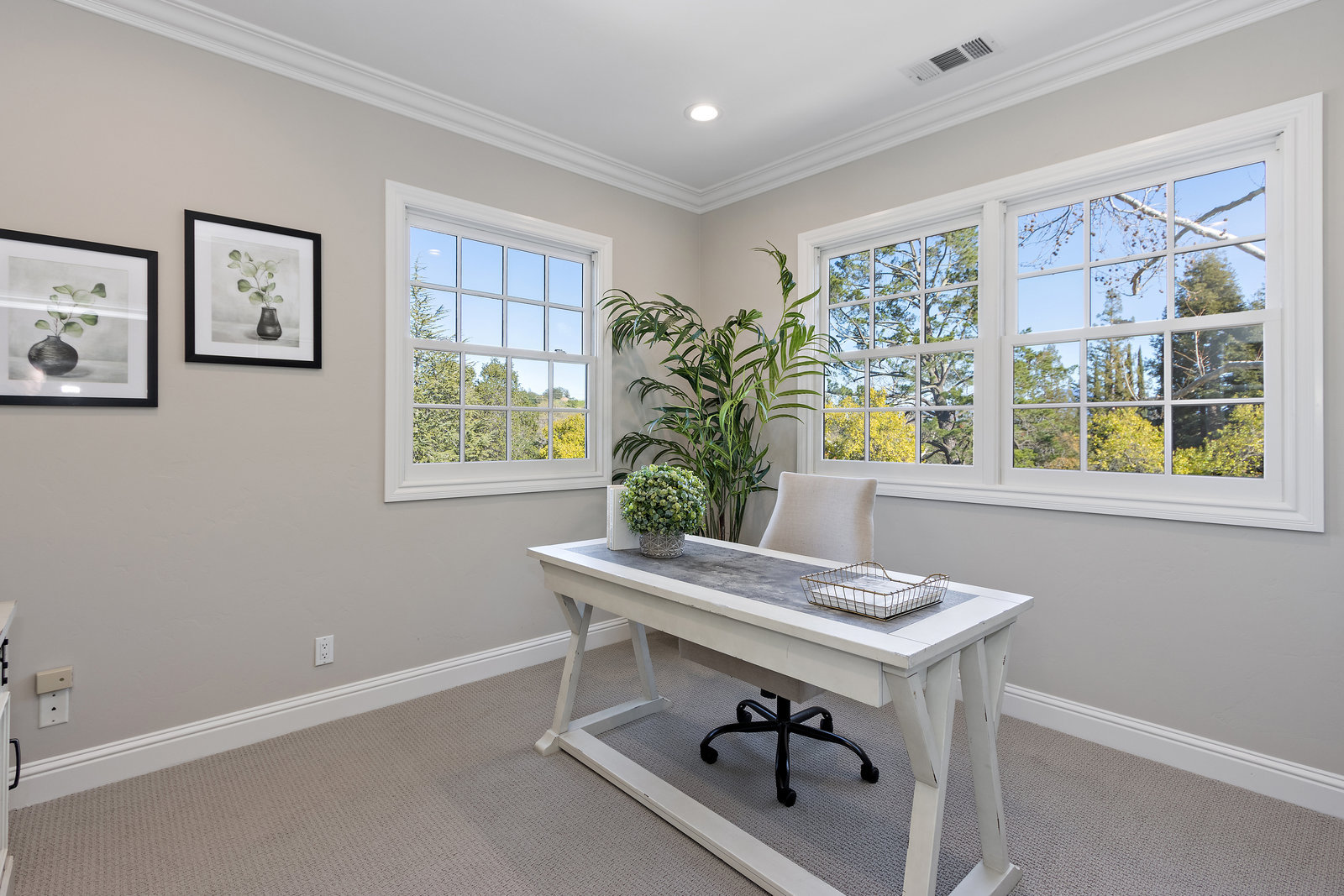 This floor also has the fourth bedroom/bonus room with built-in cabinetry, and new carpeting. It is ensuite with shower with dual shower heads, tile counters and floor, and a skylight bringing in natural light.