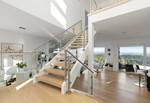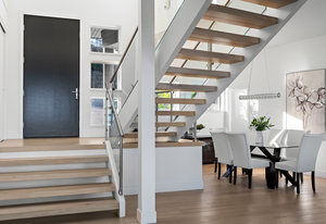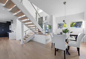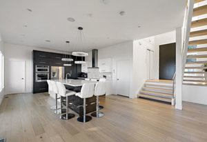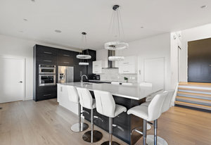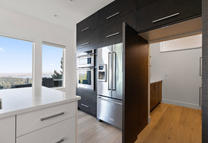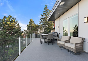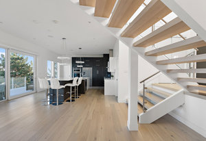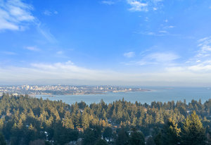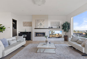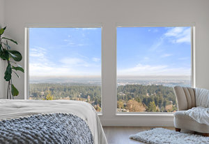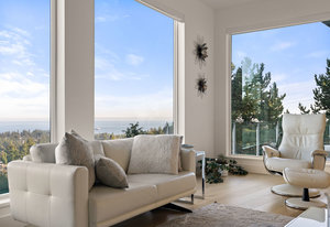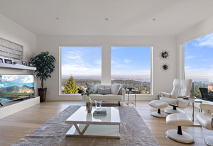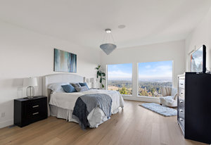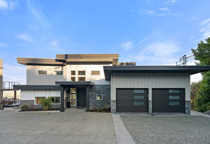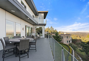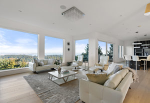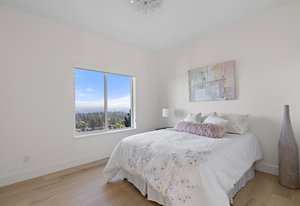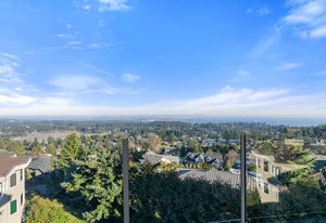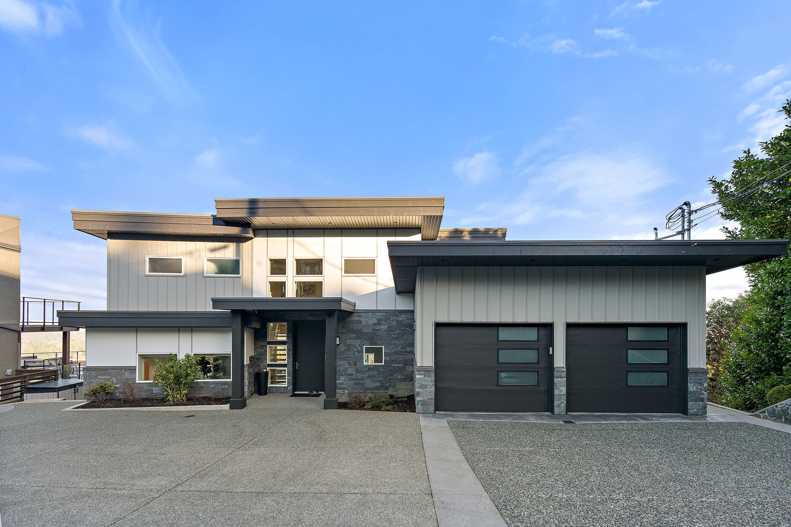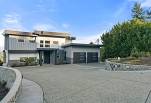Perched atop Triangle Mtn, this stunning modern home was built to maximize the ocean, mountain & city views. Custom designed & built by award winning Villamar Construction & featured in a magazine. This home is the height of luxury with a spacious, open concept main, floating staircase & oversized windows with spectacular views from every room. Gourmet kitchen features oversized island & hidden butler pantry with fridge-freezer & two wine fridges! Upstairs is a gorgeous primary suite with walk-in closet, heated floors in the spa-like ensuite & private balcony with ocean views all the way to Mt Baker. Additional two beds, full bath & laundry complete the top floor. Hidden storage, high end light fixtures, built-in sound system & washed oak floors are just some of the details that make this home perfection! Bonus room on lower floor with outdoor access plus a one bed legal suite with ocean view. This home is located in a peaceful neighborhood & is just a 5 minute walk to Lookout Lake!