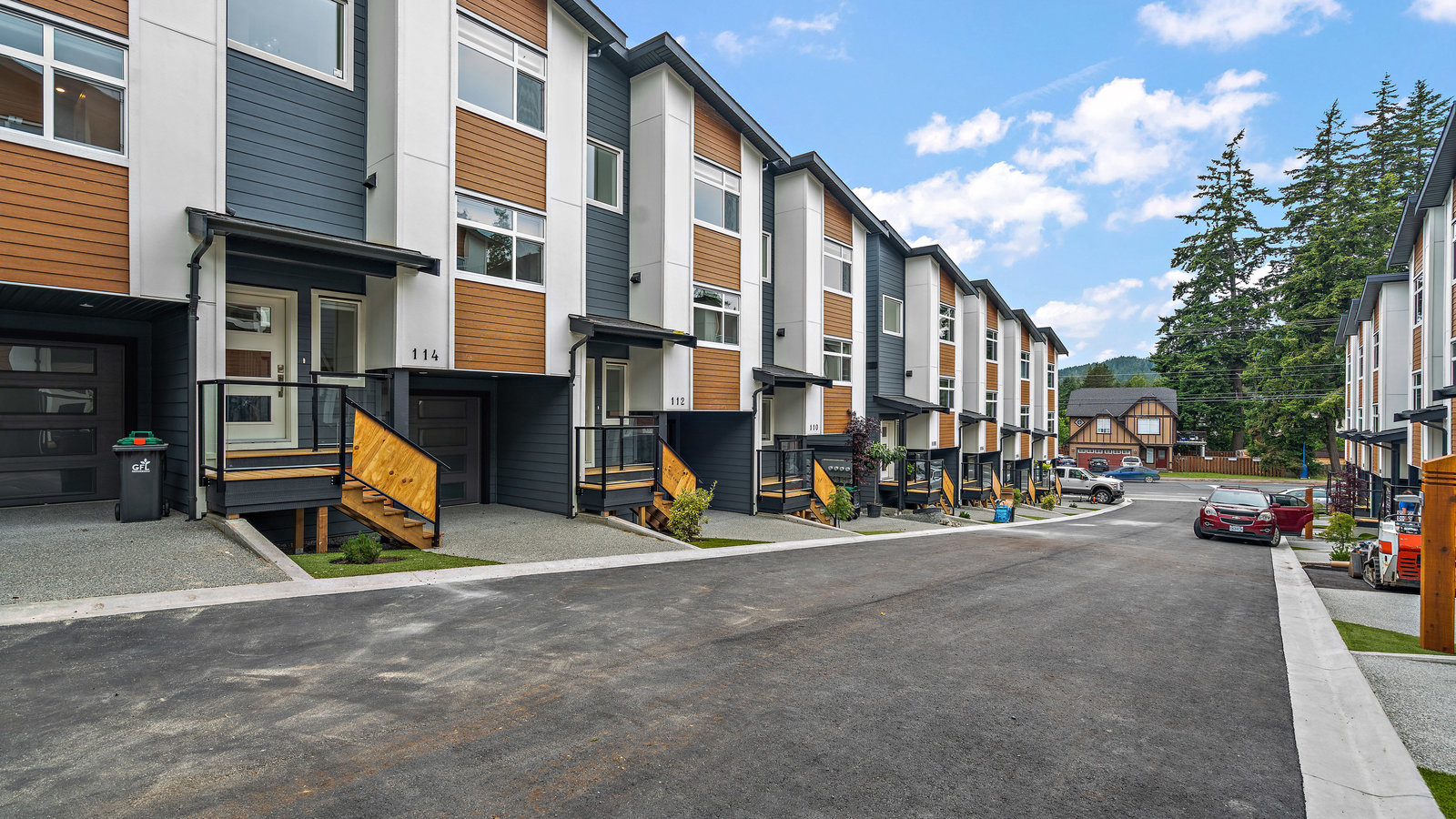 Brand new and never before occupied! Take immediate possession of this Modern & Stylish 2 bed+den townhome! You will be impressed by the thoughtful design & bright open layout of these homes! Featuring wide stairwells, 9' ceilings on main & large windows. Enjoy the gourmet custom designed kitchen's contemporary cabinetry, quartz counters, tile backsplash, under-cabinet lighting & full SS appliance pkg incl fridge w ice/water. Other features include a modern 50" linear electric FP in the living room, powder room on main w/ quartz countertops, & stylish wide plank wood laminate floors on the main floor. Primary bedroom up boasts a stunning vaulted ceiling & 4pc ensuite including a floating vanity w motion lights below. Energy efficient gas fired wall furnace & on demand hot water heating will save on the energy bills! Featuring a small, landscaped rear yard (accessible from both the lower and main level) that includes privacy fencing, irrigation, & low maintenance artificial turf!