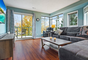 Very bright and pet friendly corner unit with tons of windows. This home is a spacious two bedroom and two bath condo centrally located on a bus route, close to both theatres, rec. centre and is across the street from Tillicum Mall. You don’t get this kind of space with any of the newer buildings. A well laid out kitchen with double sink, window, dishwasher, an updated stove, large fridge and a full bank of cabinet drawers for ease of cooking. Master has a full ensuite with tub/shower, large closet, and a ton of square footage to accommodate all of your furniture. Second bedroom is conveniently separated and has a second full bathroom.