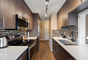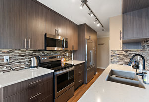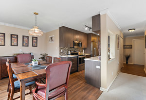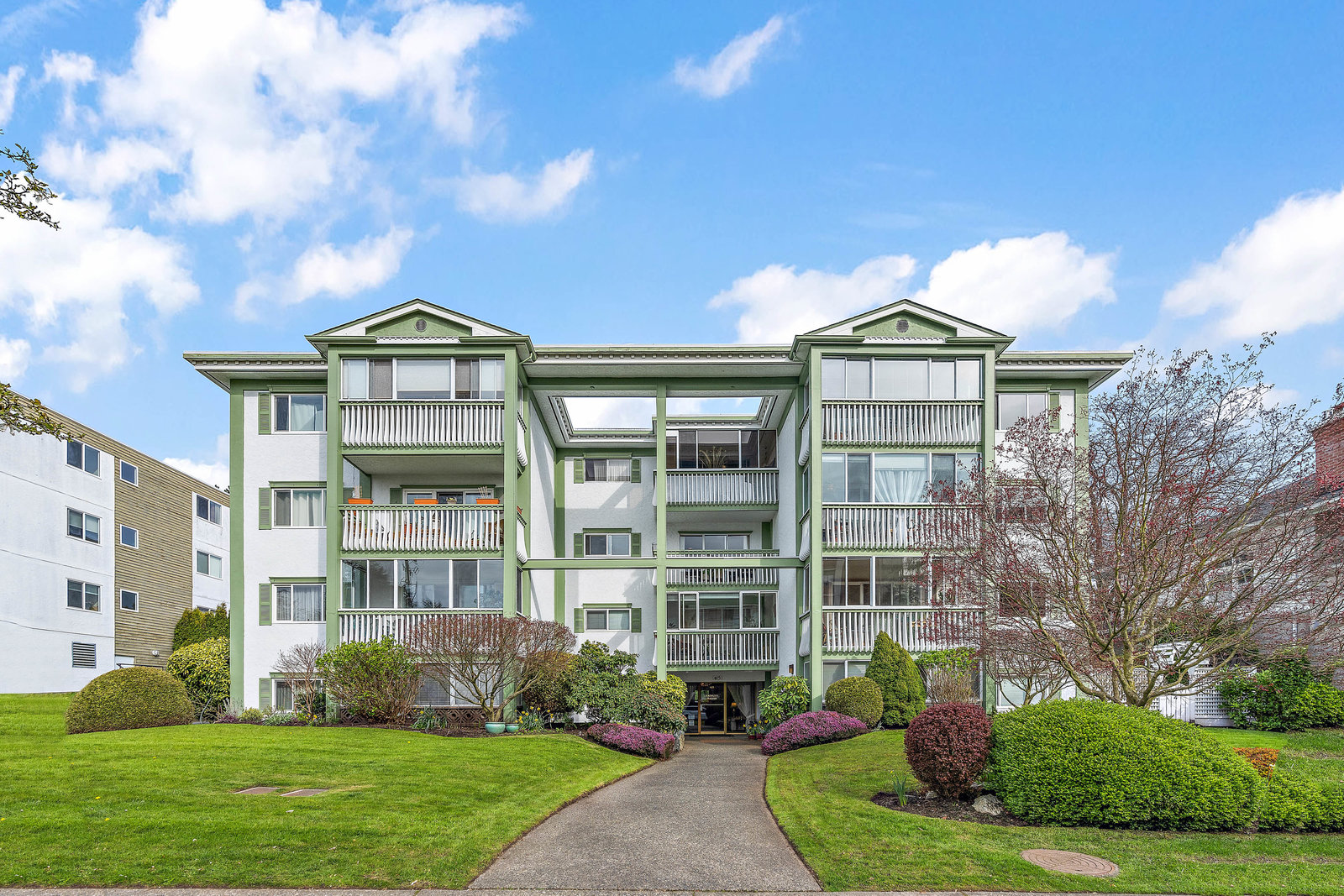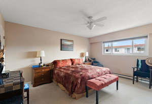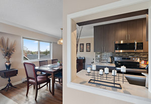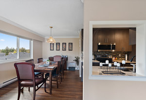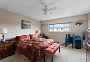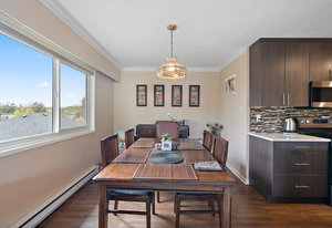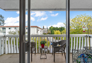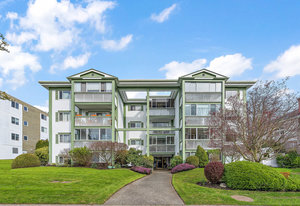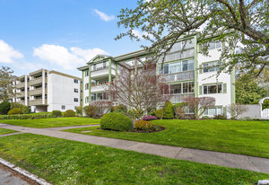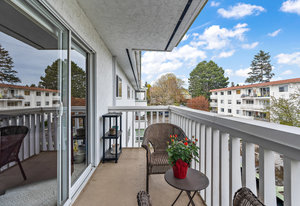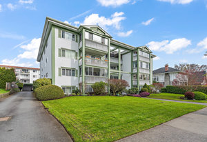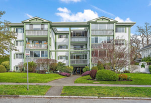 Bright & spacious 2 Bdrm 2 Bath top floor corner unit in the heart of Fairfield! Come & discover this beautifully updated condo just steps to Cook Street Village & within a 10 minute walk of Dallas Rd waterfront, Beacon Hill Park & downtown Victoria! There are many updates to this spacious 1100 sq/f home including a recently renovated kitchen with quartz counters & under cabinet lighting, cork flooring & updated bathrooms. You'll love the spacious primary bdrm with 2-pce ensuite & double closets, 13'x10' second bedroom, & large living and dining areas. Unit is on the quiet side of the building & features a sunny enclosed balcony with mountain views. Private in-suite laundry, 2 separate storage rooms & covered parking included. This is a quiet, well-maintained & professionally managed adult-only building consisting of just 18 owner-occupied suites. Don't miss your opportunity to live in one of Victoria's best neighbourhoods! Check out the media link for video, floor plan & virtual tour.