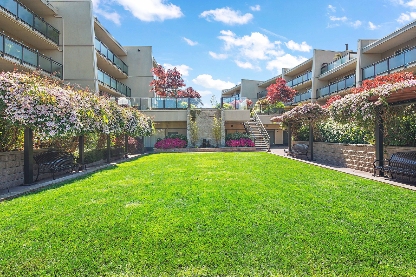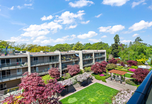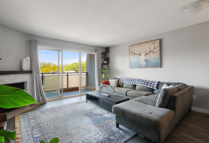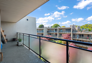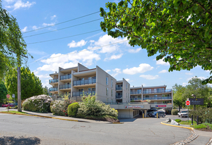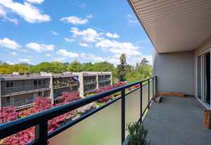 Welcome to Stadacona Centre at the Oak Bay Junction with alluring urban central location offering 719 sq. ft. of immaculate living space. This sunlit 1 bed 1 bath presents updates throughout, hard surfaced flooring, extensive storage space, updated 4 pce bath, open living space w/ charming wood burning fireplace, eat-in kitchen island, & stainless-steel appliances in the gourmet kitchen. Positioned up on the top floor this unit acquires serene views from the private balcony peering over the lush, landscaped courtyard. This meticulously cared for strata is well run w/ unrestricted rentals making a great option for turnkey occupancy or investment. Enjoy the amenities of the swimming pool, fitness centre, or find yourself a short stroll to downtown or the endearing shops, café’s, & bakeries of Oak Bay. This remarkable location is just above the delightful Shine Café, Tartan Toque, other dining options, transit, liquor stores, & direct access to the lovely Stadacona Park w/ tennis courts.