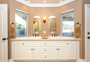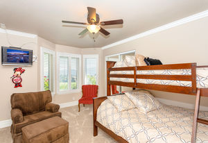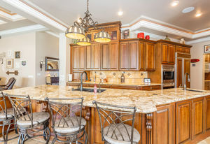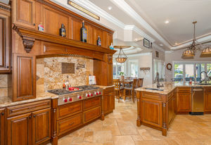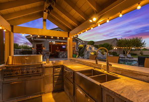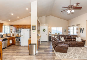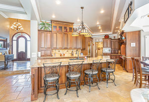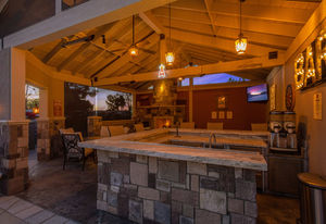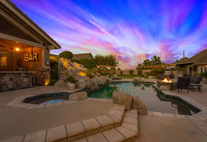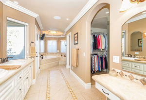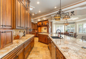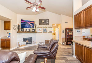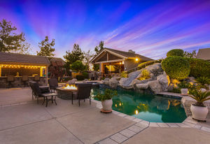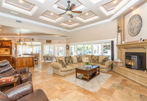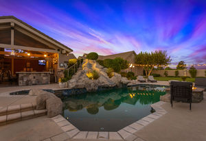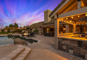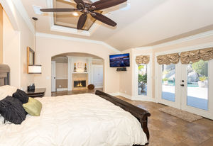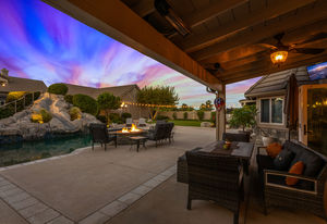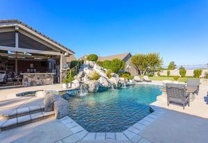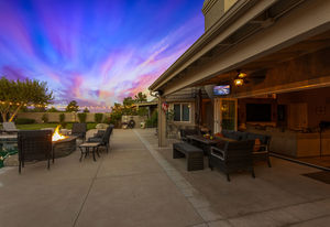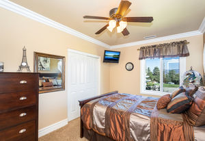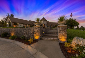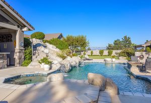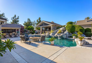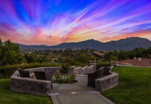 A one of a kind property, with STUNNING views, there is nothing like it. Main home is 4, 360 sq/ft with 5 beds and 4.5 baths. The detached guest house with separate entrance is 2, 080 sq/ft. The lower portion of the guest house is used as an office with several office spaces, a kitchenette, bathroom, bedroom, and laundry. The upstairs has a kitchen, dining area, family room, 2 bedrooms, and one bathroom. There is a three car garage attached to the main residence, and a 2, 368 sq/ft detached RV garage. There are two spots for an RV, one is 47' in length with FULL hookups. In addition to the RV spaces, there are two other oversized garage spaces, sink, and laundry facility, with an attached multi-use room. The main home features two huge built in refrigerators, double ovens, 2 microwaves, hidden pop-up electrical outlets in the counter, an oversized walk-in pantry, and an 80 TV. The 15' bi-fold doors lead out to an entertainers dream yard. The remodeled pool and spa with rock feature and slide is surrounded by a large grass area, a 120sq/ft covered BBQ island, and a 625sq/ft outdoor living space with fireplace. In addition to the garage hook-ups, there are two other RV hook-up sites on the property. This stunning home also features grape vines, and fruit trees (pomegranate, apple, citrus, fig, peach, pear, and plum). You do not have to worry about a huge electric bill, as the home has 80 solar panels (24kw) installed for approx $230/month. A MUST SEE!! Furnishings negotiable.