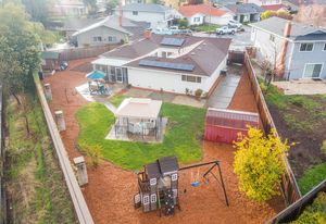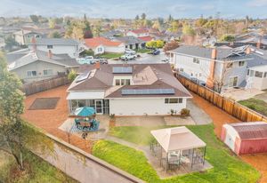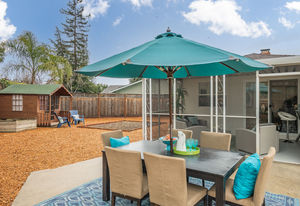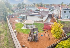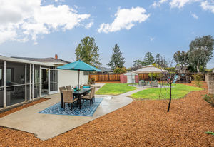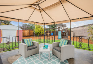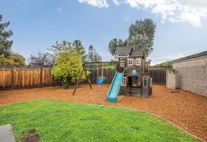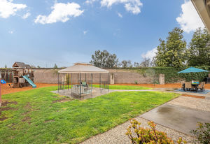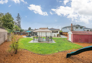Fabulous backyard space is a mecca for entertaining and fun. It includes a playhouse, play structure, a large patio with a gazebo ideal for an outdoor dining or living room, Lush landscape and garden beds include raised beds, and a large storage garden shed are additional amenities in this generously-sized backyard.