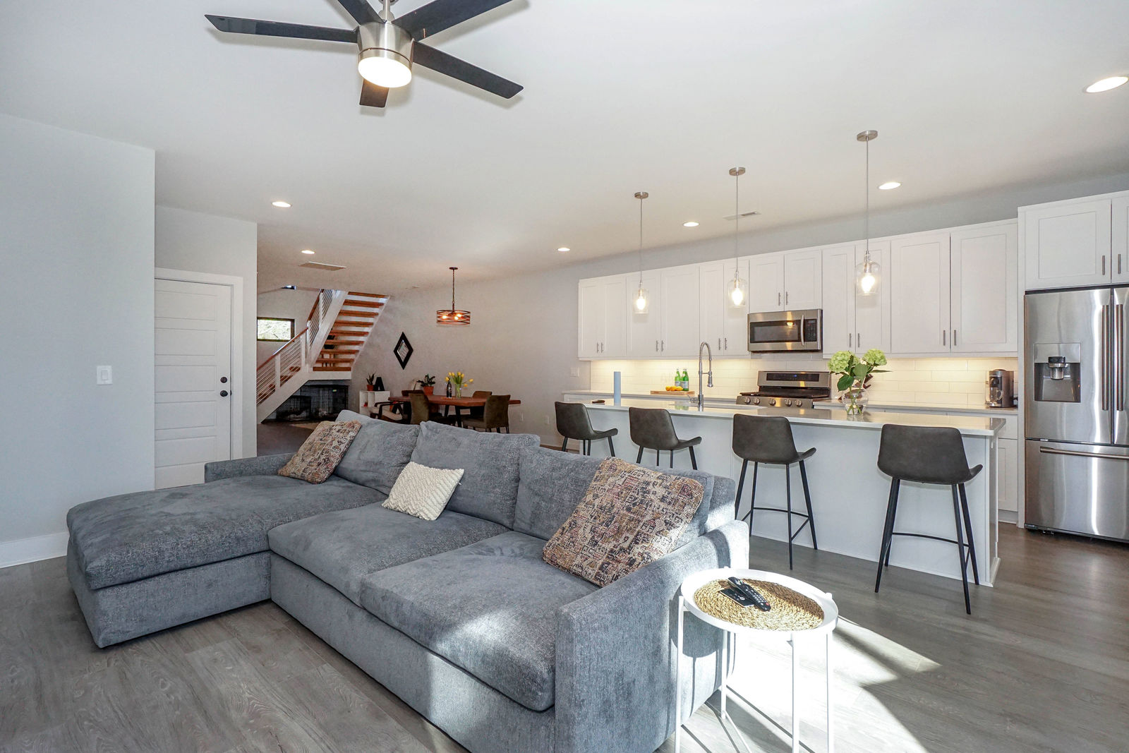 Nestled in Seversville, This END UNIT MODERN townhome boasts all the LUXURY and conveniences of UPTOWN with a surprisingly quiet surrounding. All Details were carefully planned out to create a Clean, Open and Light-filled space. The main level holds an ENTERTAINERS DREAM w/ WIDE OPEN and BRIGHT floor plan = living room, dining and Kitchen featuring MODERN FINISHES + FLOATING STAIRS, SS Kitchen appliances & much more! Enjoy your large back patio in your very own FENCED IN YARD. Plenty of private open area to create your own backyard living space. Home has Ring doorbell camera as well as camera in the front above the garage and backyard camera. Krono Swiss Flooring in main living areas and all bedrooms. Large Master Suite w/ WALK IN Closet and automatic room darkening shades. Walkable to Greenway, Blue Blaze, future Gold Line & more. This is Modern Living at its Best.