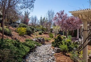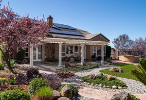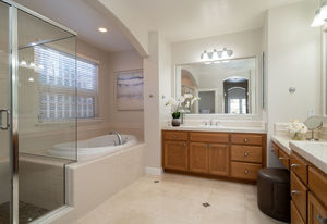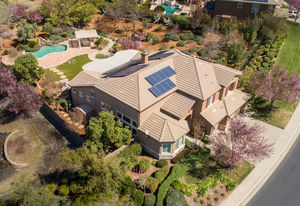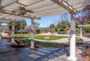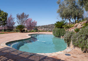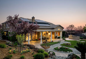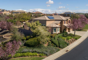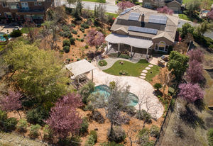Amazing Serrano VIEW home with an enormous 1/2+ acre yard with POOL. This practically perfect 4B/3.5B has a dramatic staircase, romantic DOWNSTAIRS master suite, and a downstairs office perfect for a home-based business. Both the office and upstairs bonus room can easily be converted for a total of 6 bedrooms. Step into the spectacular back yard and leave it all behind. Professionally landscaped with a Premier pool and waterfall, built in BBQ/kitchen, Large covered patio, approximately 60 mature Oak, Elm, fruit and various flowering trees, all with distant views of hills and town lights. Walk to the nearby Mertola Park with BB court and playground. The home also features solar, 3 car garage with built-in cabinets and epoxy floor, GE Monogram professional appliances, expansive HOA maintained front landscaping, Updated Lennox Smart HVAC, and so much more