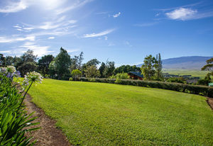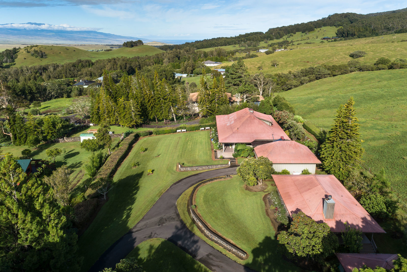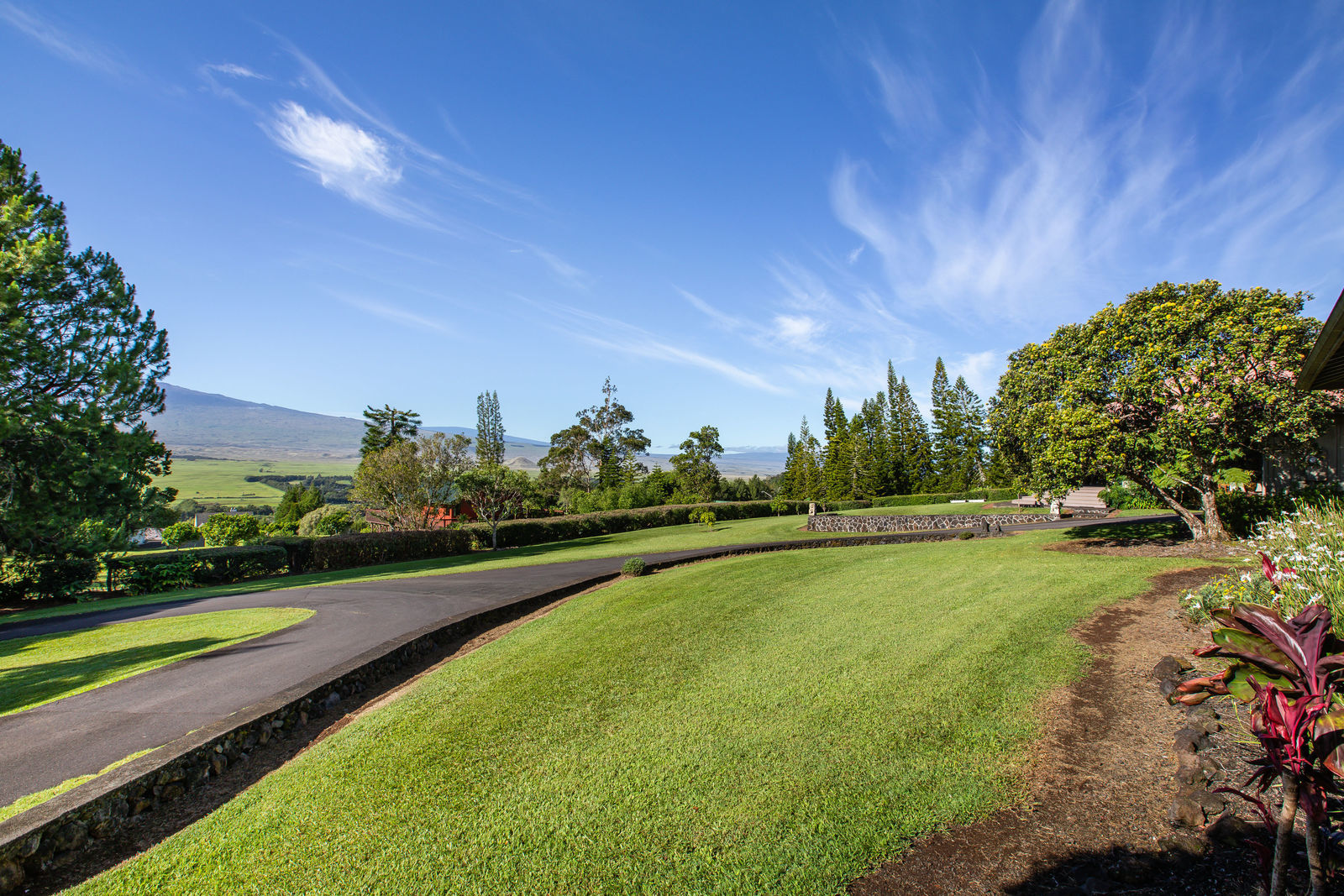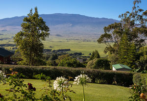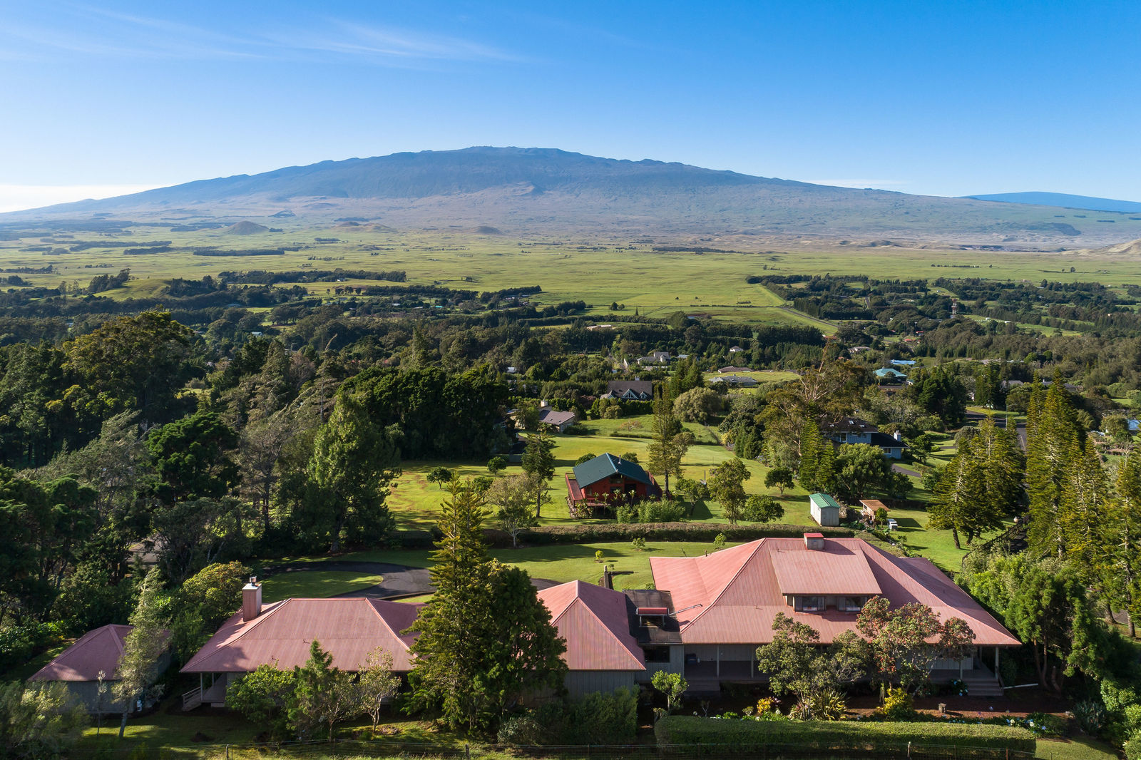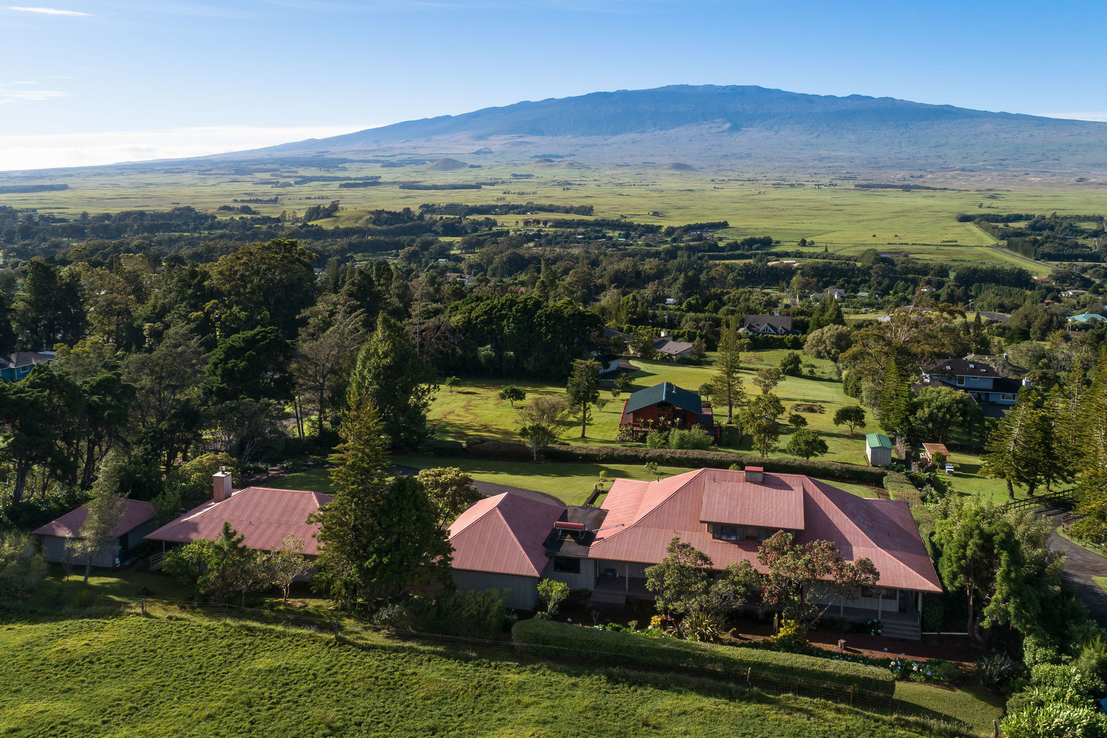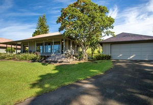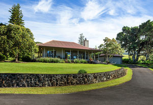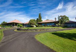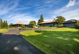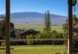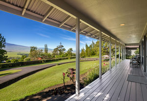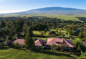 PRIVATE COMPOUND WITH FABULOUS MAUNA KEA VIEWS! Main home plus legal ohana (second home) on 1.2 acres.This property is adjacent to acres and acres of Hawaiian Home Lands pastures and the views from the back of the property are also gorgeous! The main house is 3299 sq. ft. with 3 bdrms., 2 1/2 bths., a den/office which could easily be a 4th bdrm. and two additional framed attic spaces that are 408 sq. ft. each. (Could also be bdrms.) There is also a small sitting room upstairs.The ohana is 864 sq. ft. with 2 bdrms., 1 bth. living room, kitchen and fireplace. This dwelling also has a detached 400 sq. ft. garage.Each home has a covered lanai that surrounds three sides of the house and gives easy access to the beautifully landscaped yard and gardens. Each house also has an enclosed garage with the main garage of 816 sq. ft. being large enough for a workshop if you have an at-home hobby.The floors of the main home are chocolate heart eucalyptus, there is a fireplace between the living room and family room, central heating, a large kitchen for those who love to cook includes an island and also an additional sink in the counter separating the kitchen and dining room. The master bedroom suite is located on the 1st floor. There is also a separate guest 1/2 bath off of the family room.The second house (Ohana) has been used for several years as a rental. The current tenants are on a month to month basis.