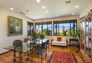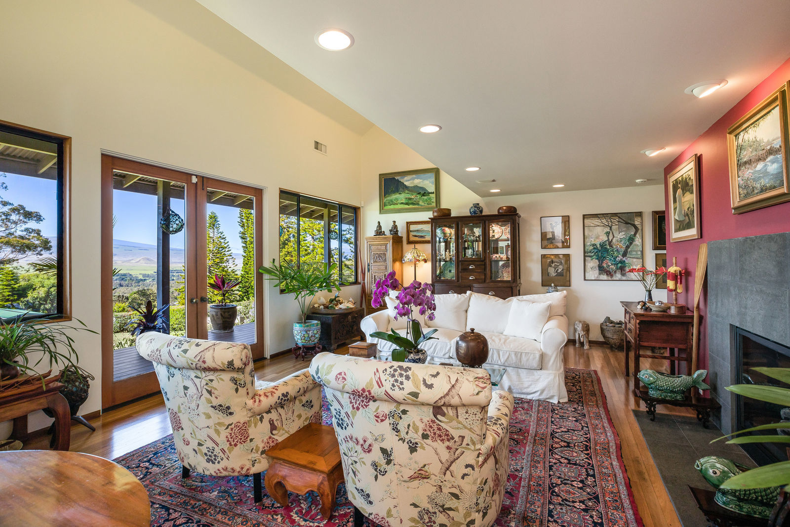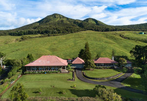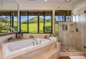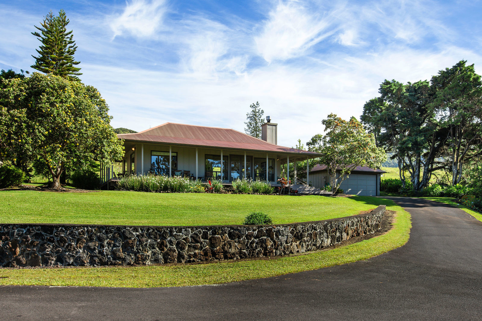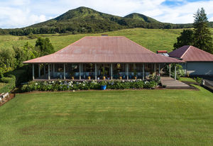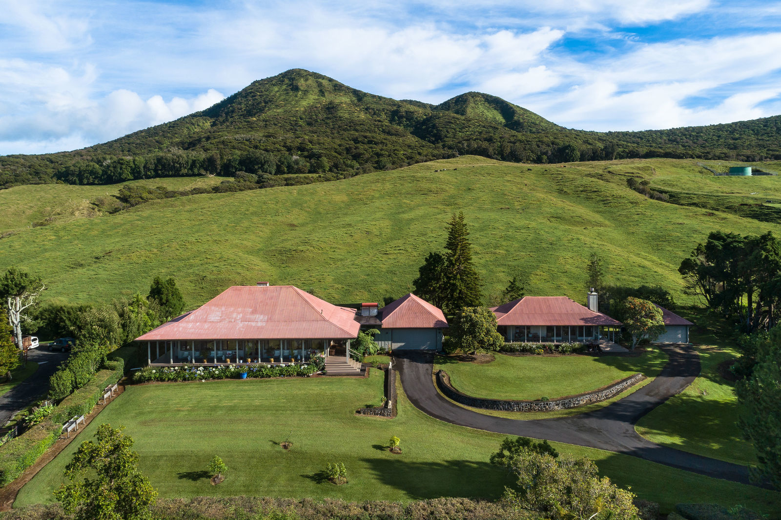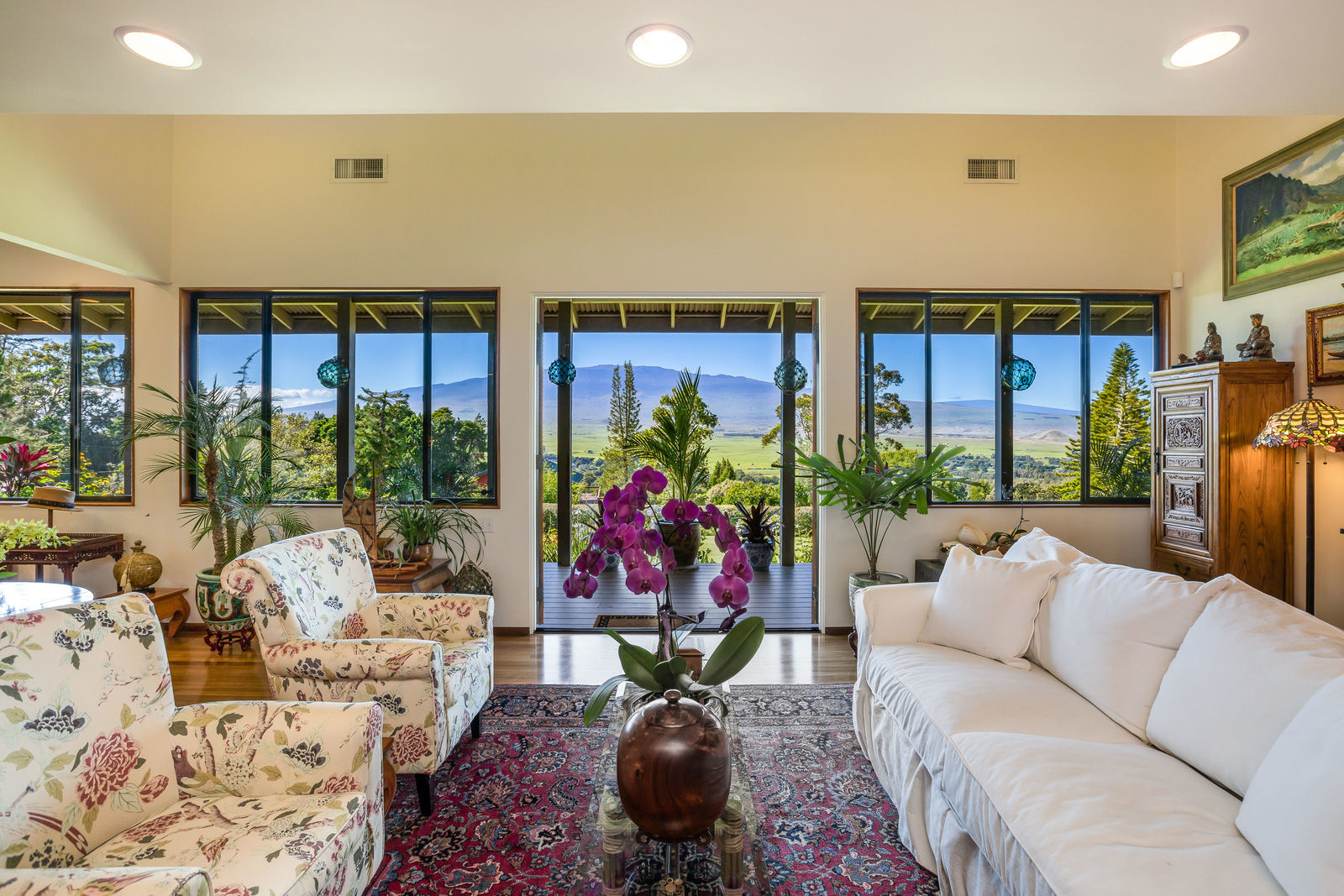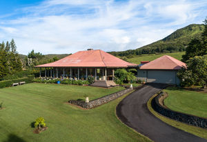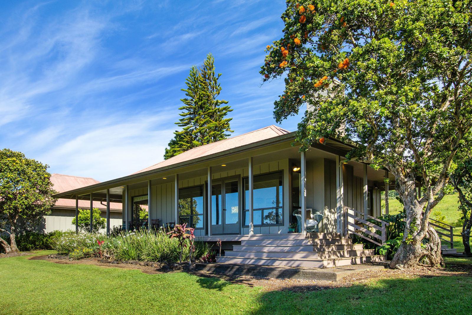 PRIVATE COMPOUND WITH FABULOUS MAUNA KEA VIEWS! Main home plus legal ohana (second home) on 1.2 acres.This property is adjacent to acres and acres of Hawaiian Home Lands pastures and the views from the back of the property are also gorgeous! The main house is 3299 sq. ft. with 3 bdrms., 2 1/2 bths., a den/office which could easily be a 4th bdrm. and two additional framed attic spaces that are 408 sq. ft. each. (Could also be bdrms.) There is also a small sitting room upstairs.The ohana is 864 sq. ft. with 2 bdrms., 1 bth. living room, kitchen and fireplace. This dwelling also has a detached 400 sq. ft. garage.Each home has a covered lanai that surrounds three sides of the house and gives easy access to the beautifully landscaped yard and gardens. Each house also has an enclosed garage with the main garage of 816 sq. ft. being large enough for a workshop if you have an at-home hobby.The floors of the main home are chocolate heart eucalyptus, there is a fireplace between the living room and family room, central heating, a large kitchen for those who love to cook includes an island and also an additional sink in the counter separating the kitchen and dining room. The master bedroom suite is located on the 1st floor. There is also a separate guest 1/2 bath off of the family room.The second house (Ohana) has been used for several years as a rental. The current tenants are on a month to month basis.
