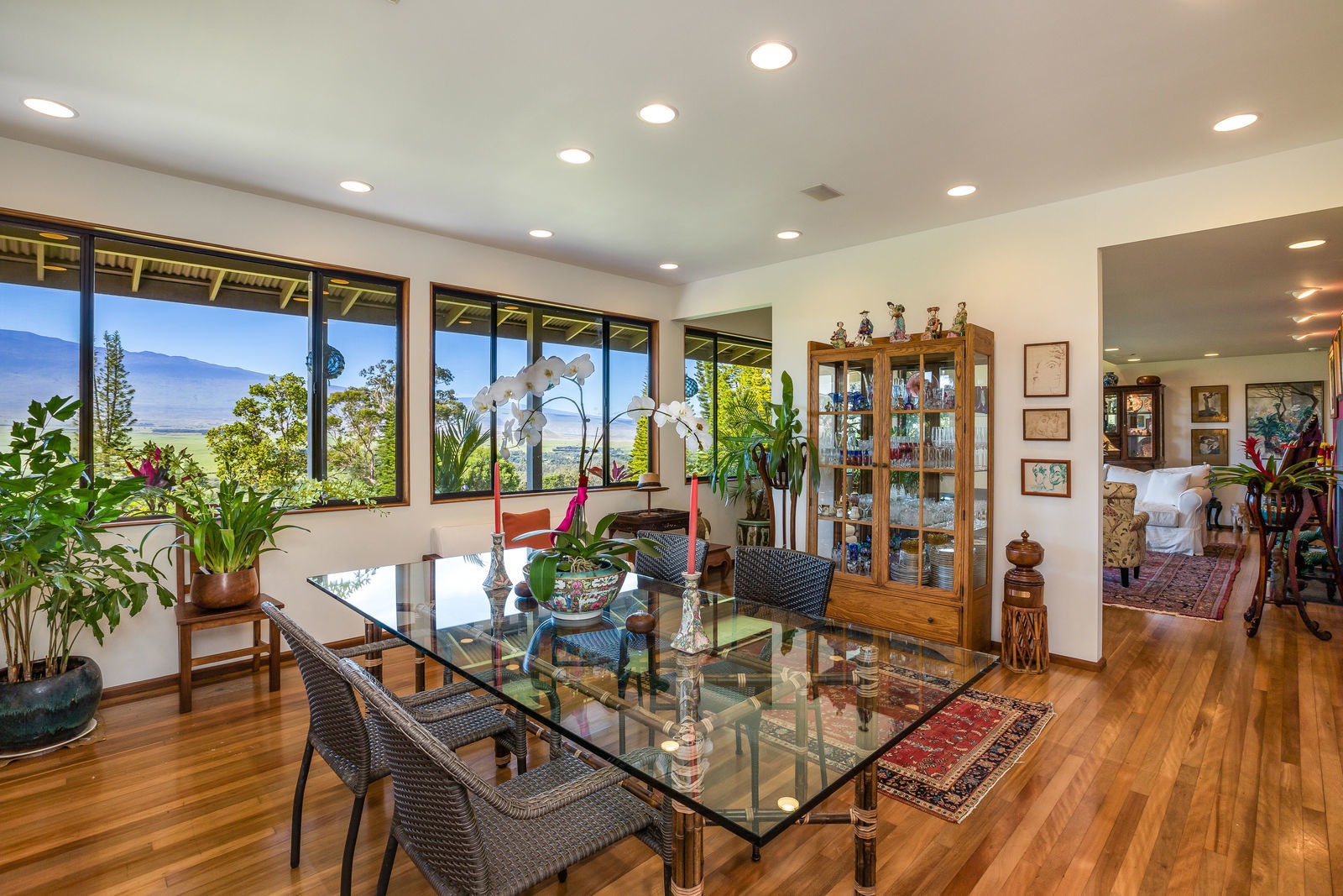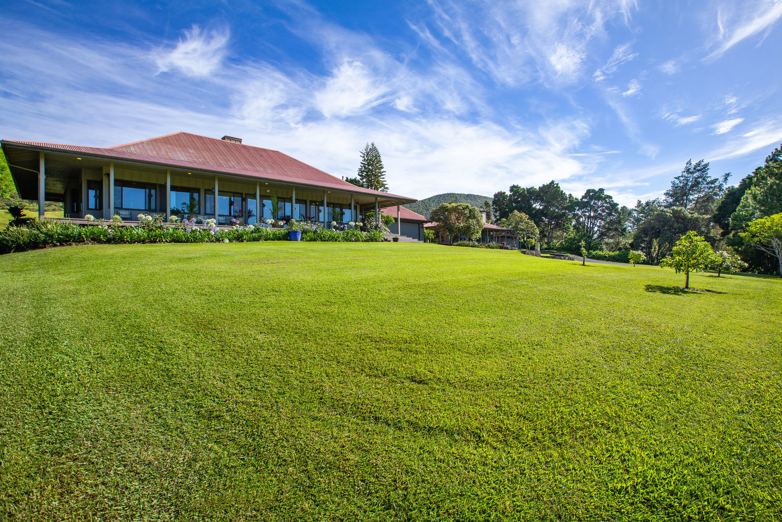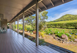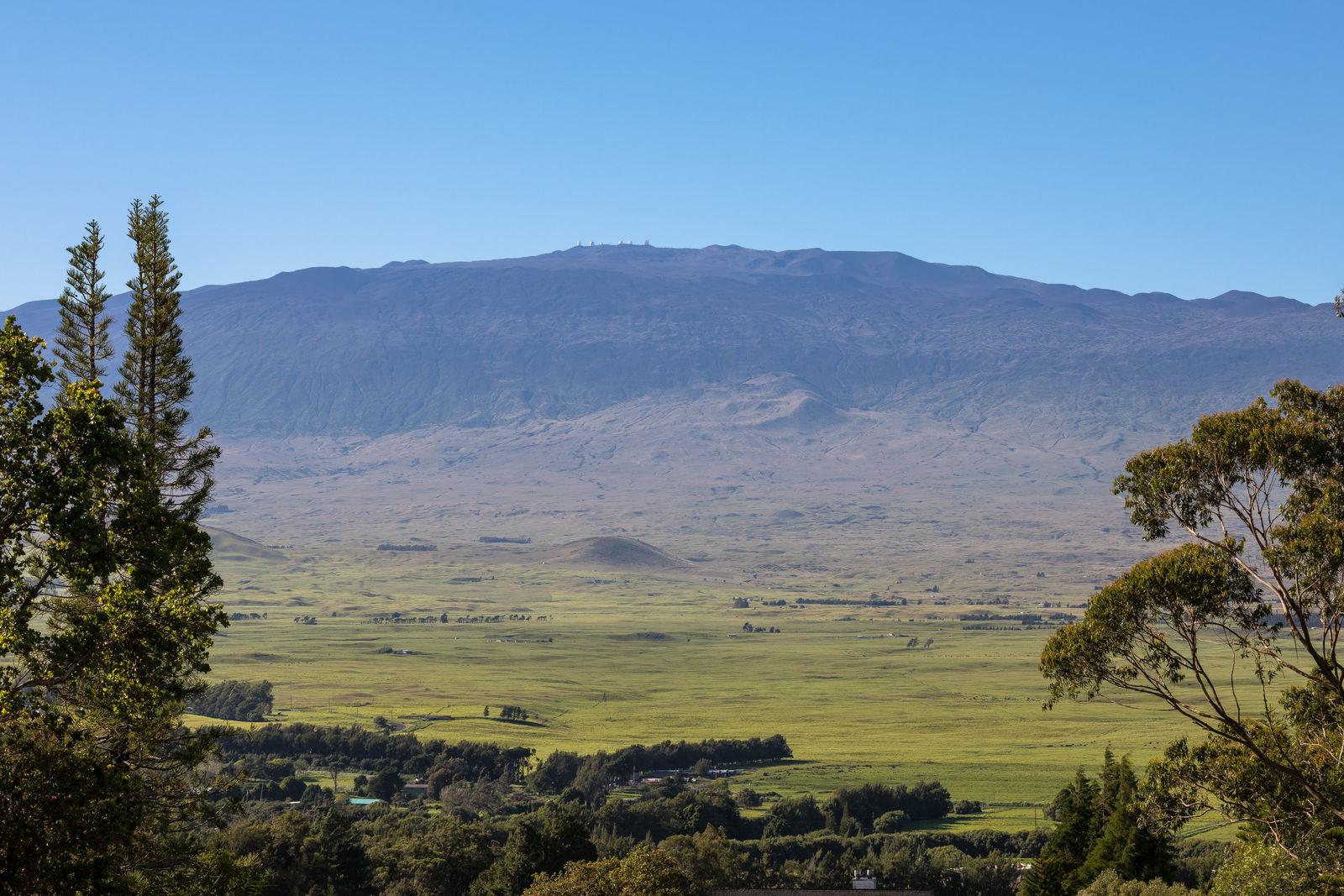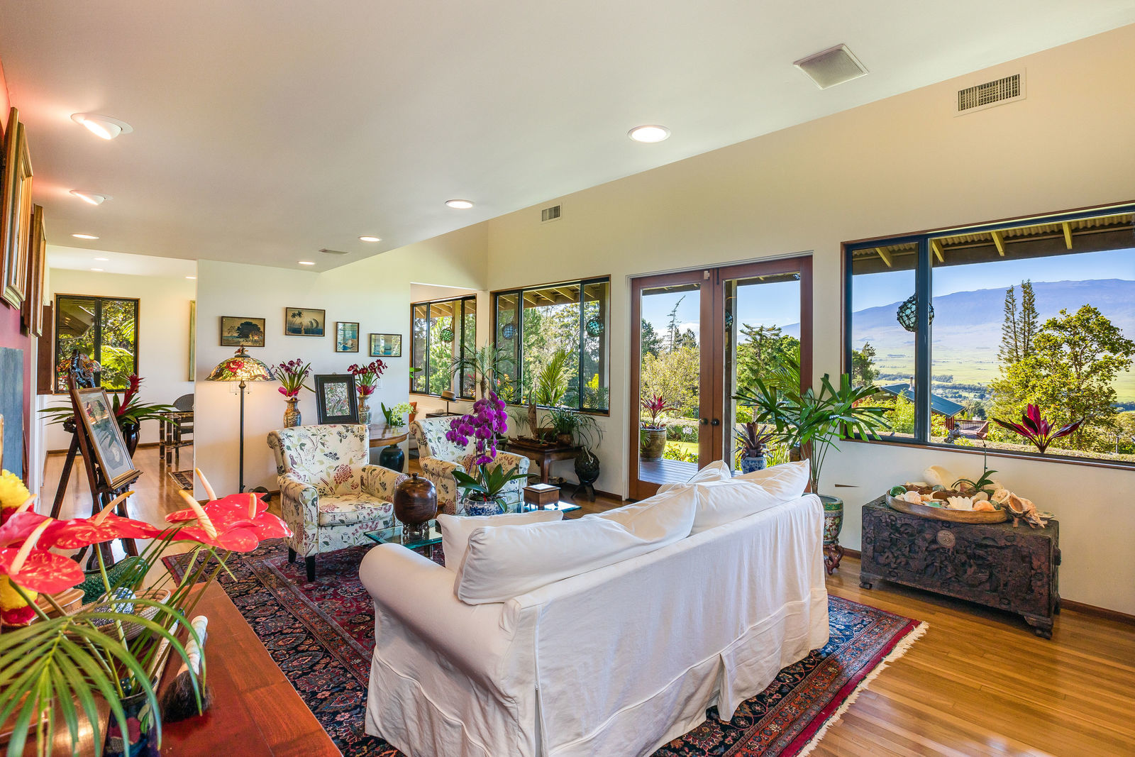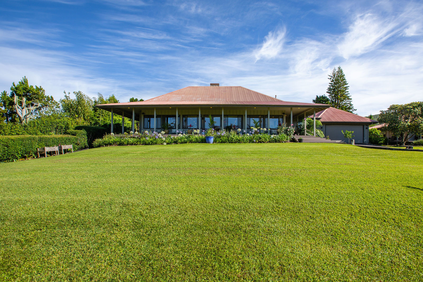 PRIVATE COMPOUND WITH FABULOUS MAUNA KEA VIEWS! Main home plus legal ohana (second home) on 1.2 acres.This property is adjacent to acres and acres of Hawaiian Home Lands pastures and the views from the back of the property are also gorgeous! The main house is 3299 sq. ft. with 3 bdrms., 2 1/2 bths., a den/office which could easily be a 4th bdrm. and two additional framed attic spaces that are 408 sq. ft. each. (Could also be bdrms.) There is also a small sitting room upstairs.The ohana is 864 sq. ft. with 2 bdrms., 1 bth. living room, kitchen and fireplace. This dwelling also has a detached 400 sq. ft. garage.Each home has a covered lanai that surrounds three sides of the house and gives easy access to the beautifully landscaped yard and gardens. Each house also has an enclosed garage with the main garage of 816 sq. ft. being large enough for a workshop if you have an at-home hobby.The floors of the main home are chocolate heart eucalyptus, there is a fireplace between the living room and family room, central heating, a large kitchen for those who love to cook includes an island and also an additional sink in the counter separating the kitchen and dining room. The master bedroom suite is located on the 1st floor. There is also a separate guest 1/2 bath off of the family room.The second house (Ohana) has been used for several years as a rental. The current tenants are on a month to month basis.