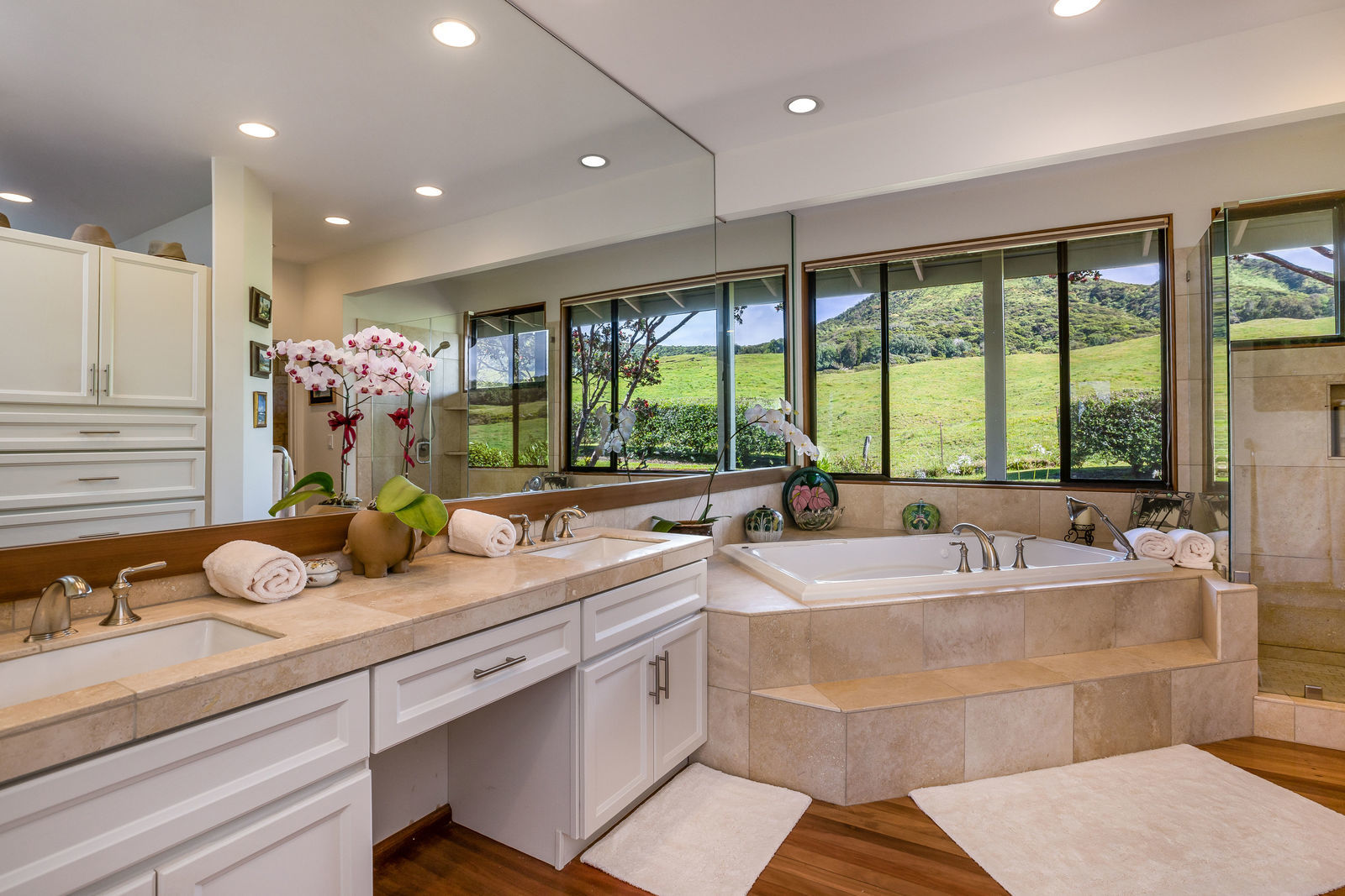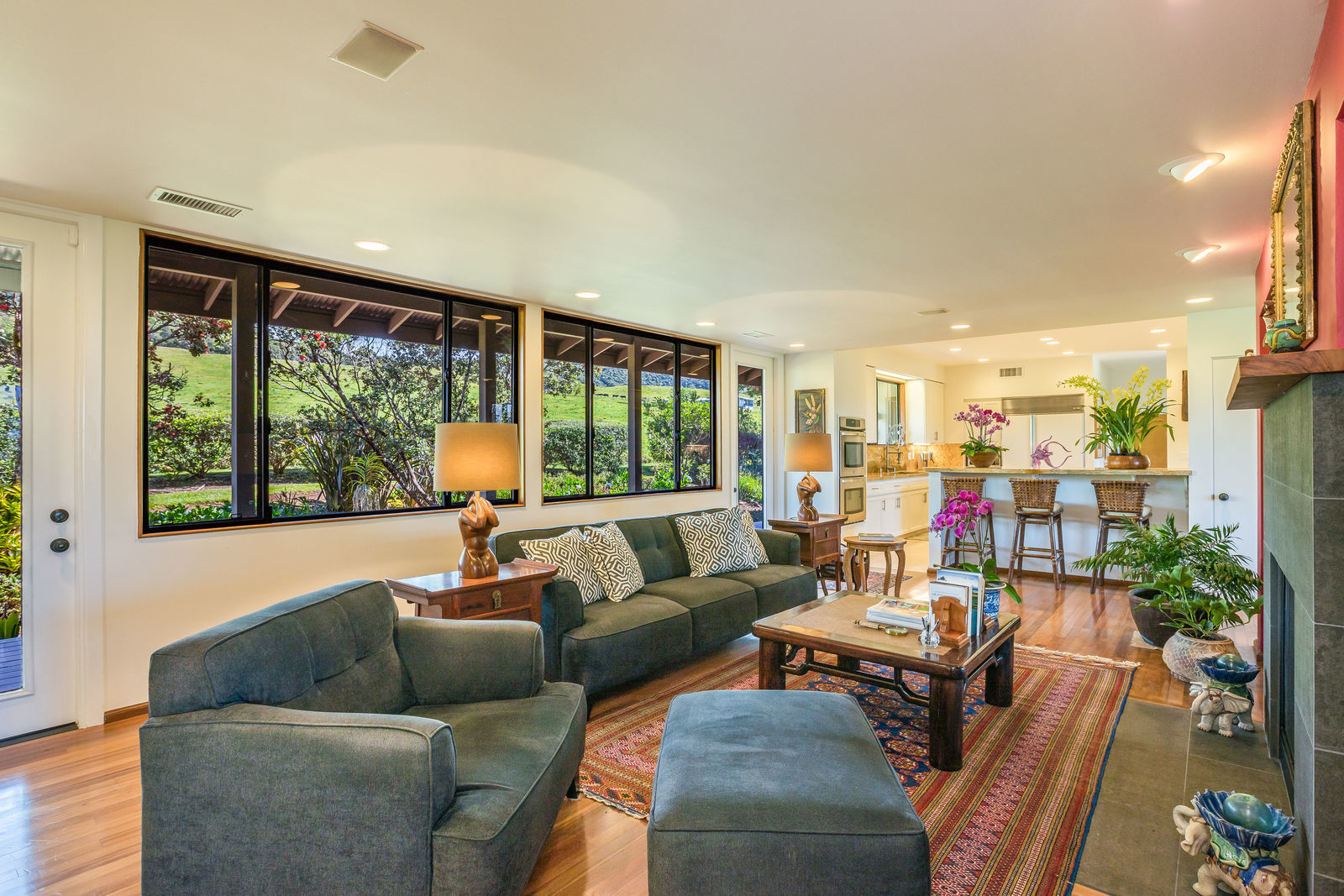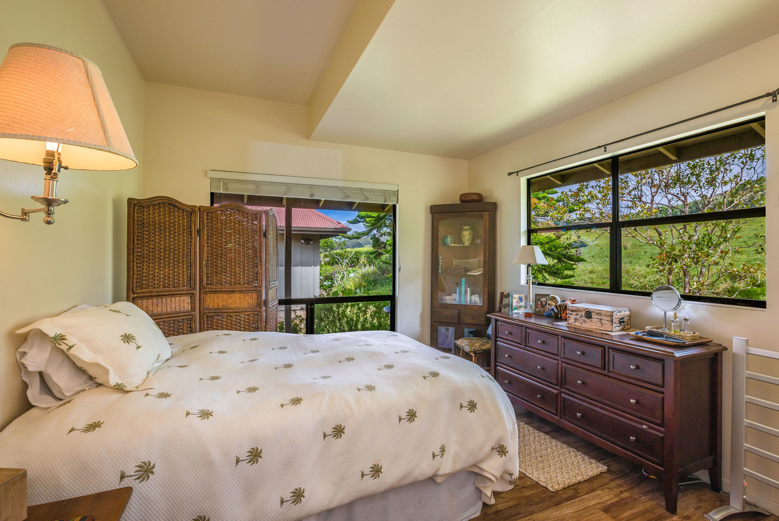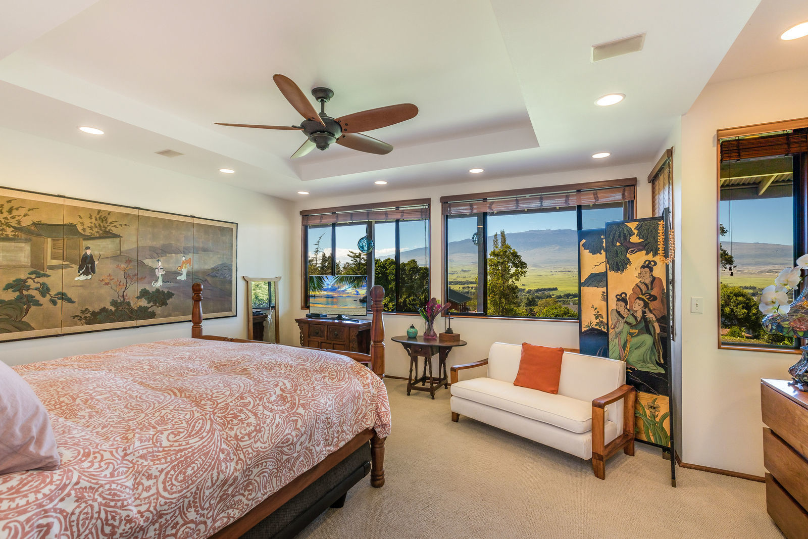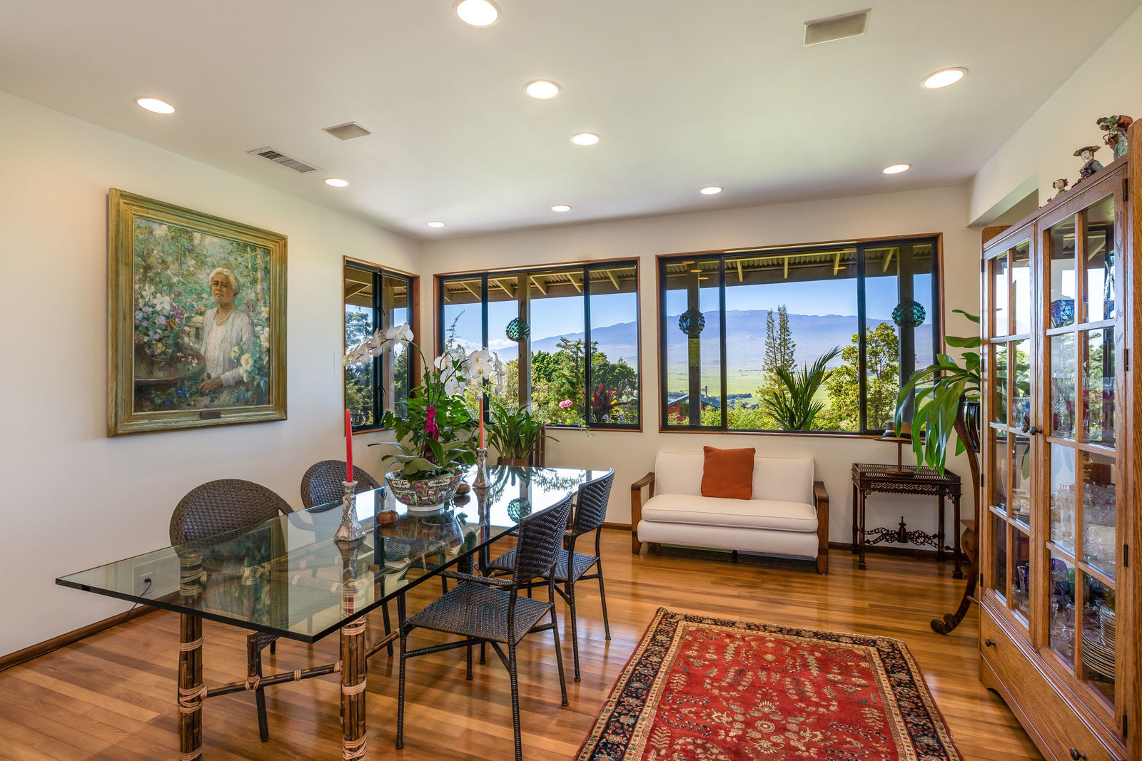 PRIVATE COMPOUND WITH FABULOUS MAUNA KEA VIEWS! Main home plus legal ohana (second home) on 1.2 acres.This property is adjacent to acres and acres of Hawaiian Home Lands pastures and the views from the back of the property are also gorgeous! The main house is 3299 sq. ft. with 3 bdrms., 2 1/2 bths., a den/office which could easily be a 4th bdrm. and two additional framed attic spaces that are 408 sq. ft. each. (Could also be bdrms.) There is also a small sitting room upstairs.The ohana is 864 sq. ft. with 2 bdrms., 1 bth. living room, kitchen and fireplace. This dwelling also has a detached 400 sq. ft. garage.Each home has a covered lanai that surrounds three sides of the house and gives easy access to the beautifully landscaped yard and gardens. Each house also has an enclosed garage with the main garage of 816 sq. ft. being large enough for a workshop if you have an at-home hobby.The floors of the main home are chocolate heart eucalyptus, there is a fireplace between the living room and family room, central heating, a large kitchen for those who love to cook includes an island and also an additional sink in the counter separating the kitchen and dining room. The master bedroom suite is located on the 1st floor. There is also a separate guest 1/2 bath off of the family room.The second house (Ohana) has been used for several years as a rental. The current tenants are on a month to month basis.