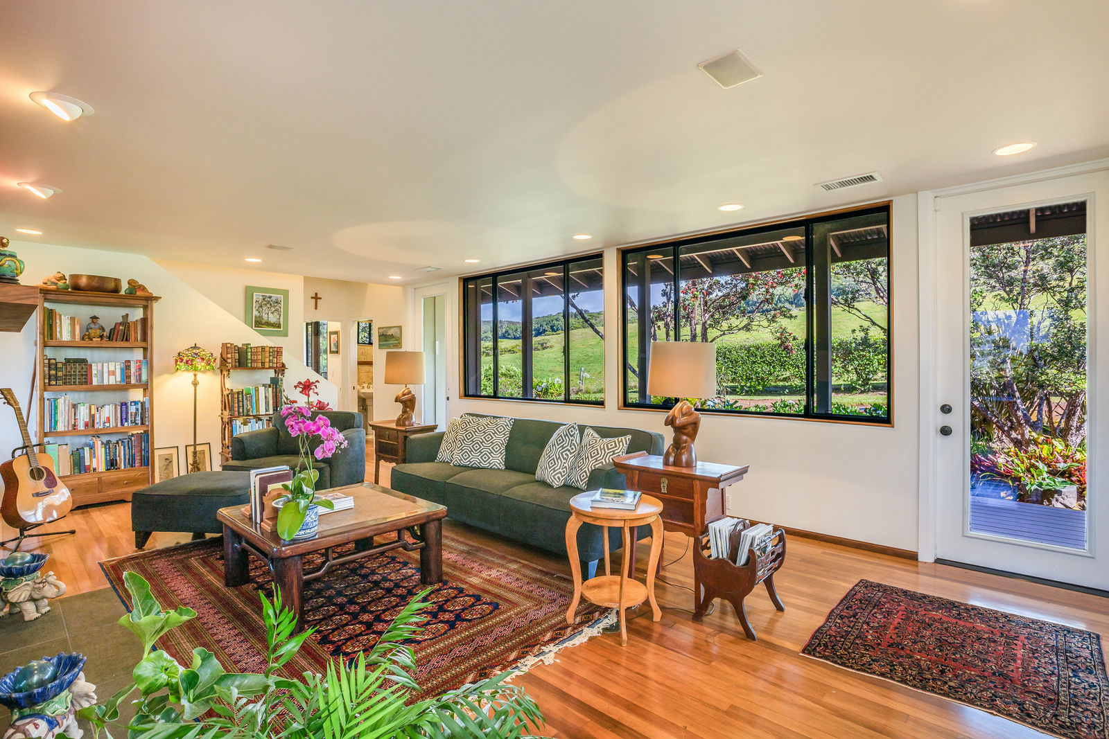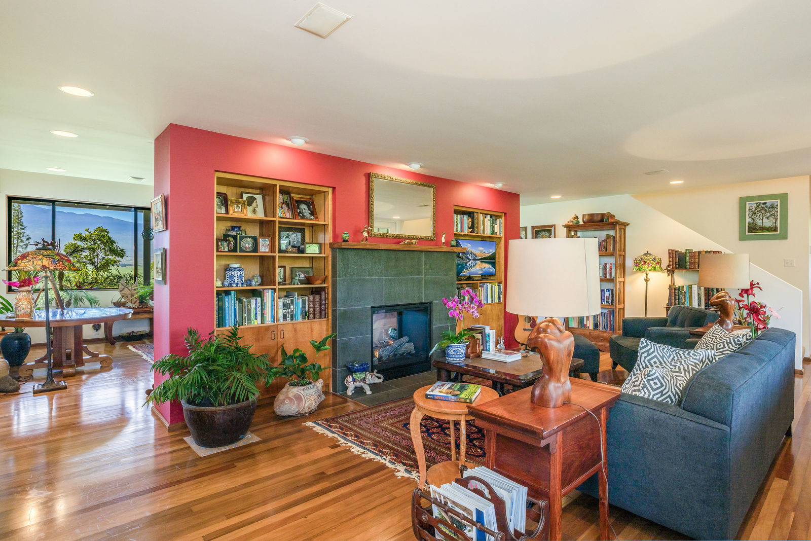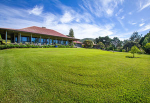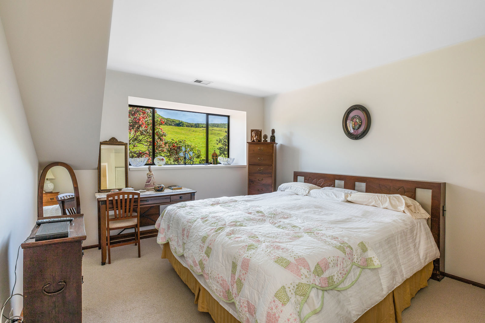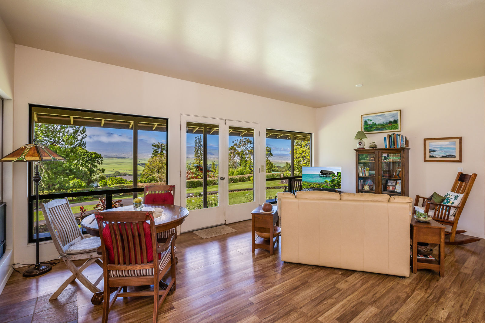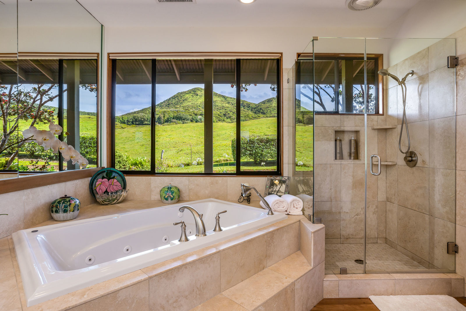 PRIVATE COMPOUND WITH FABULOUS MAUNA KEA VIEWS! Main home plus legal ohana (second home) on 1.2 acres.This property is adjacent to acres and acres of Hawaiian Home Lands pastures and the views from the back of the property are also gorgeous! The main house is 3299 sq. ft. with 3 bdrms., 2 1/2 bths., a den/office which could easily be a 4th bdrm. and two additional framed attic spaces that are 408 sq. ft. each. (Could also be bdrms.) There is also a small sitting room upstairs.The ohana is 864 sq. ft. with 2 bdrms., 1 bth. living room, kitchen and fireplace. This dwelling also has a detached 400 sq. ft. garage.Each home has a covered lanai that surrounds three sides of the house and gives easy access to the beautifully landscaped yard and gardens. Each house also has an enclosed garage with the main garage of 816 sq. ft. being large enough for a workshop if you have an at-home hobby.The floors of the main home are chocolate heart eucalyptus, there is a fireplace between the living room and family room, central heating, a large kitchen for those who love to cook includes an island and also an additional sink in the counter separating the kitchen and dining room. The master bedroom suite is located on the 1st floor. There is also a separate guest 1/2 bath off of the family room.The second house (Ohana) has been used for several years as a rental. The current tenants are on a month to month basis.