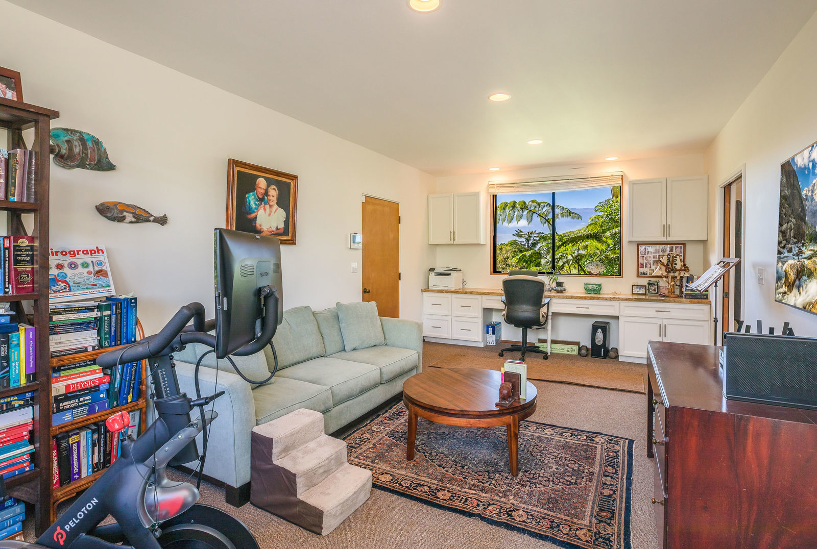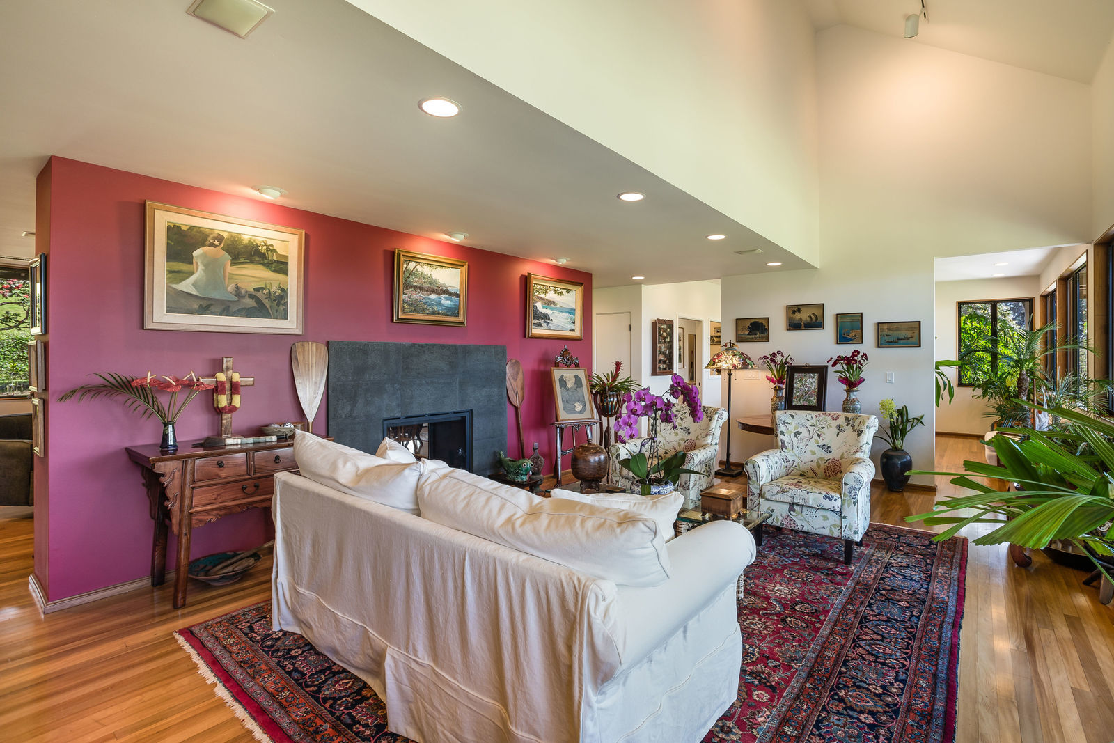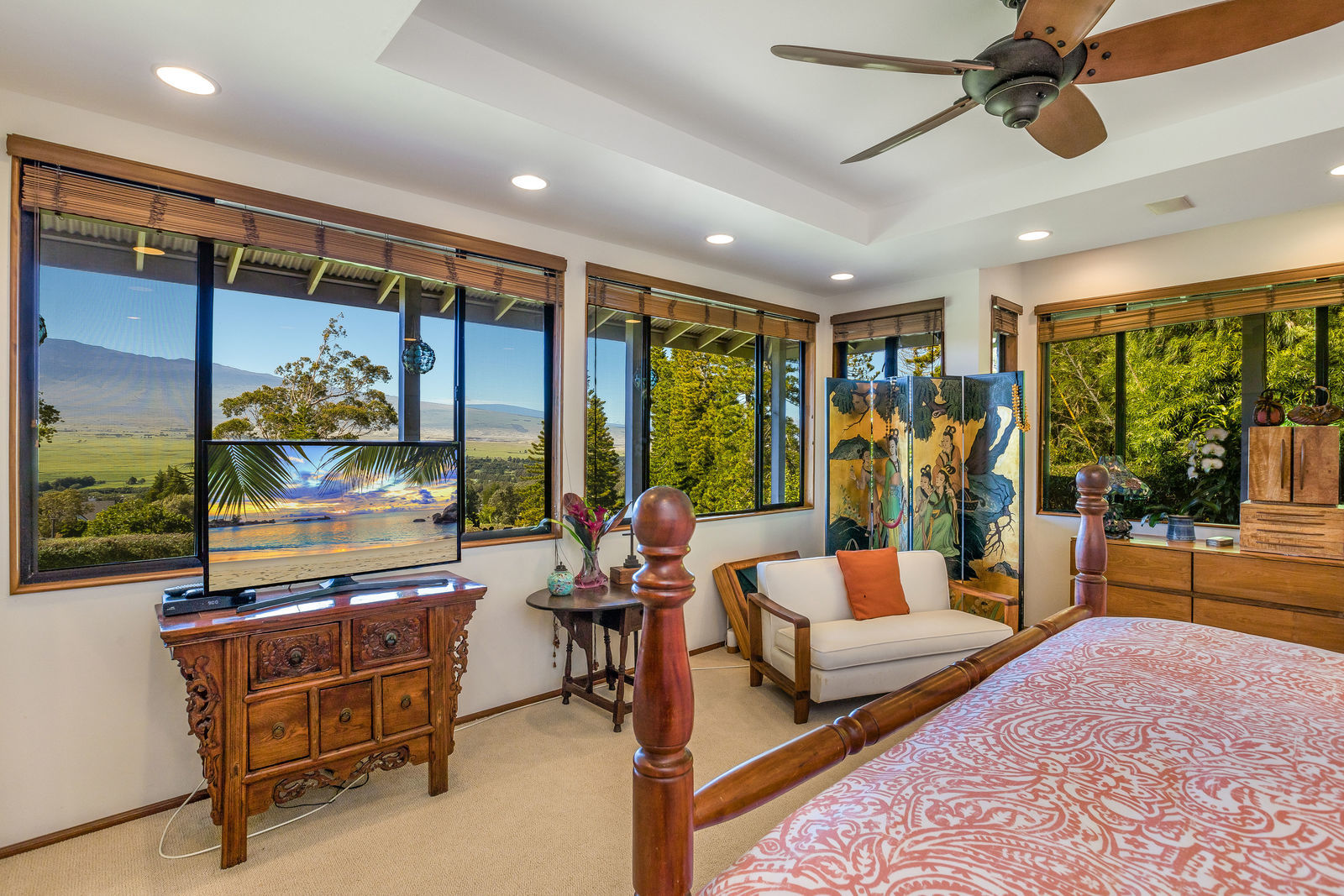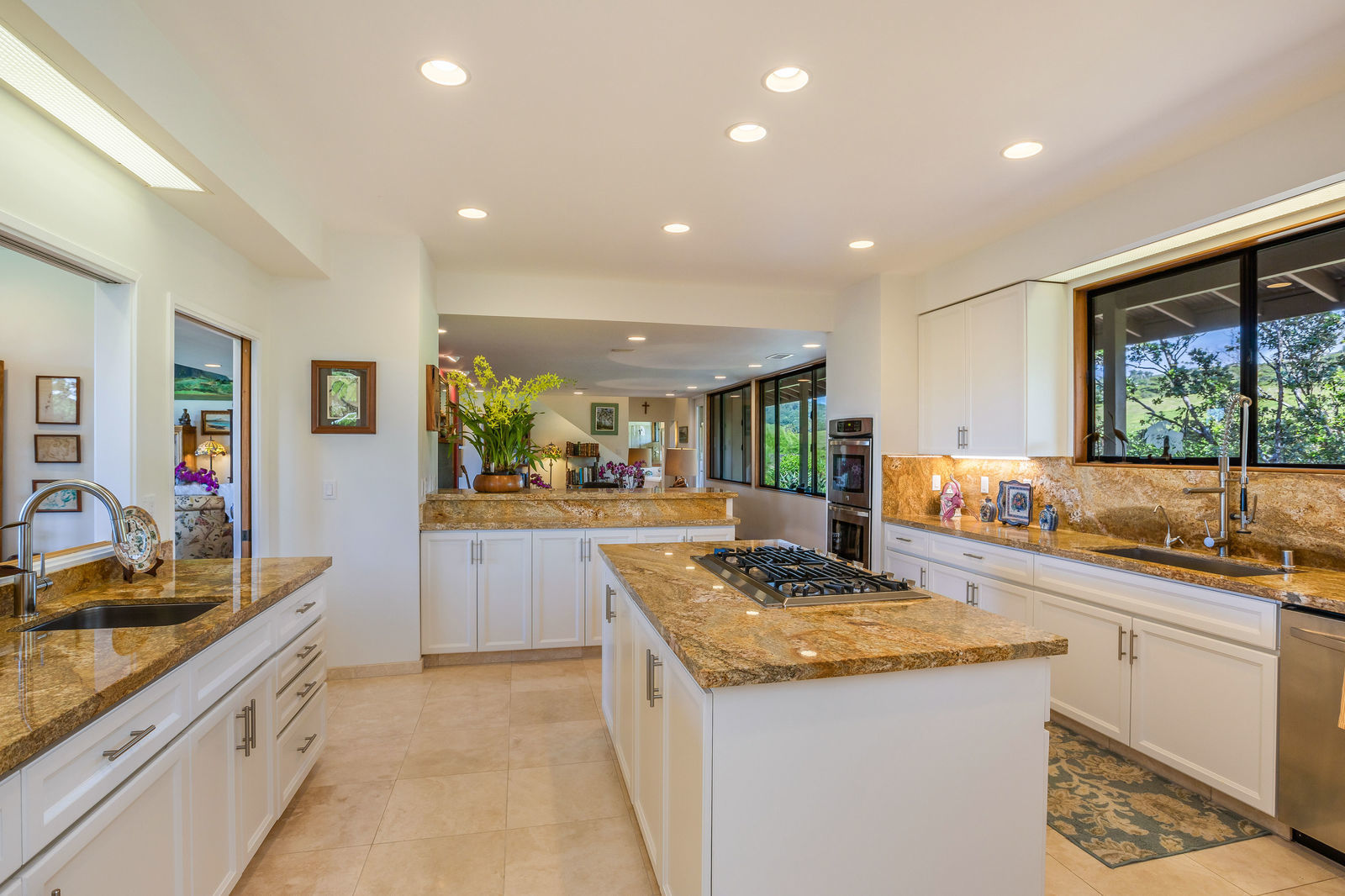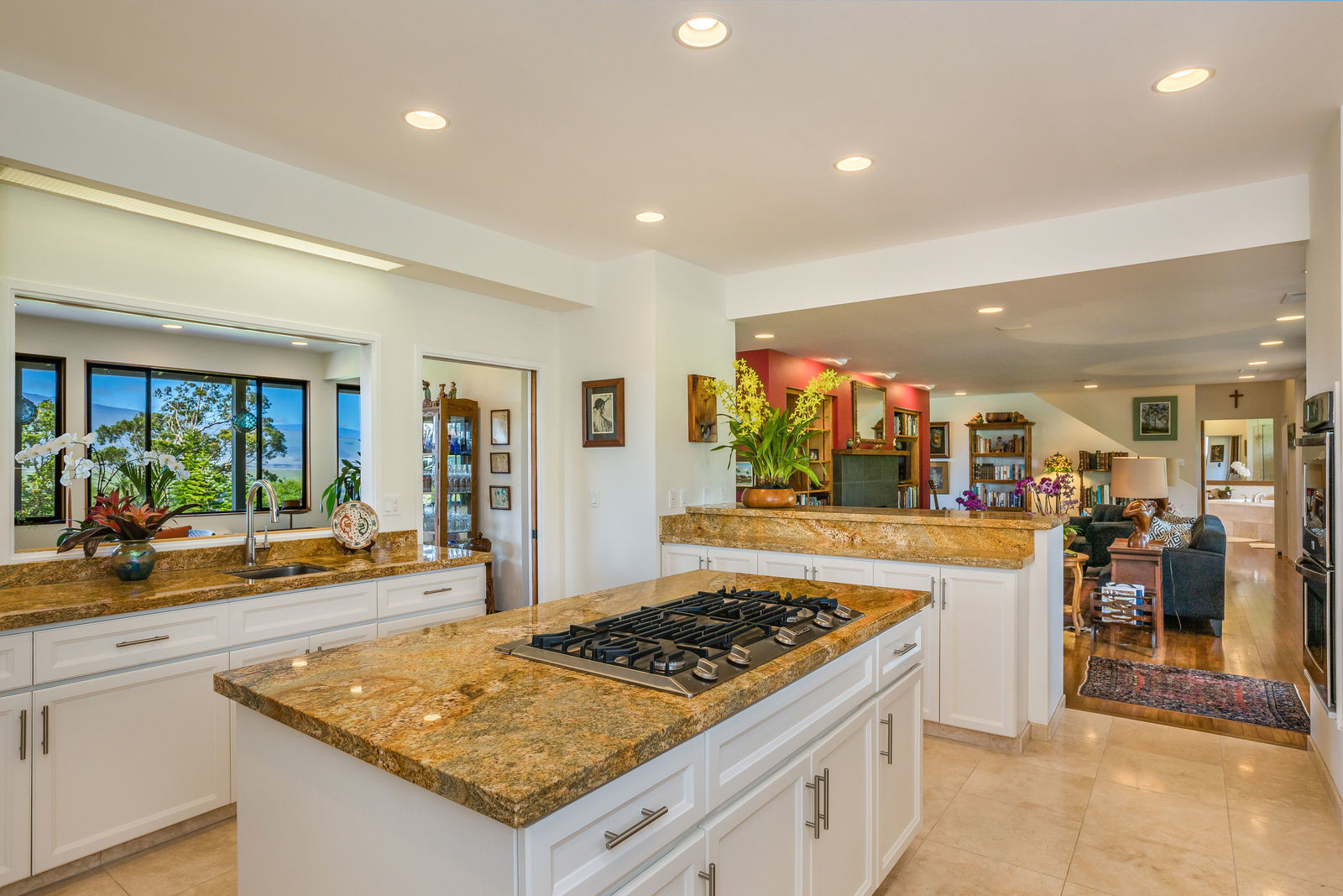 PRIVATE COMPOUND WITH FABULOUS MAUNA KEA VIEWS! Main home plus legal ohana (second home) on 1.2 acres.This property is adjacent to acres and acres of Hawaiian Home Lands pastures and the views from the back of the property are also gorgeous! The main house is 3299 sq. ft. with 3 bdrms., 2 1/2 bths., a den/office which could easily be a 4th bdrm. and two additional framed attic spaces that are 408 sq. ft. each. (Could also be bdrms.) There is also a small sitting room upstairs.The ohana is 864 sq. ft. with 2 bdrms., 1 bth. living room, kitchen and fireplace. This dwelling also has a detached 400 sq. ft. garage.Each home has a covered lanai that surrounds three sides of the house and gives easy access to the beautifully landscaped yard and gardens. Each house also has an enclosed garage with the main garage of 816 sq. ft. being large enough for a workshop if you have an at-home hobby.The floors of the main home are chocolate heart eucalyptus, there is a fireplace between the living room and family room, central heating, a large kitchen for those who love to cook includes an island and also an additional sink in the counter separating the kitchen and dining room. The master bedroom suite is located on the 1st floor. There is also a separate guest 1/2 bath off of the family room.The second house (Ohana) has been used for several years as a rental. The current tenants are on a month to month basis.